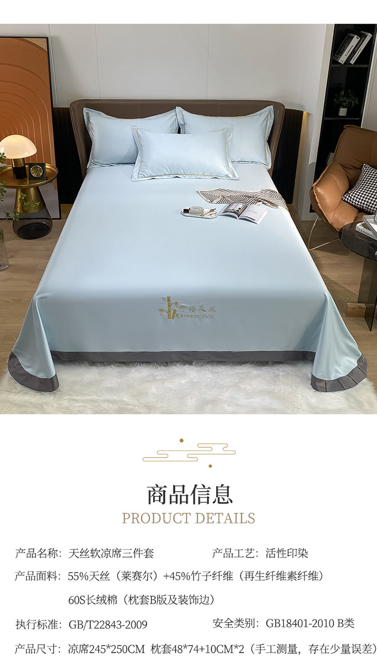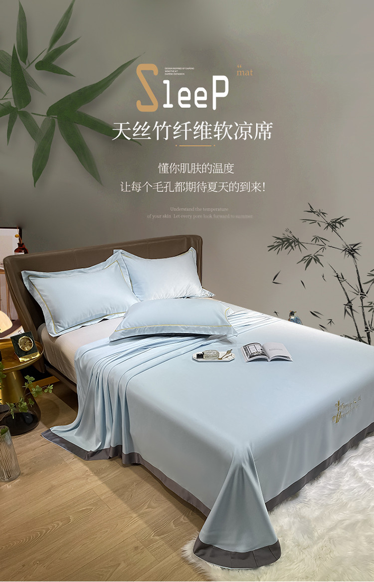 眠帛家居 2021新款刺绣竹语天丝凉席三件套 刺绣兰