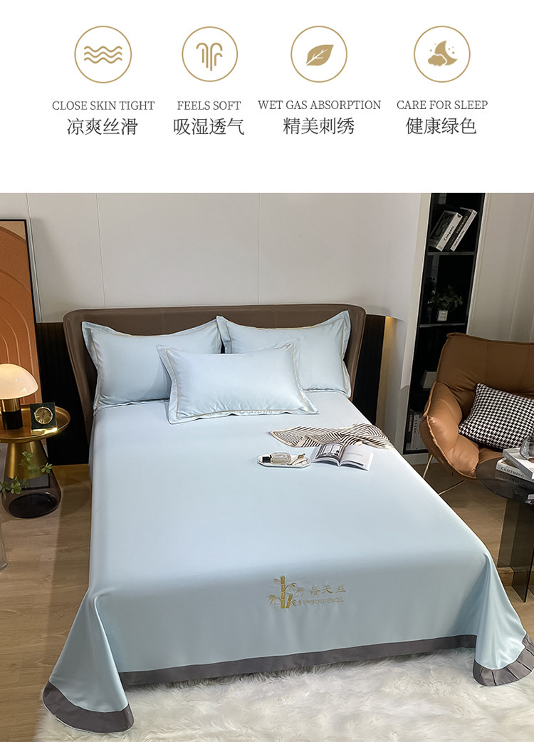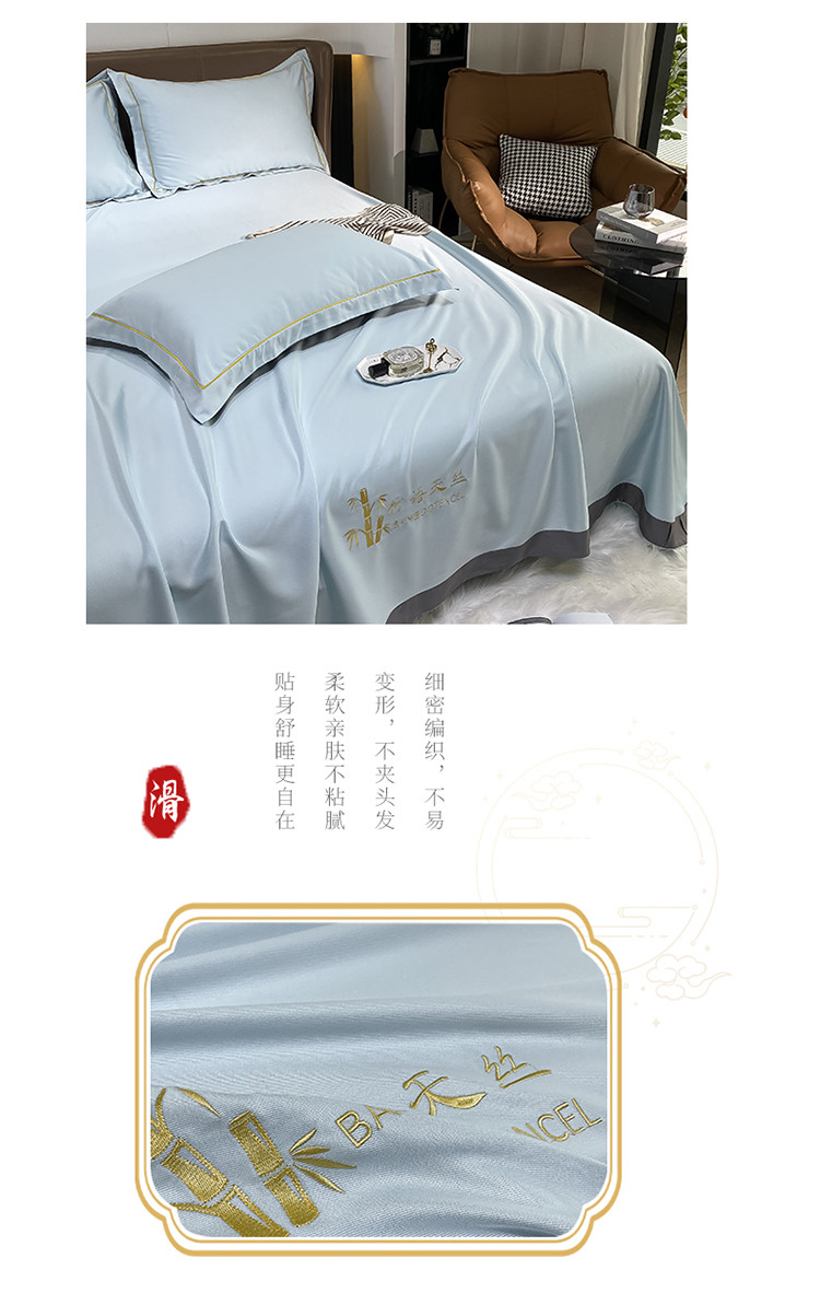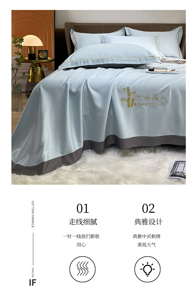总眠帛家居2022新品60支兰精天丝气质轻奢绣花四件套-盛夏,盛夏-粉,盛夏-蓝,盛夏-绿