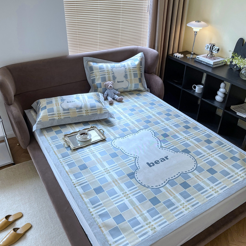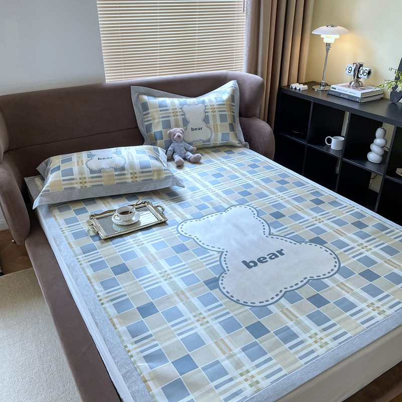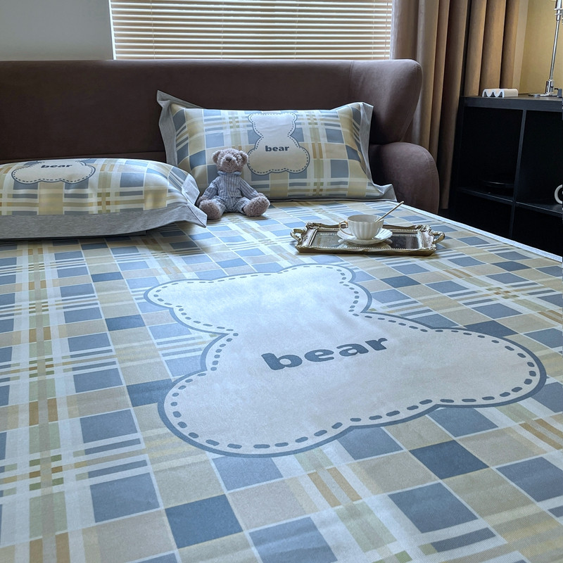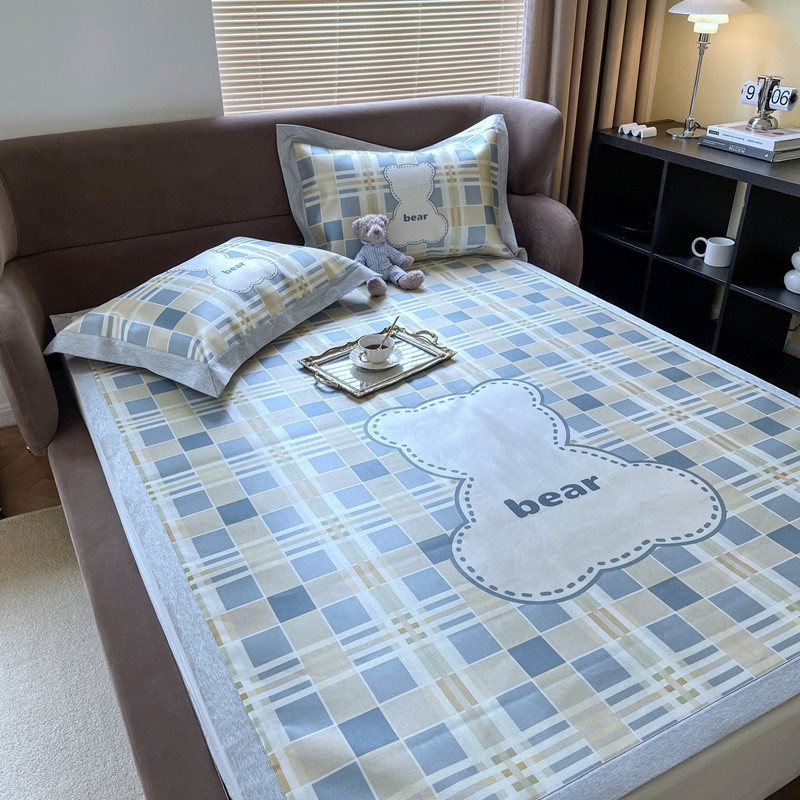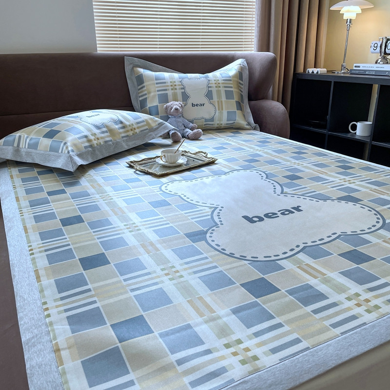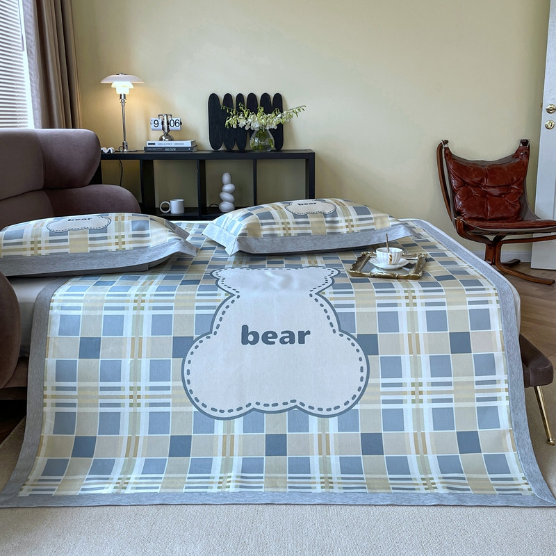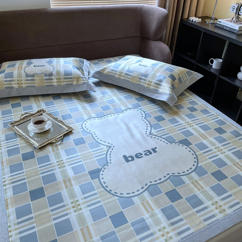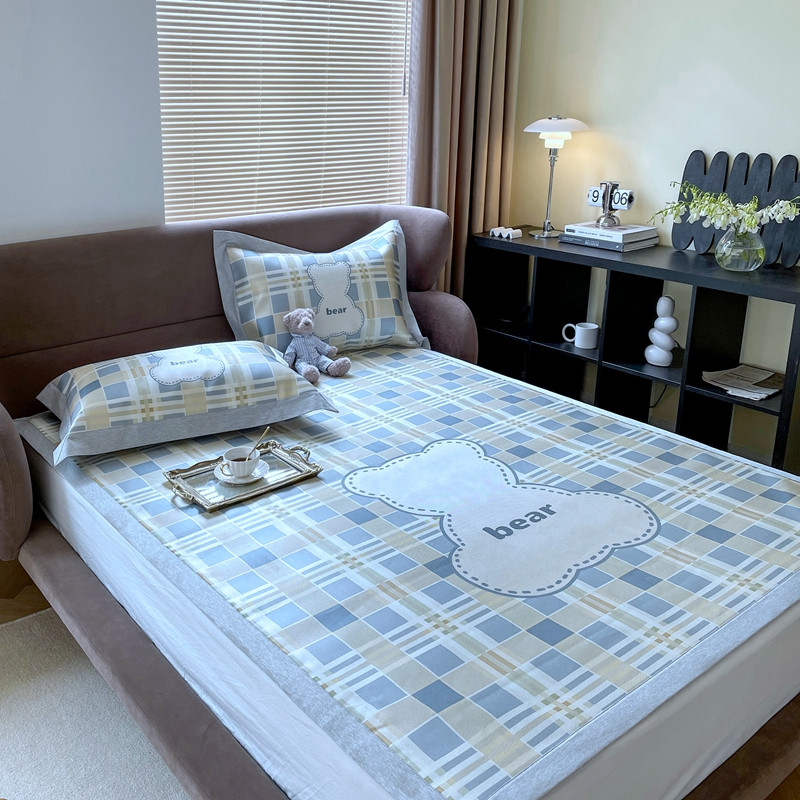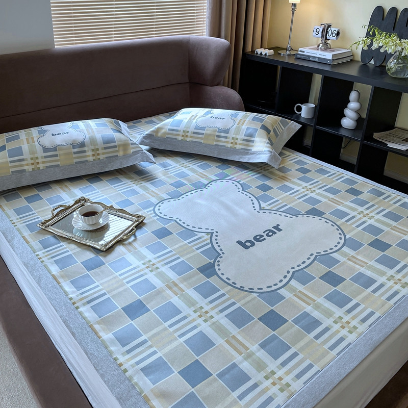 时年 2021新款水洗冰露丝养生凉席数码印花轻奢风格二格子熊2