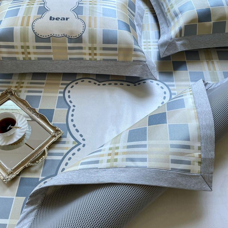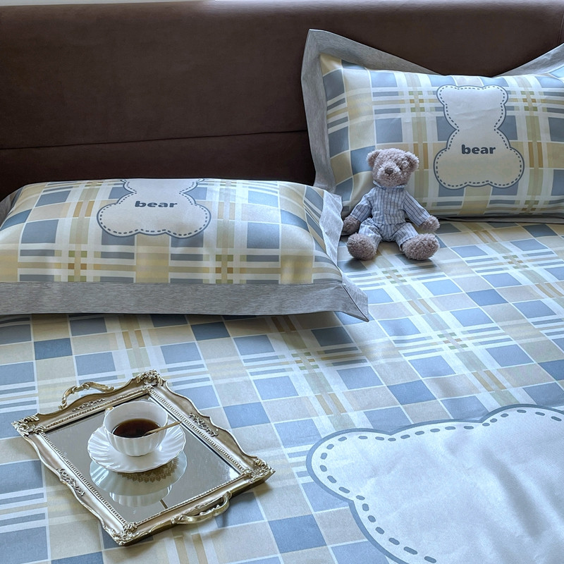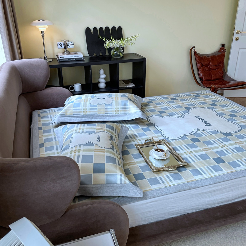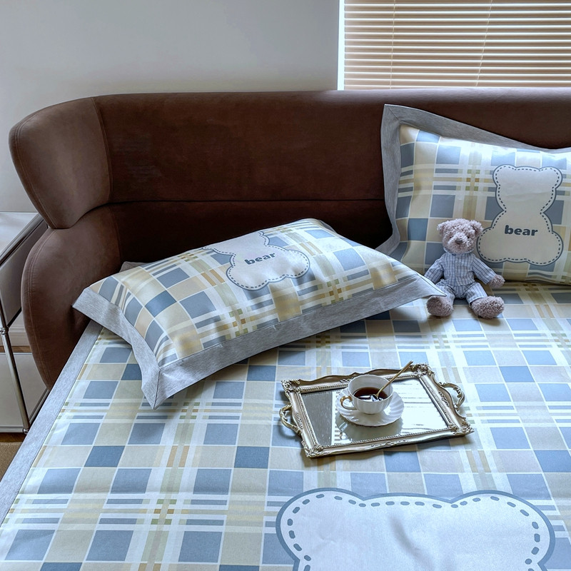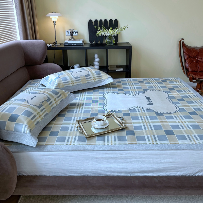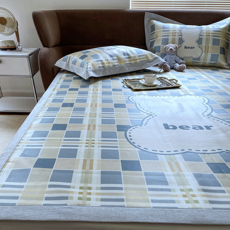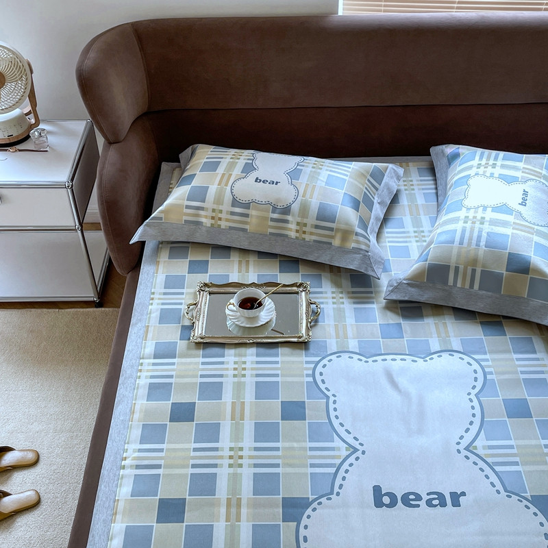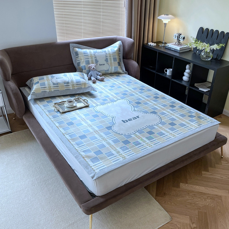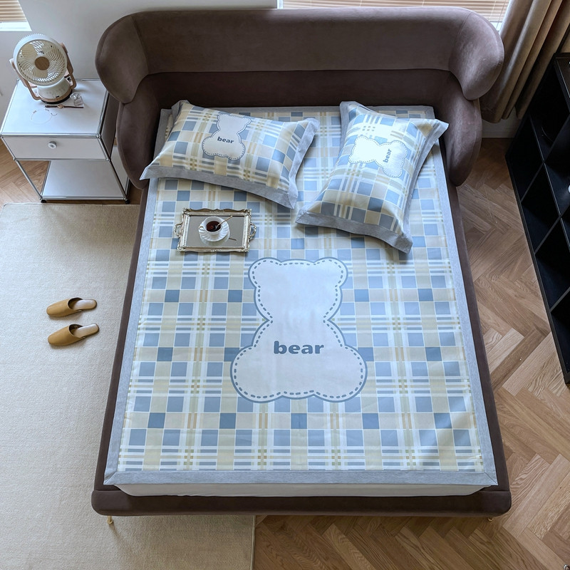 时年 2021新款水洗冰露丝养生凉席数码印花轻奢风格二格子熊2