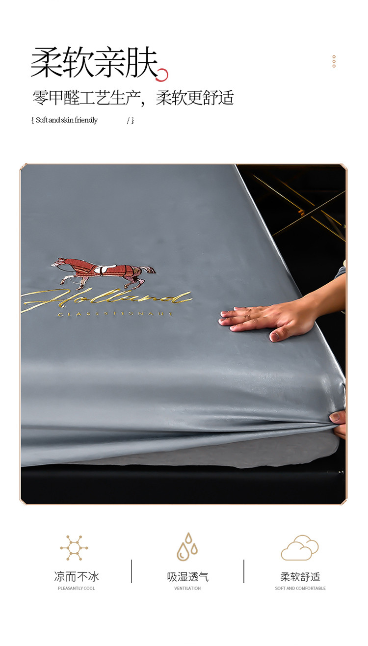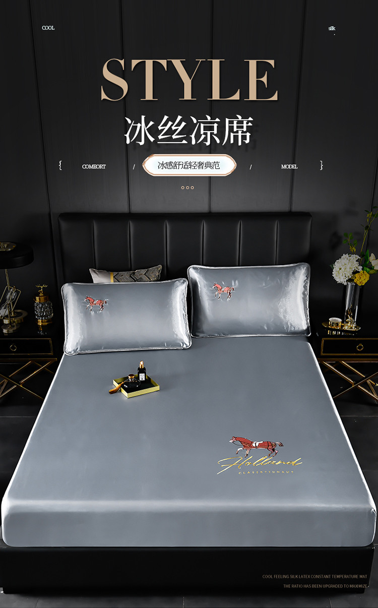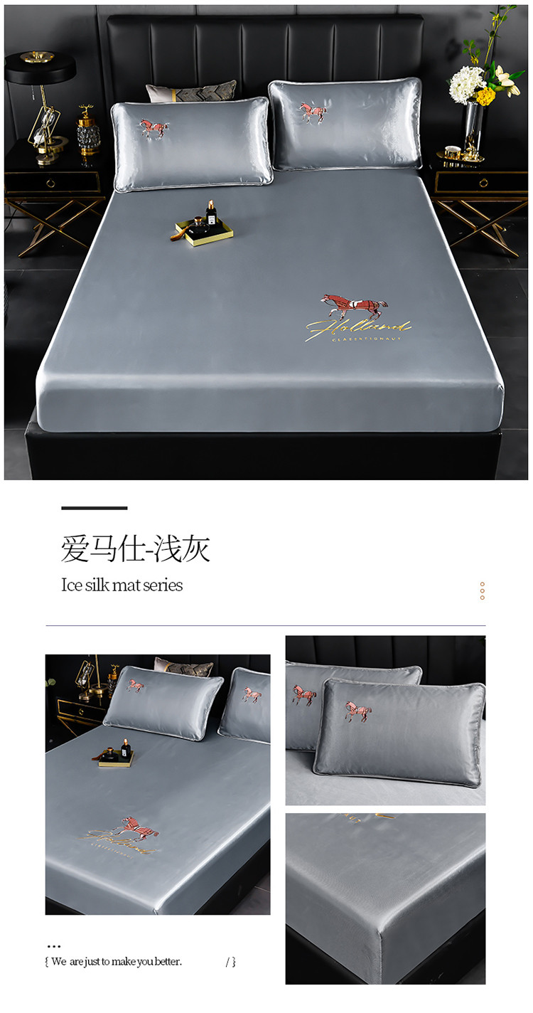 芃成家纺 2021新款冰丝凉席刺绣床笠款 爱马仕浅灰