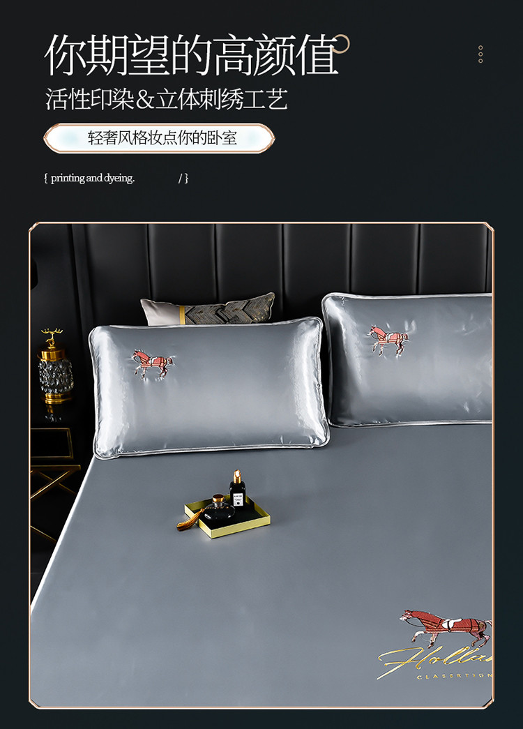 商品名称:芃成家纺 2021新款冰丝凉席刺绣床笠款 爱马仕浅灰