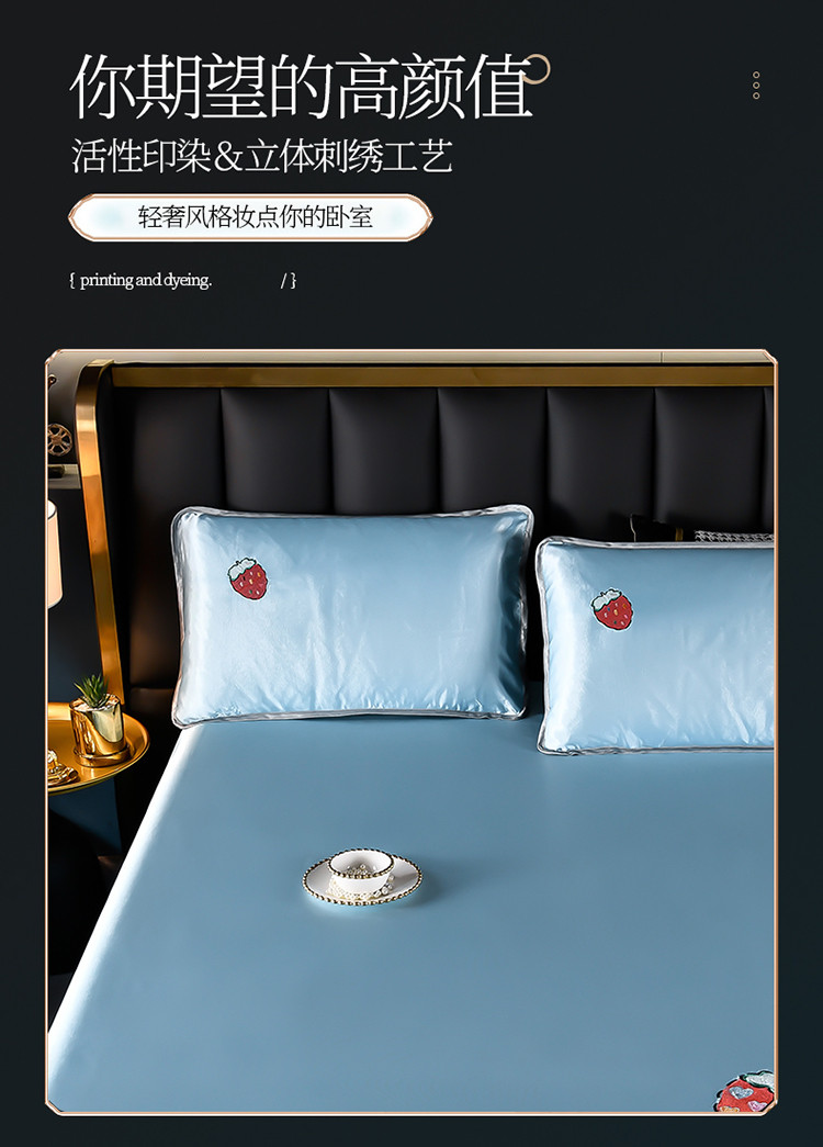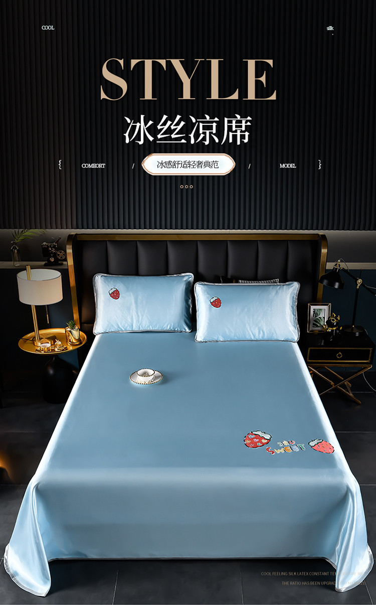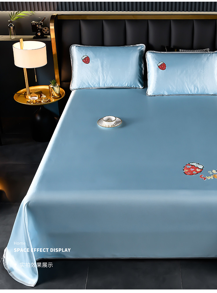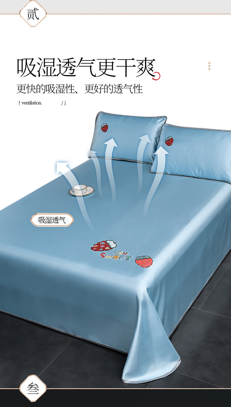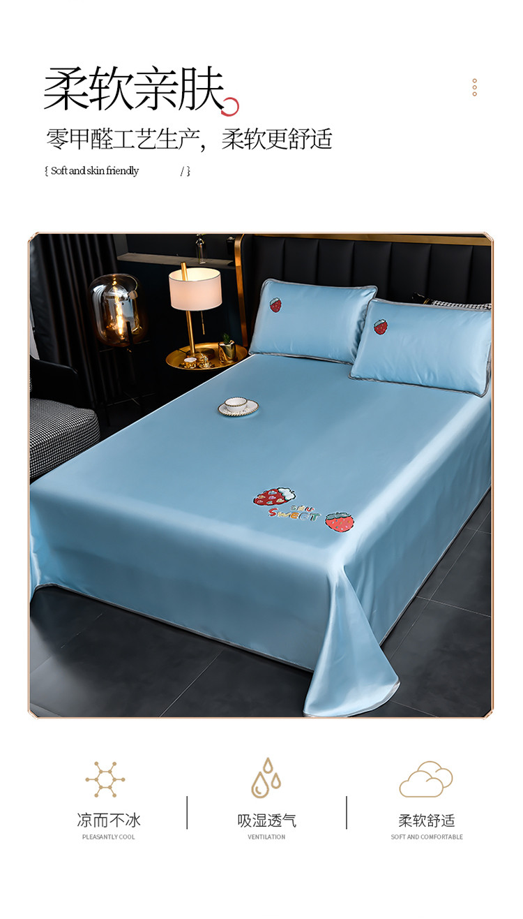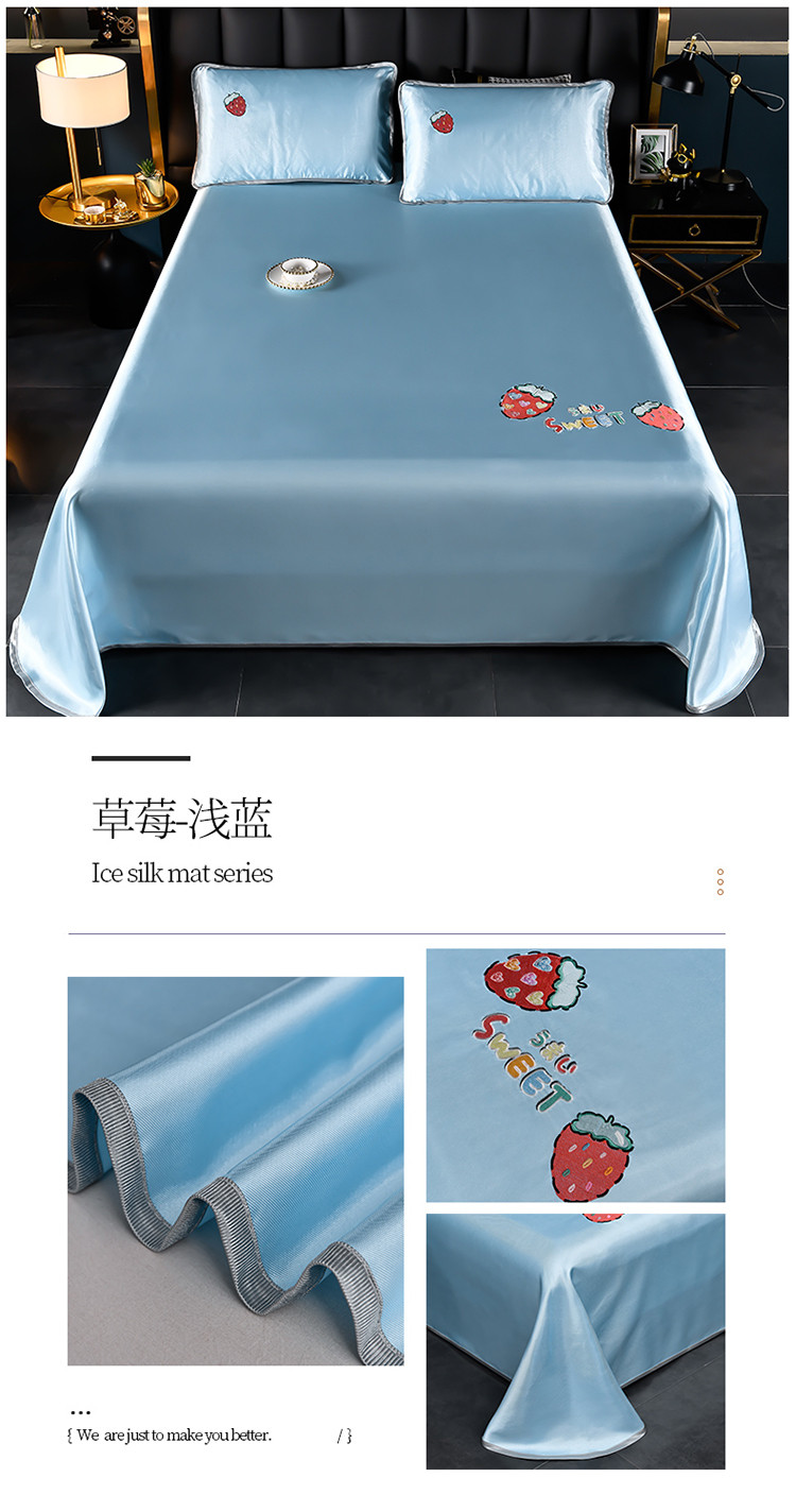 芃成家纺 2021新款冰丝凉席刺绣床单款 草莓浅蓝