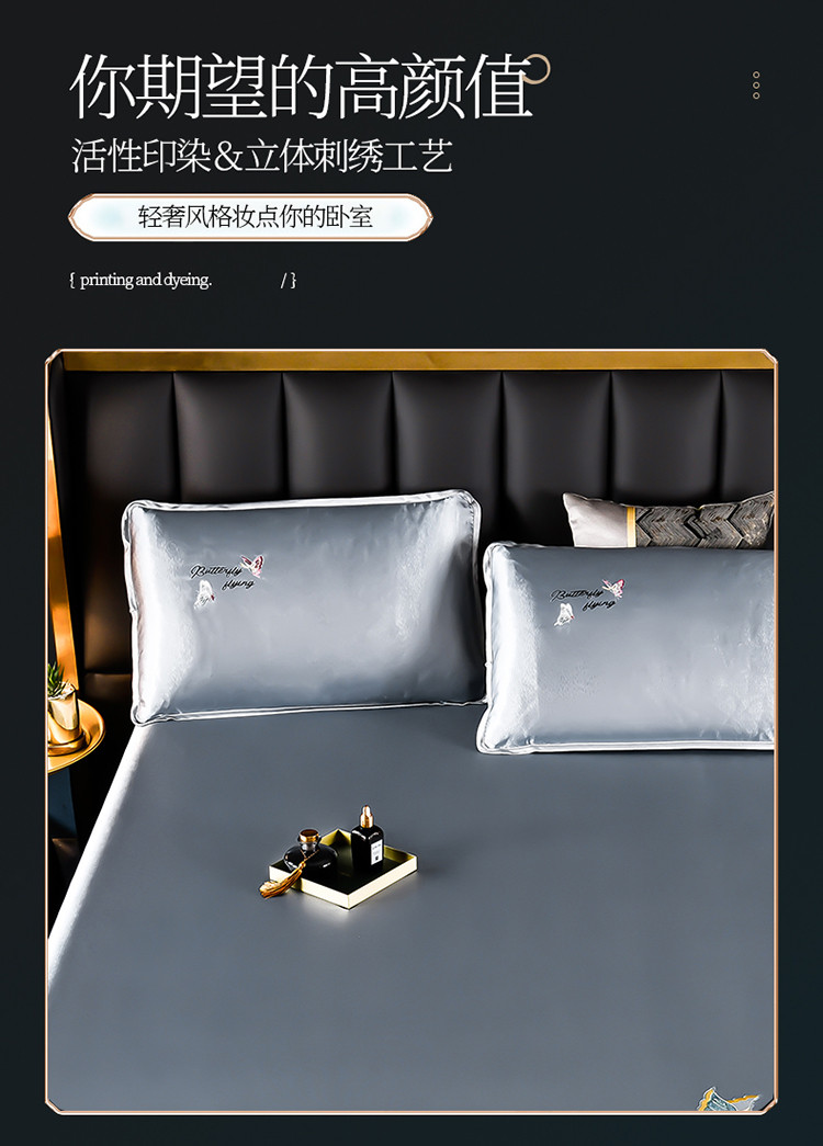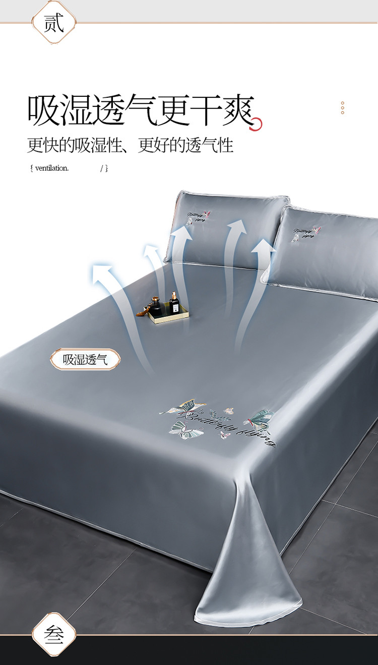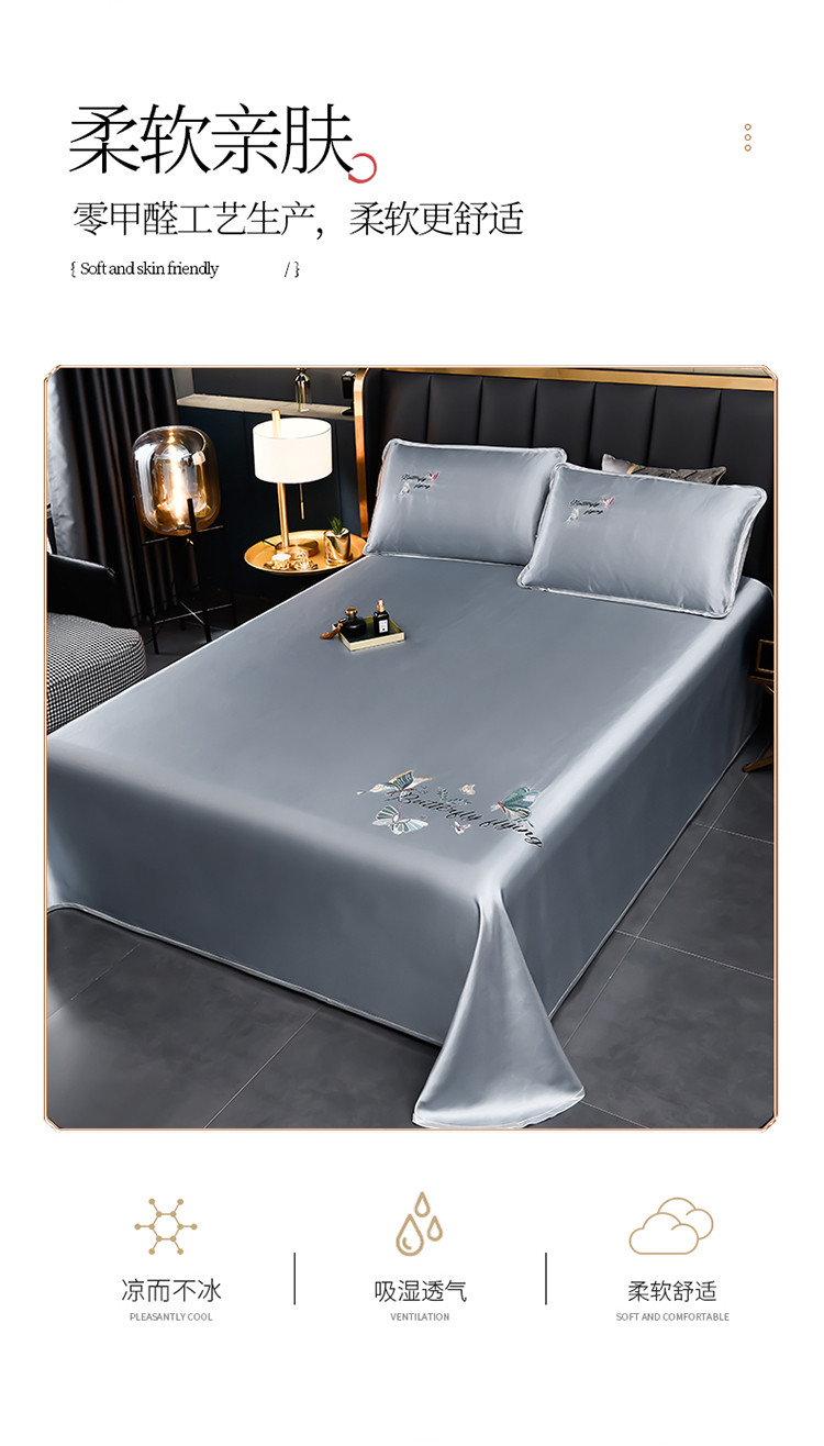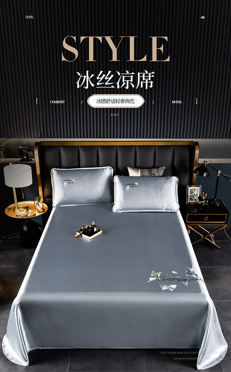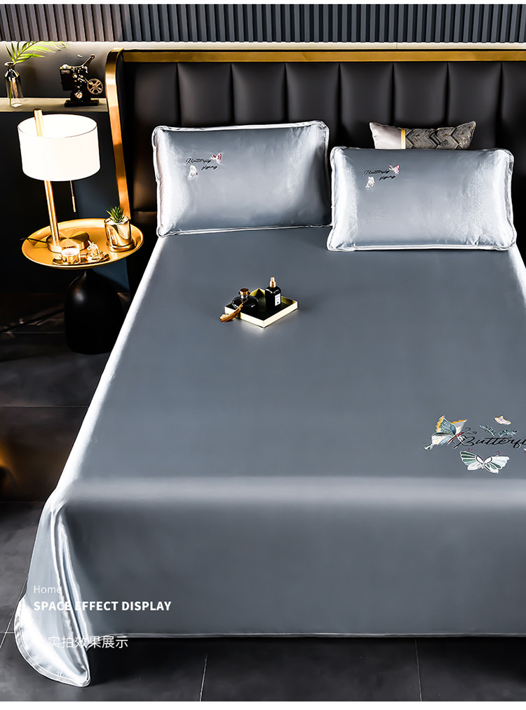 芃成家纺 2021新款冰丝凉席刺绣床单款 蝴蝶浅灰