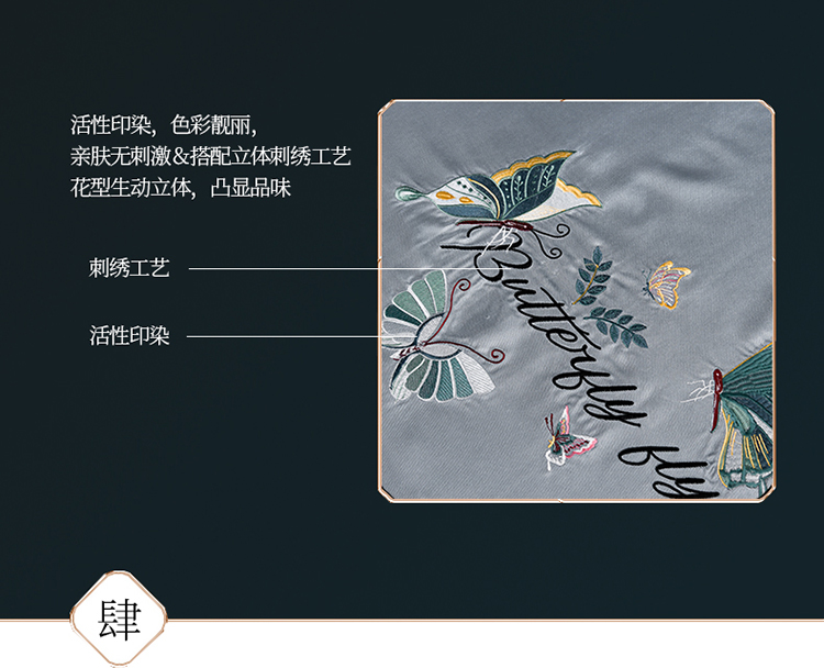 商品名称:芃成家纺 2021新款冰丝凉席刺绣床单款 蝴蝶浅灰