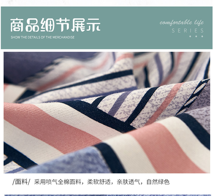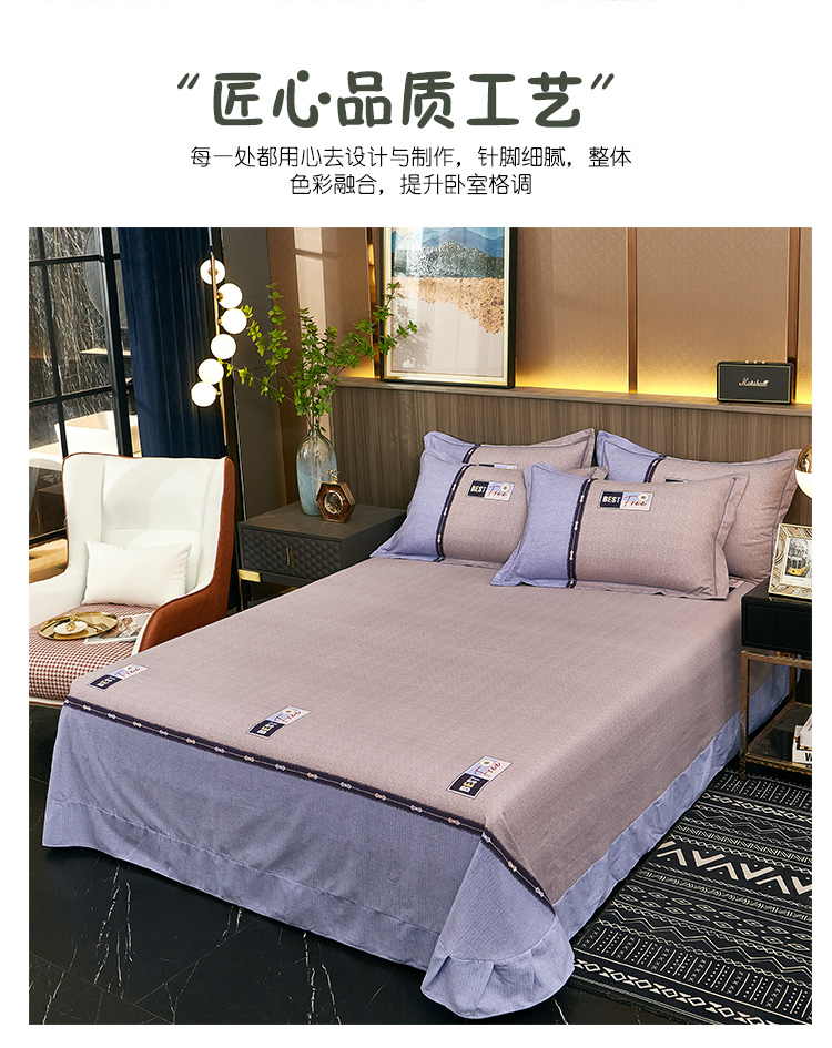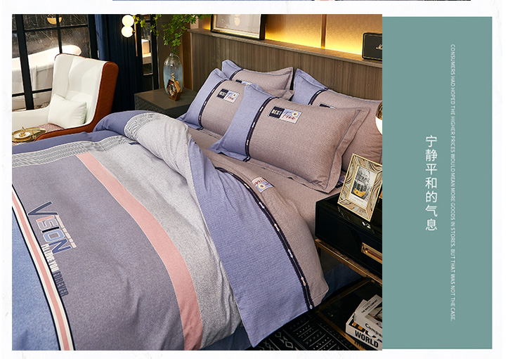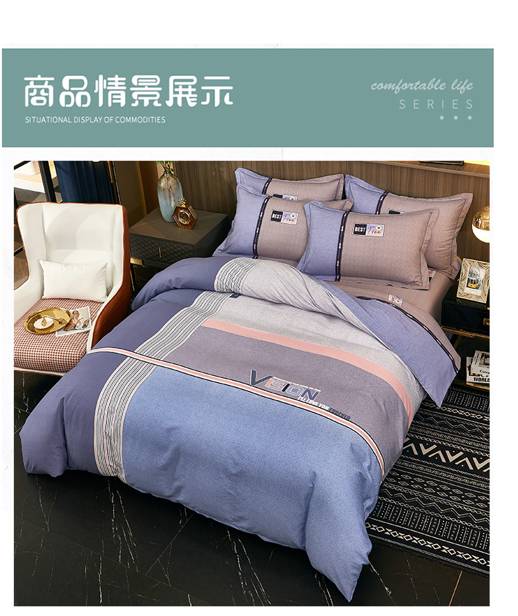 商品名称:雲归梦2021全棉大版生态磨毛四件套格条花型第1批 摩卡时代