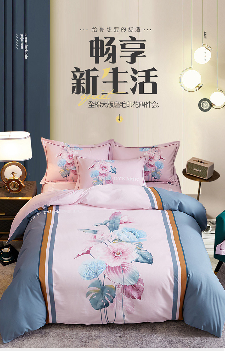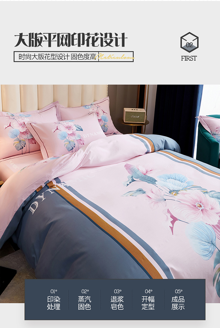 商品名称:雲归梦2021全棉大版生态磨毛四件套花卉花型第1批 晨风漫语