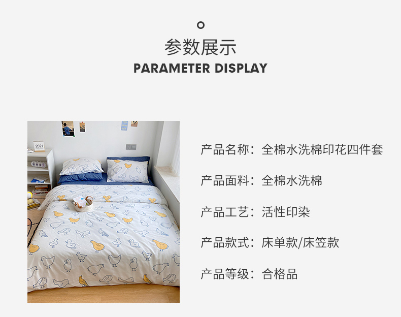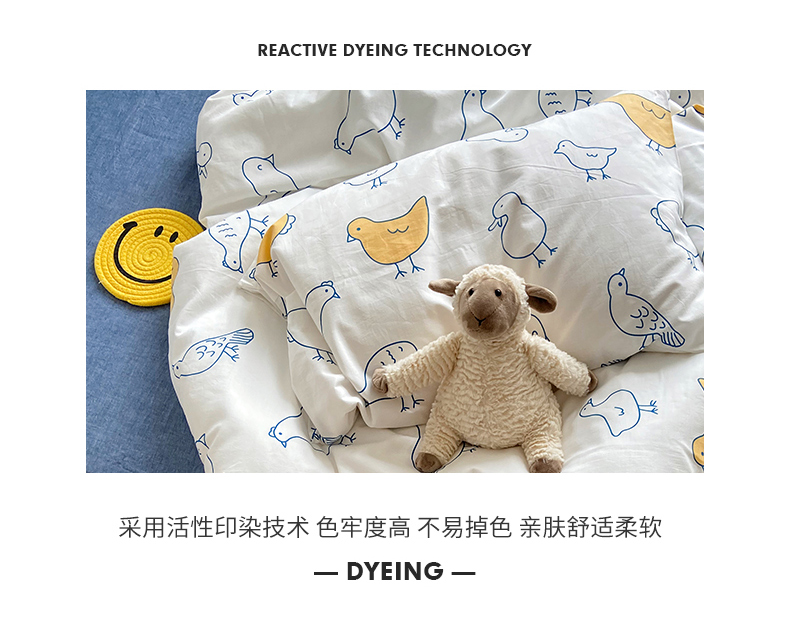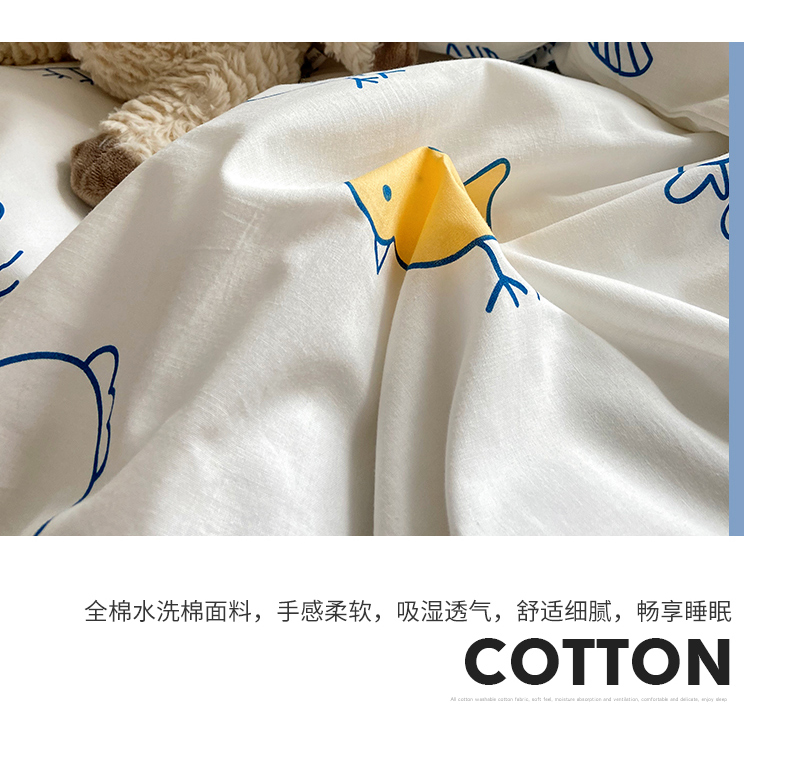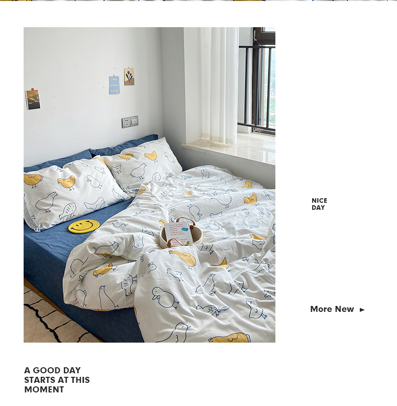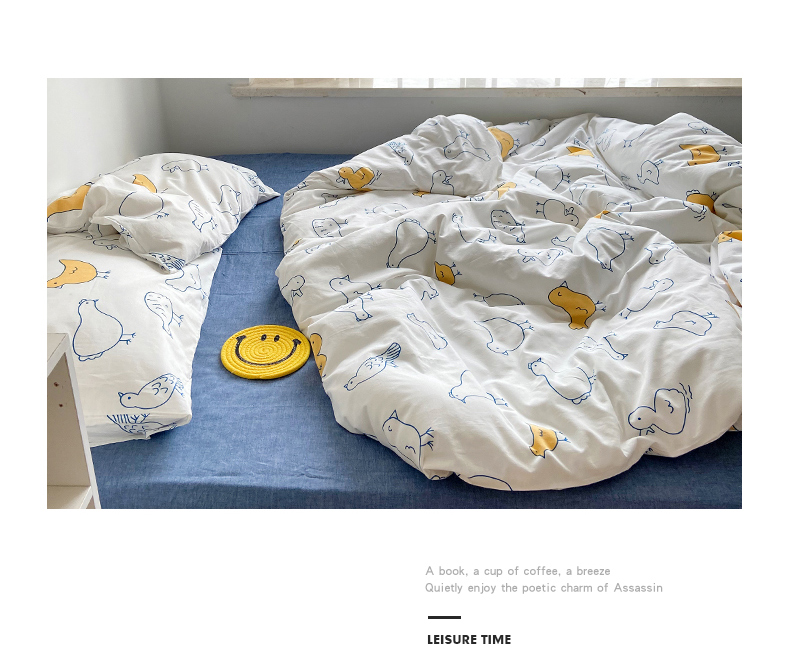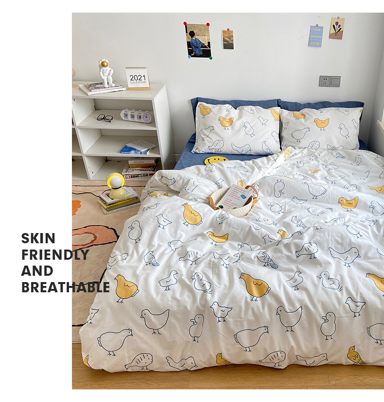 当前位置: 91家纺网 > 商品网购 > 床品套件 > 四件套 > 全棉普通四件套 > 尺素 纯棉ins印花水洗棉卡通可爱全棉被套纯色床单四件套 可爱小鸡白