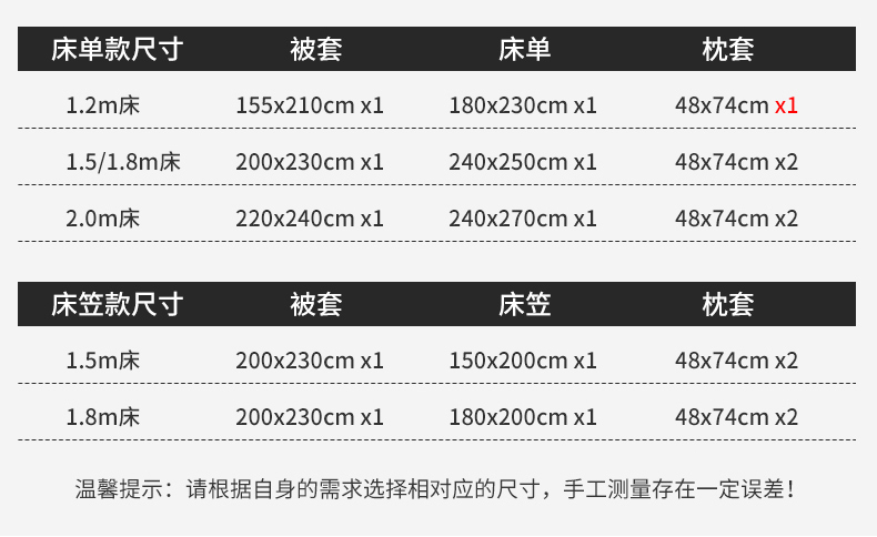 1.8m床笠款四件套 | ¥155.00 |