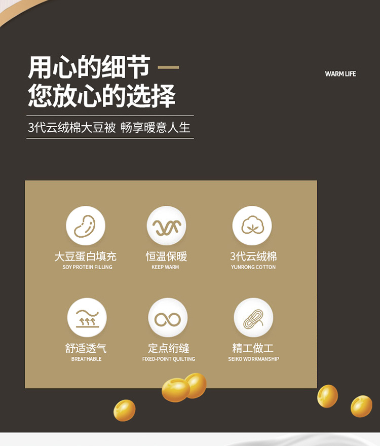 填充纤维种类: 大豆蛋白改性聚酯纤维