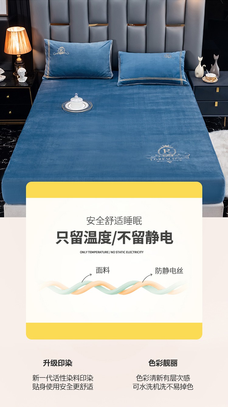 商品名称:芃成家纺 2021新款牛奶绒绣花单床笠 宾利兰