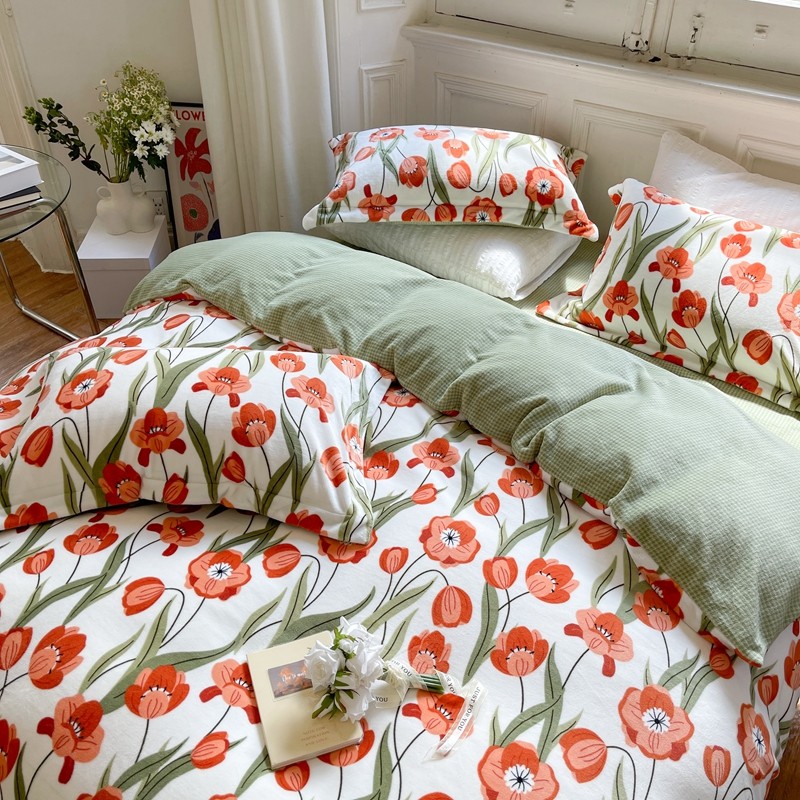 (总)柚子YOUTH 2025新款全棉双层纱华夫格提花暖绒四件套,馥郁花香,咖豹纹,兰格蜡笔画,玫瑰兔兔,拼图爱丽丝,ins咖格