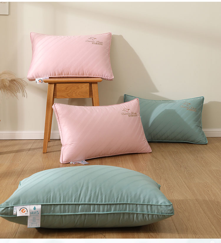 (总)枕之坊 2021新款好运梦小蜜蜂羽丝枕,白色低枕,白色中枕,白色高枕,粉色低枕,粉色中枕,粉色高枕,灰色低枕,灰色中枕,灰色高枕,蓝色低枕,蓝色中枕,蓝色高枕