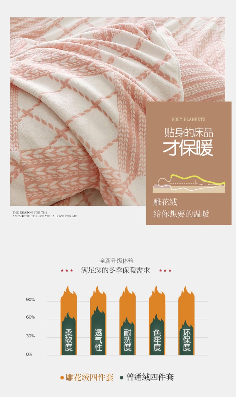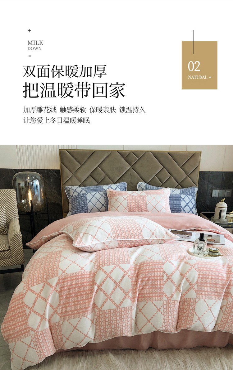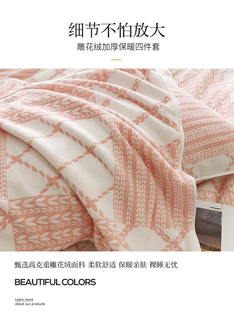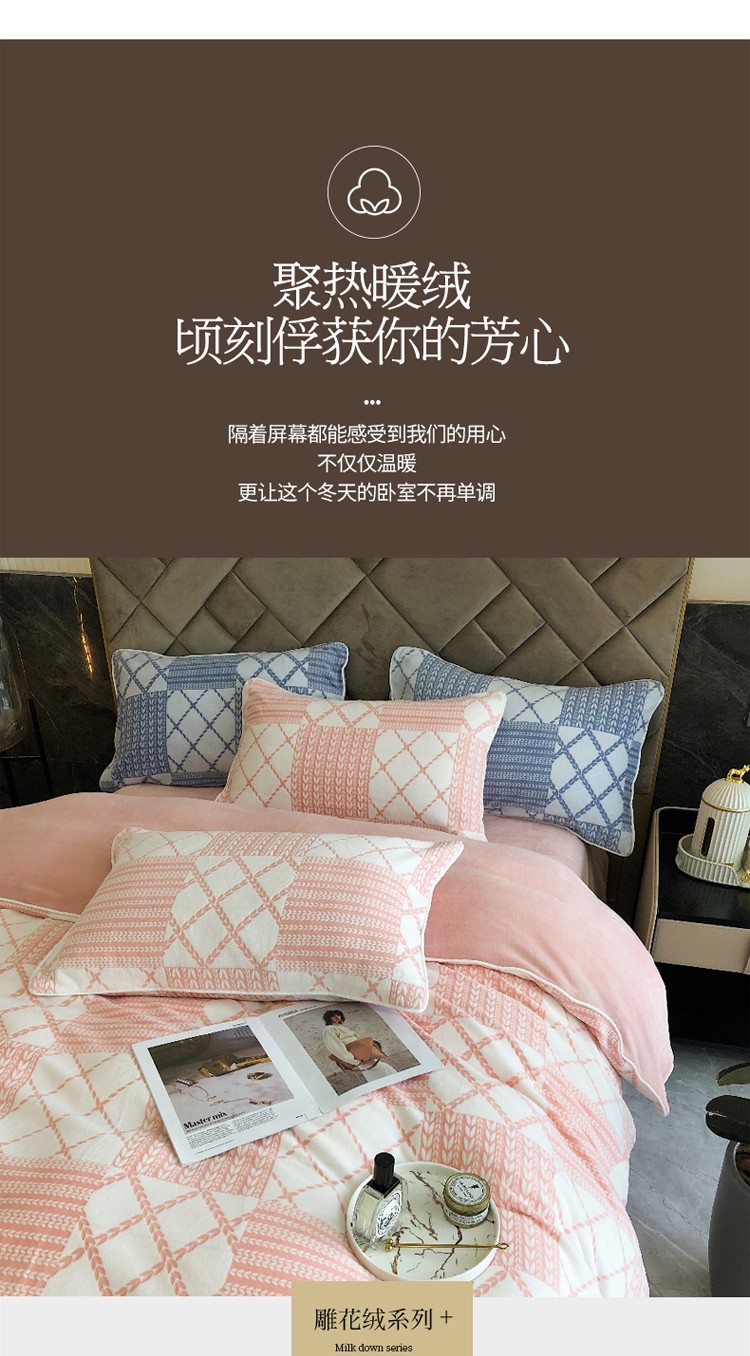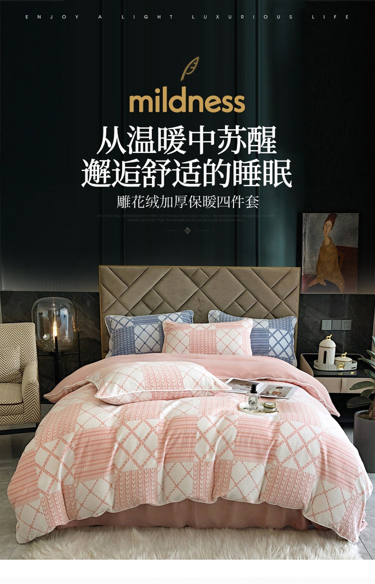 当前位置: 91家纺网 > 商品网购 > 床品套件 > 四件套 > 牛奶绒四件套 > 慕尚 2022新款雕花绒立体牛奶绒轻奢系列四件套 华夫玉