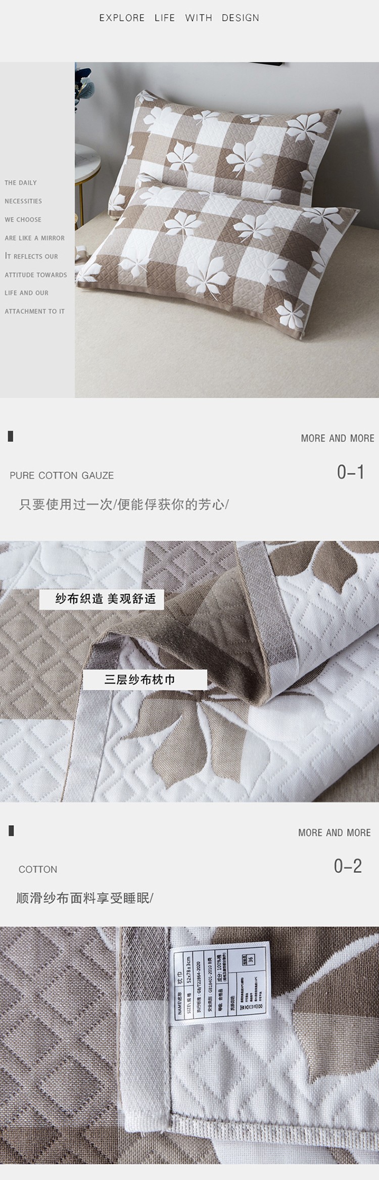 朴尔 2021新款优棉格调风三层纱布枕巾 林中漫步-绿