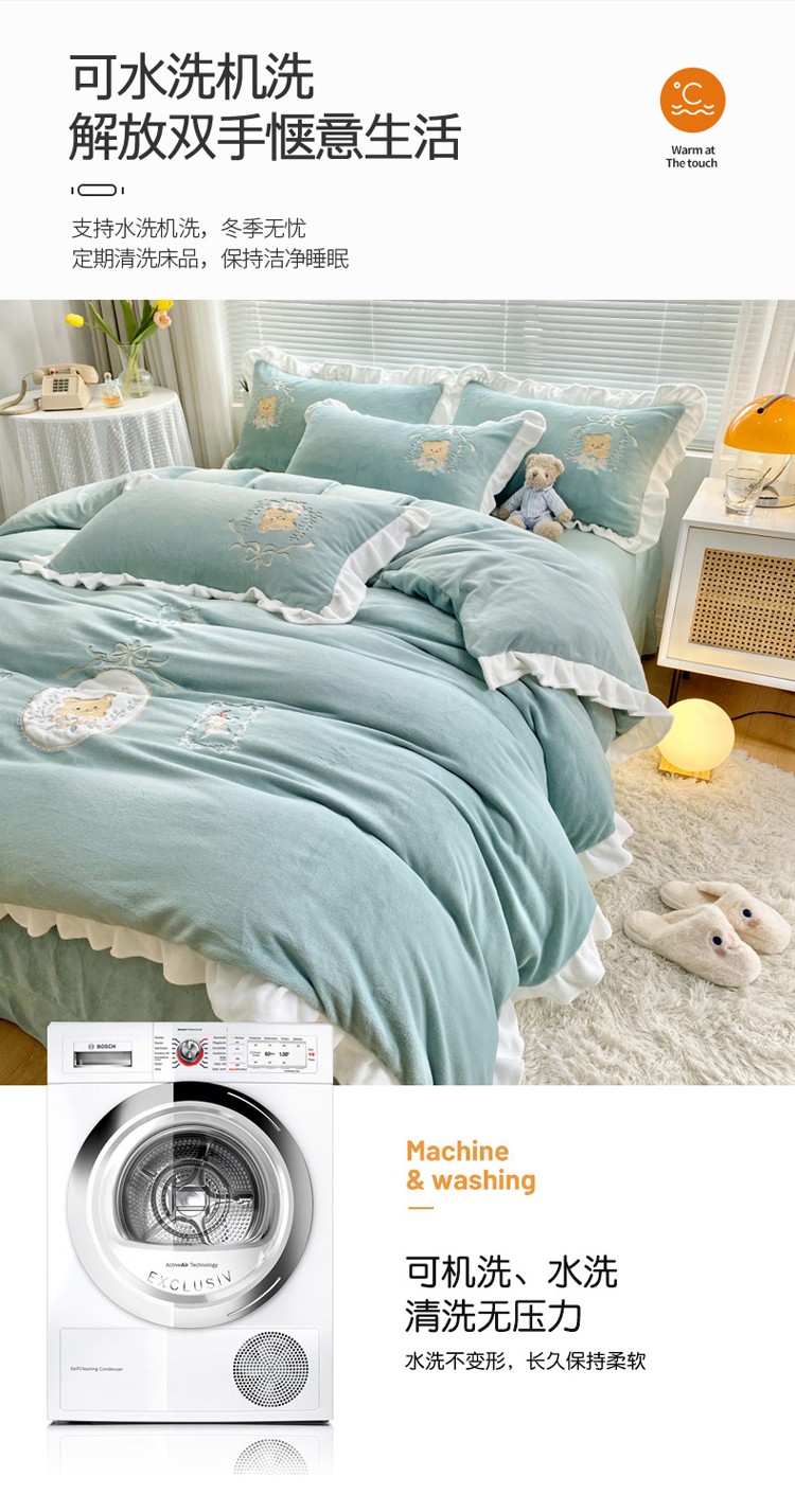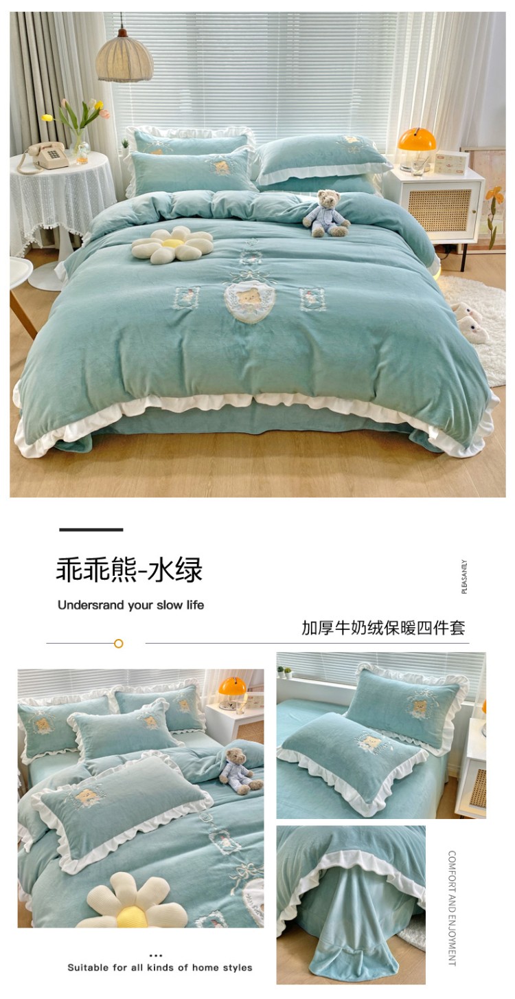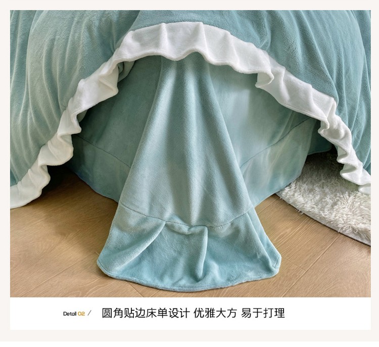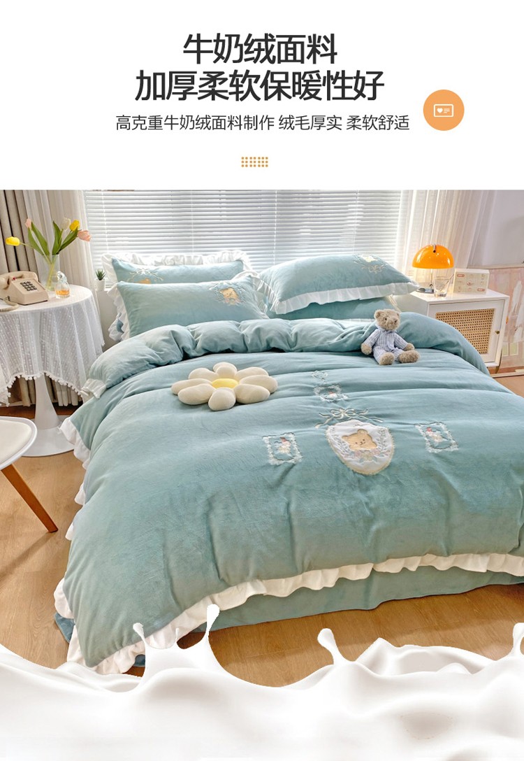 (总)星尚家纺 2024新款加厚保暖全消光牛奶绒夹棉床裙四件套-玫瑰之恋,粉玉,寐紫,浅蓝,水绿