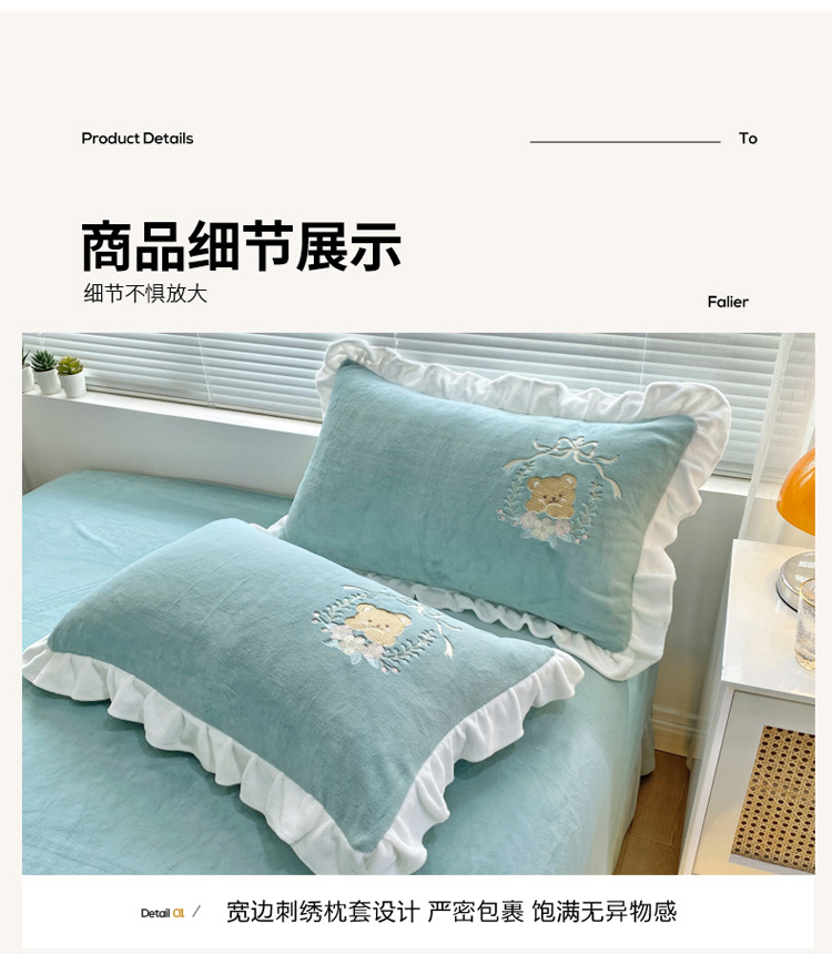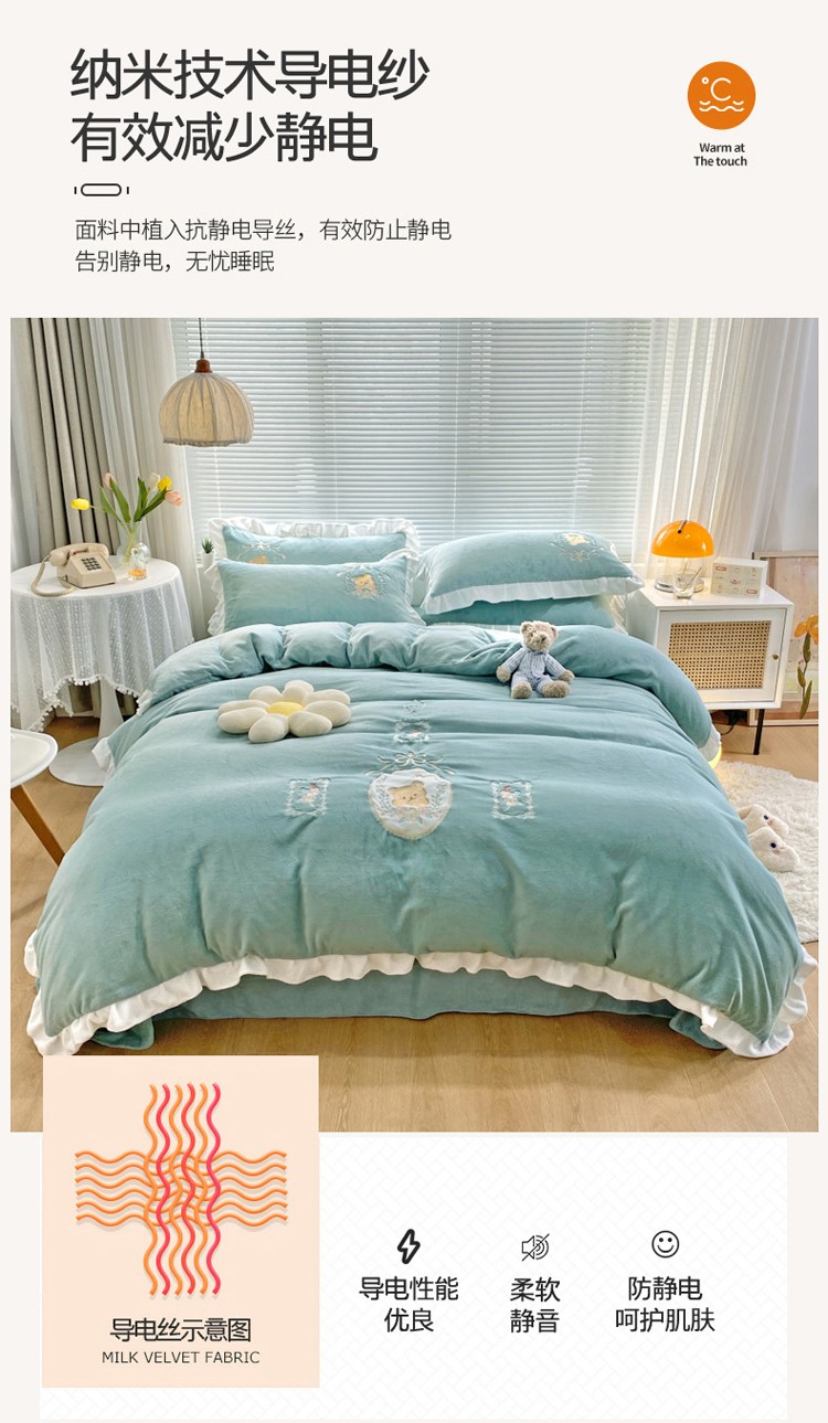 商品名称:星尚 高品质牛奶绒绣花四件套加厚法莱宝宝婴儿绒-乖乖熊 水绿