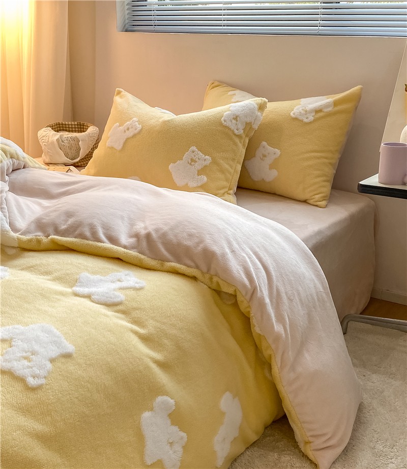 当前位置: 91家纺网 > 商品网购 > 床品套件 > 四件套 > 牛奶绒四件套 > 棉眠 2021新款秋日熊熊系列四件套 冬日熊-黄
