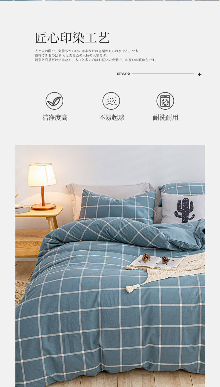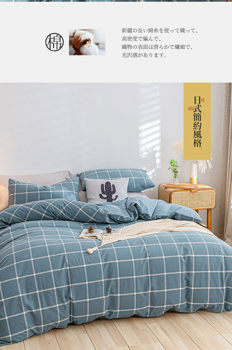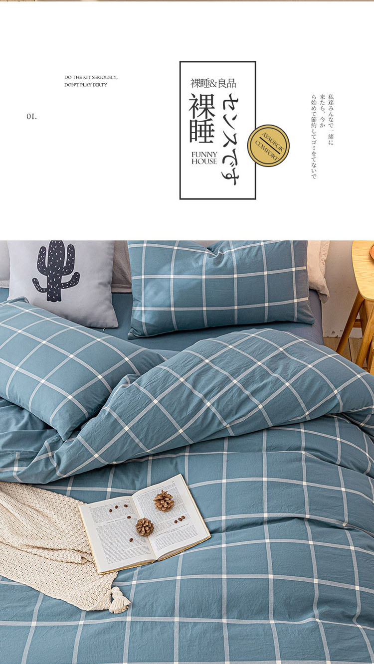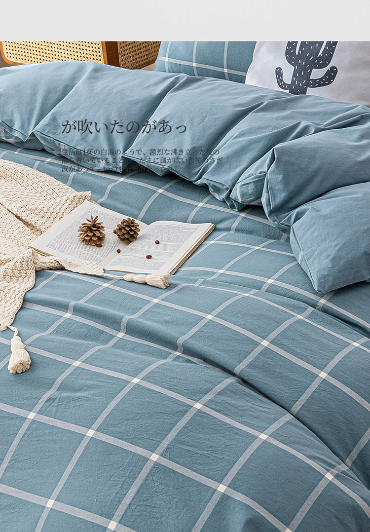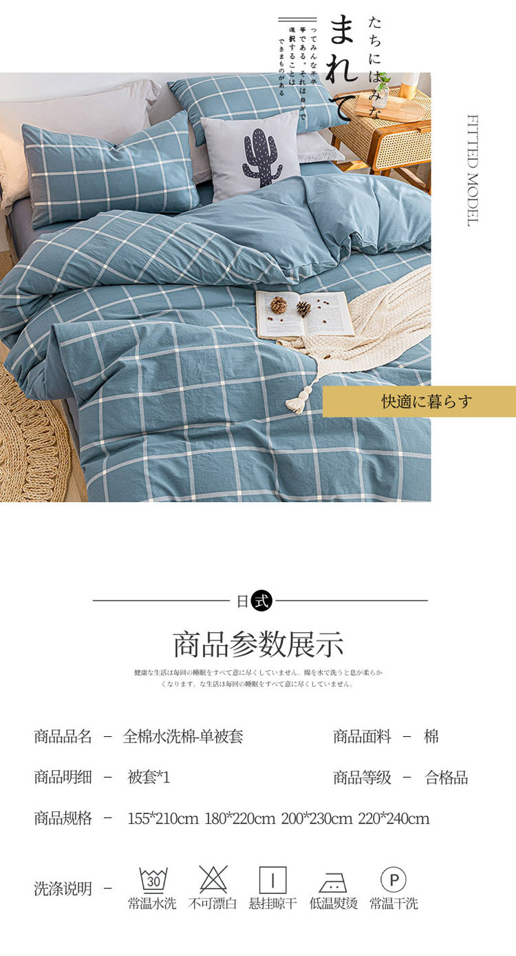 商品名称:蓝巢家纺 2021新款全棉色织水洗棉单被套 蓝灰大格