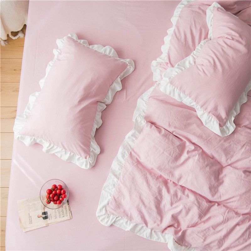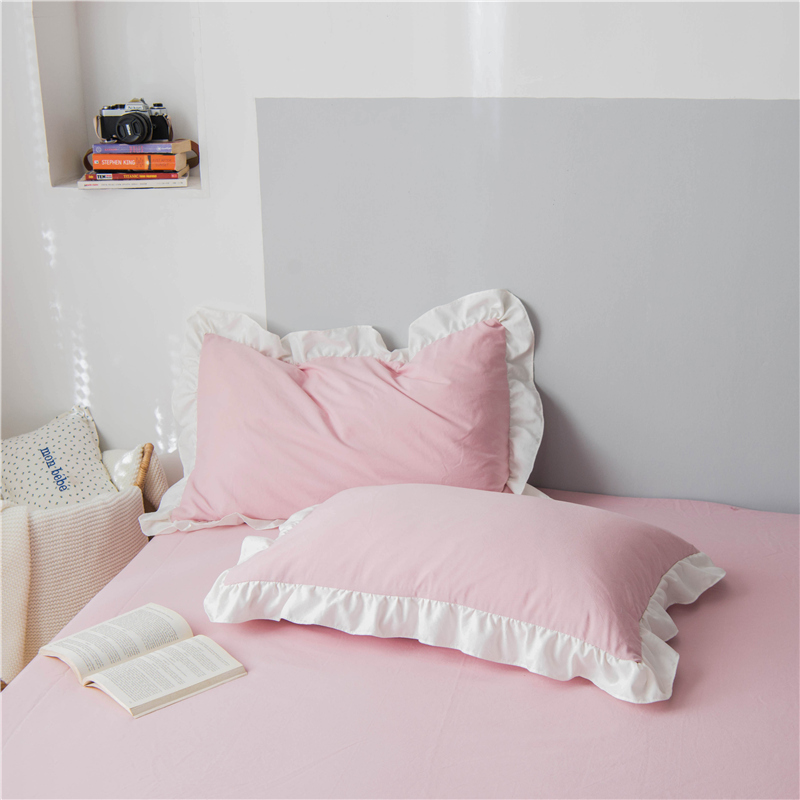 • 91家纺网 家纺一手货源 找家纺 轻奢坊2023日系褶皱短花边单品枕套48*74cm浅小粉一对