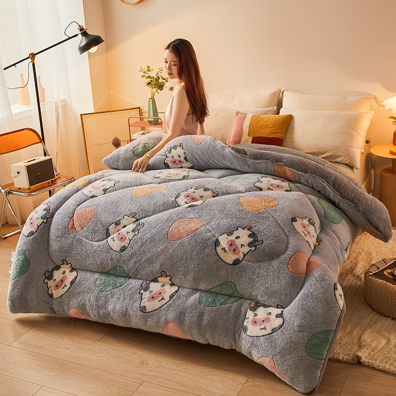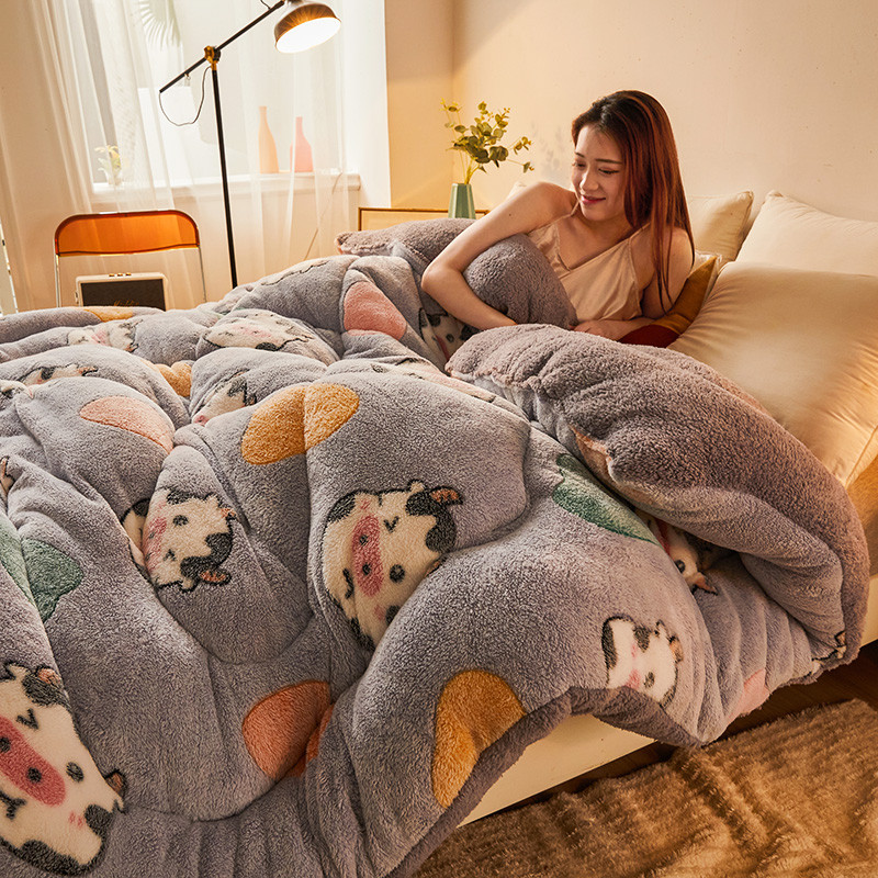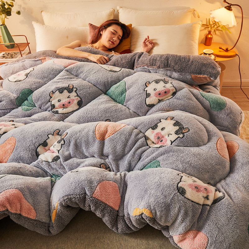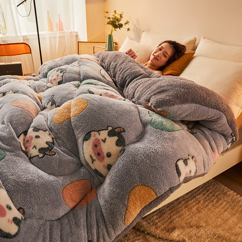 商品名称:梦初语 2021加厚保暖雪花绒加羊羔绒冬被子被芯勇敢牛牛