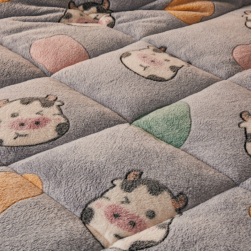 (总)梦初语 2025新款纯色牛奶绒贴布绣床垫褥冬季加绒加厚防滑学生宿舍 -直播爆款(面料17,猫咪-灰,猫咪-兰,维尼-咖,维尼-棕,小煤球-绿,小煤球-玉