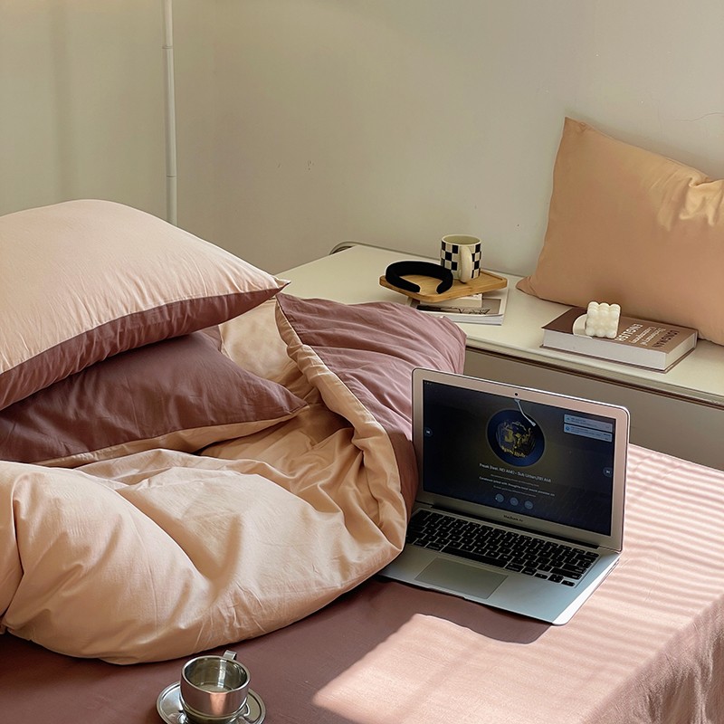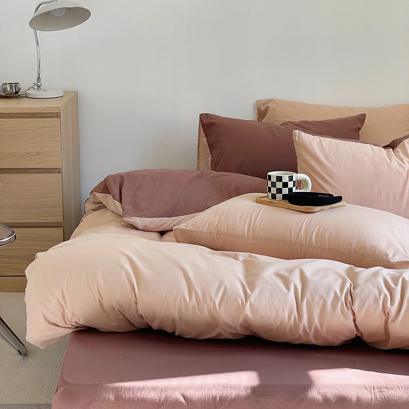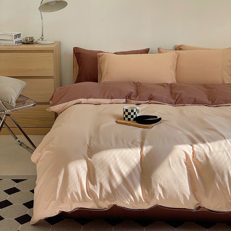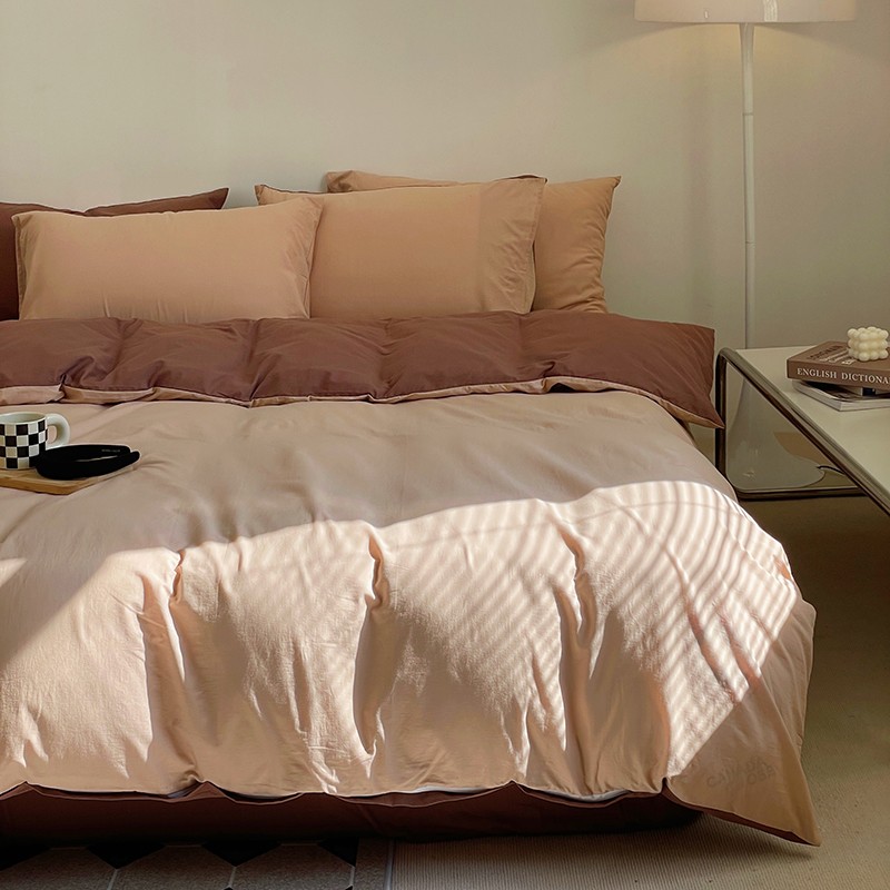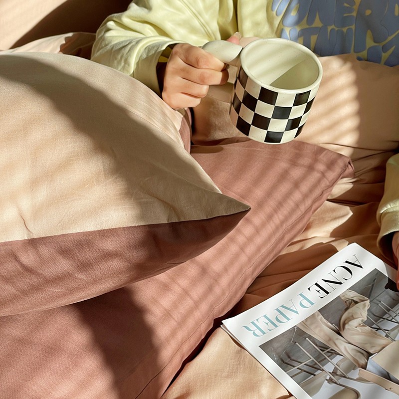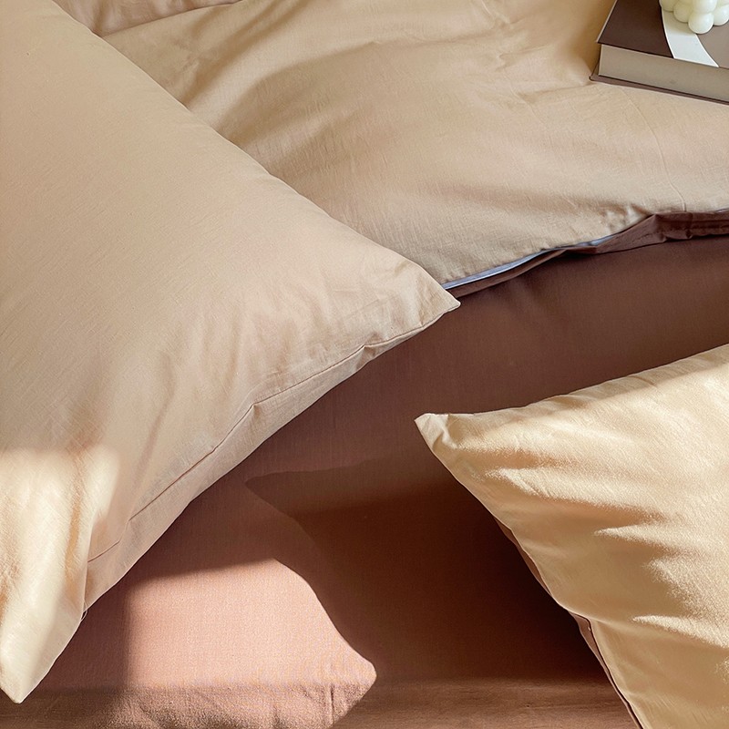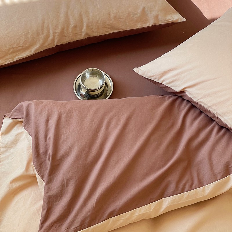 当前位置: 91家纺网 > 商品网购 > 床品套件 > 四件套 > 水洗棉四件套 > 窝米 2022春季新品素色双拼水洗棉系列四件套 可可双拼