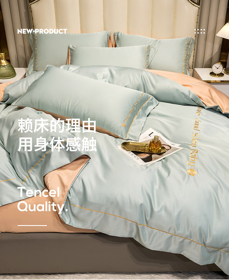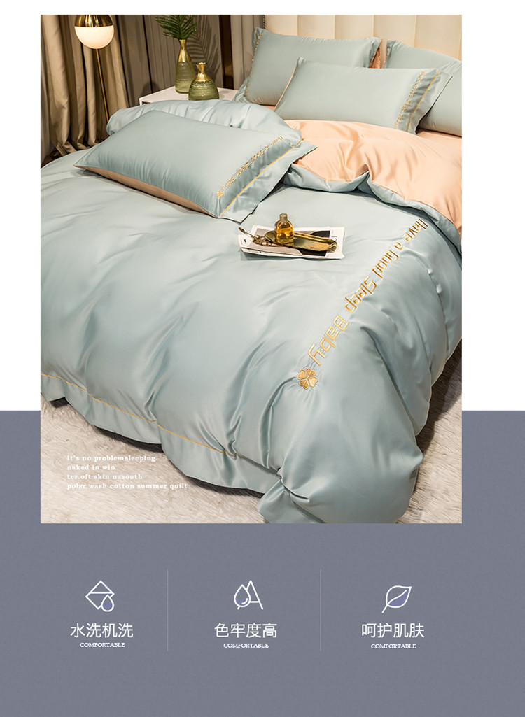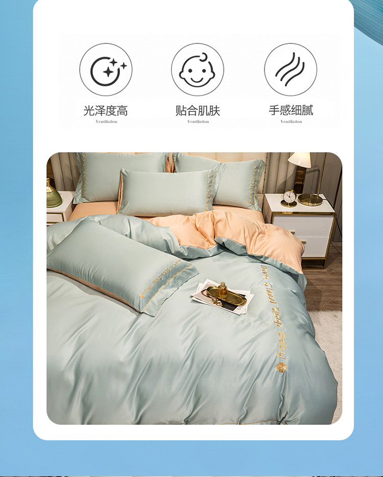 (总)骏腾 2022新款纯色水洗真丝刺绣四件套,羽毛-湖蓝,羽毛-米白,羽毛-墨绿,羽毛-深蓝,羽毛-天蓝,羽毛-银灰