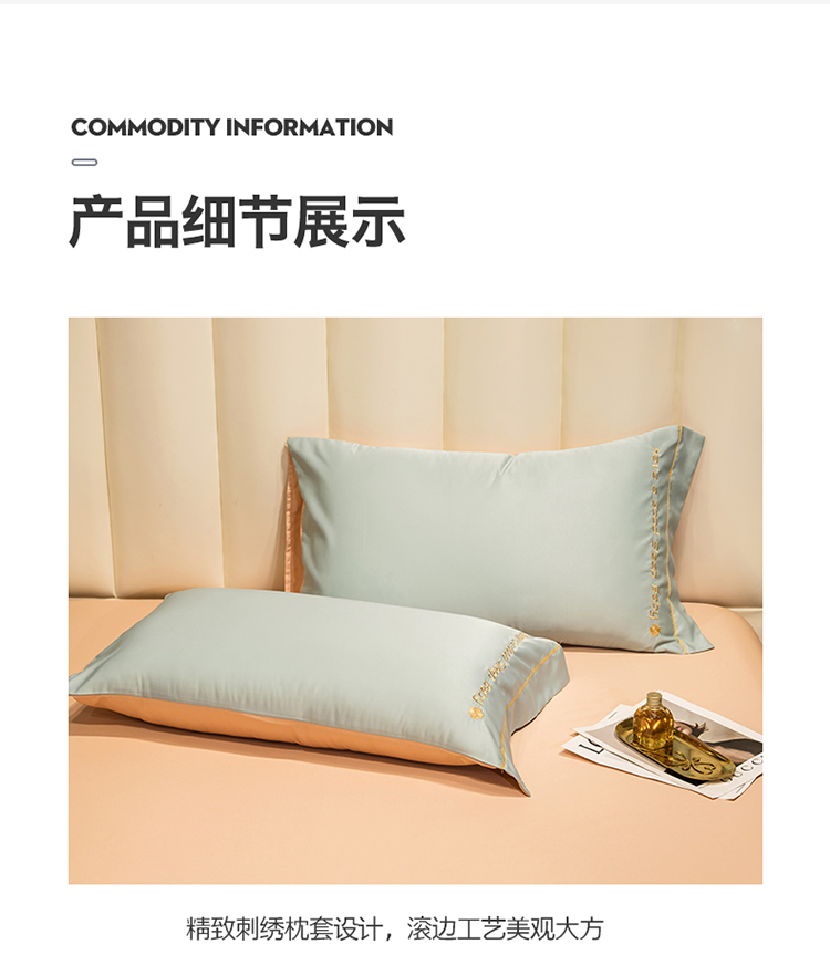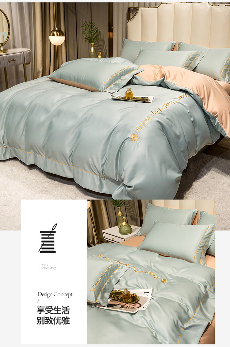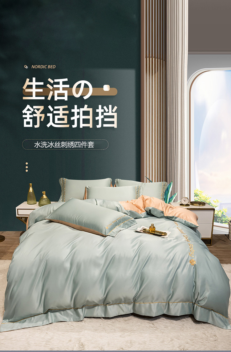 (总)骏腾 2023水洗冰丝刺绣四件套水洗真丝三件套天丝床笠,本白,豆沙,粉色,格林蓝,柠檬黄,水墨灰,雾霾蓝,西柚橙