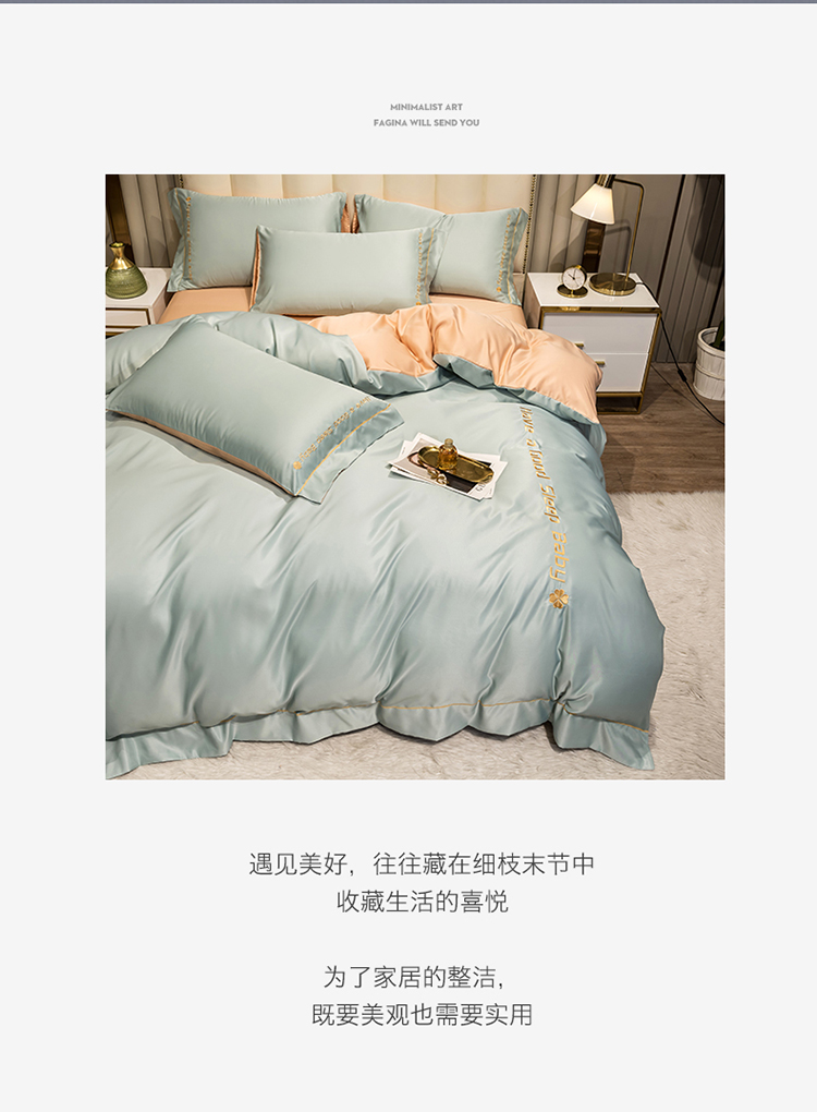 (总)骏腾 2022简爱水洗天丝绣花四件套水洗真丝三件套,宝蓝,湖蓝,酒红,墨绿,深灰,银灰,玉色