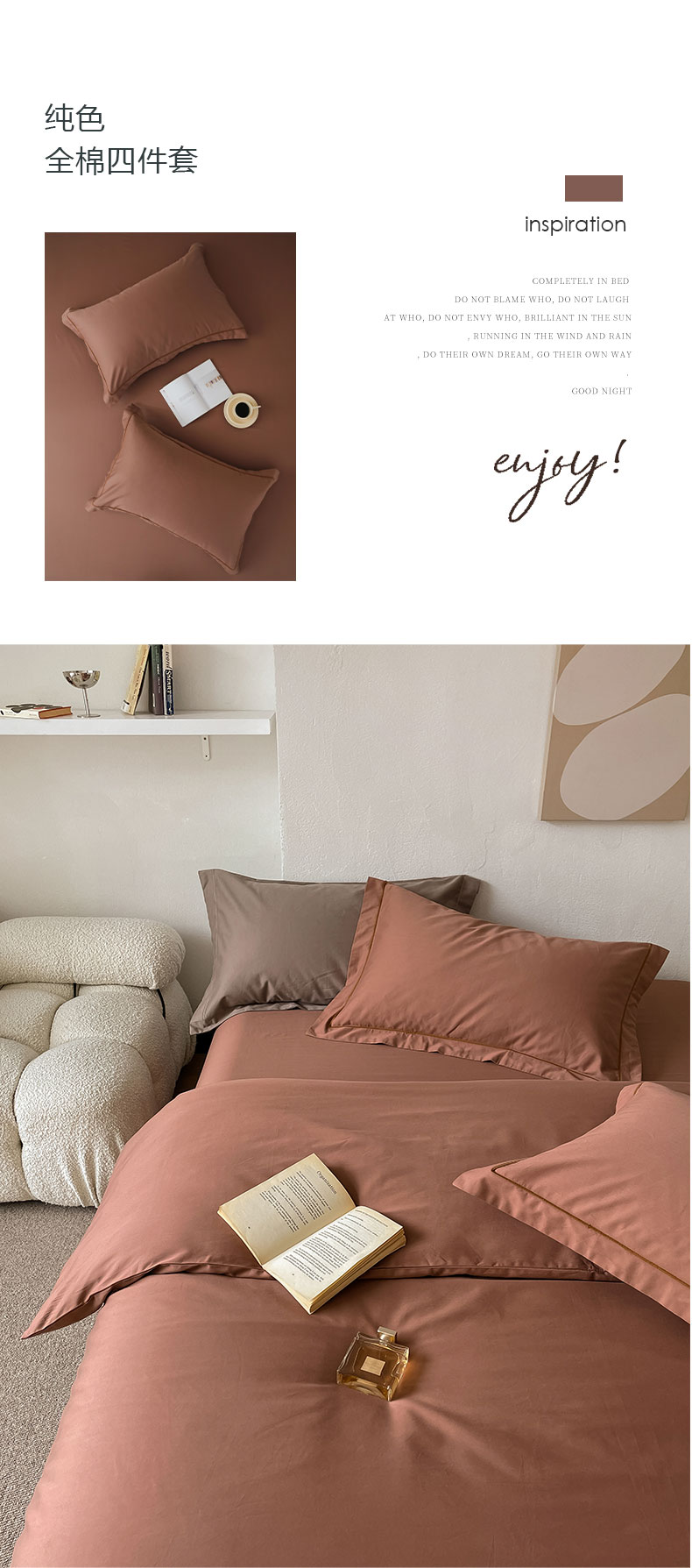 当前位置: 91家纺网 > 商品网购 > 床品套件 > 四件套 > 长绒棉四件套 > 蕊姿超柔水洗春夏新款50s双股新疆长绒棉纯色四件套摩卡棕
