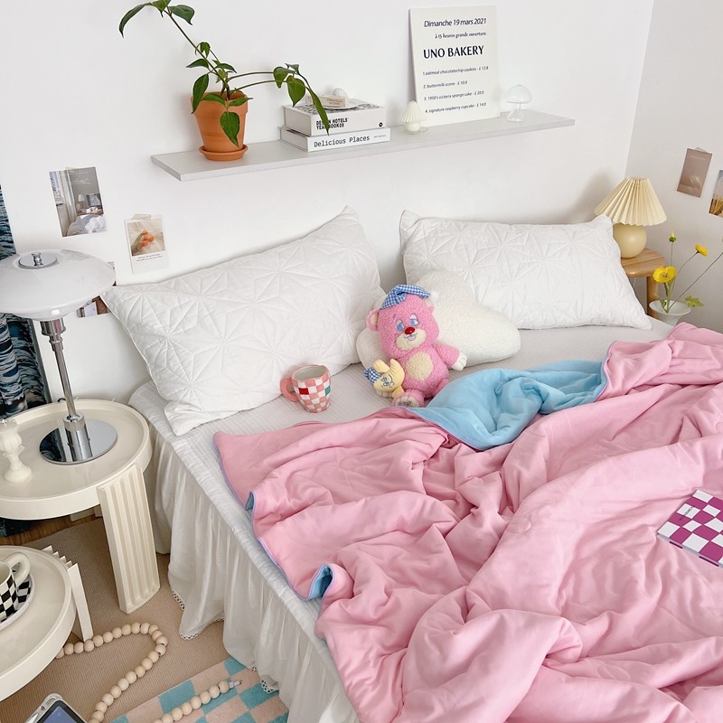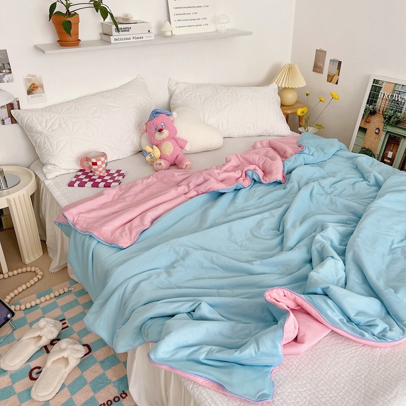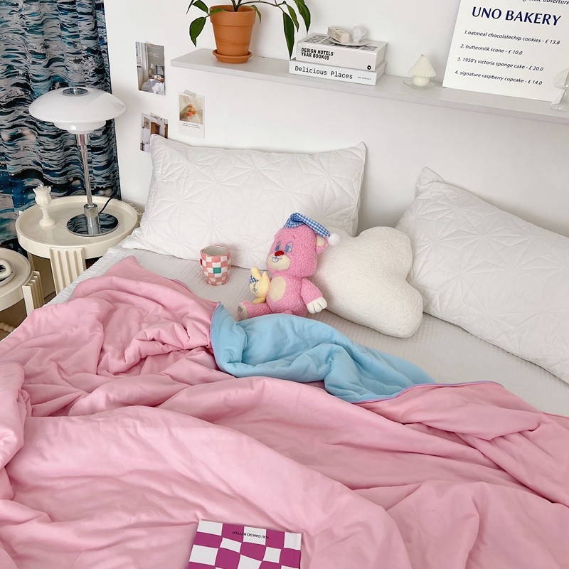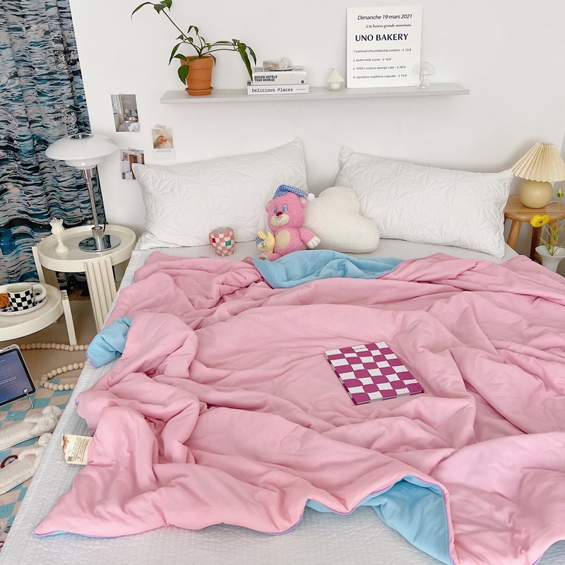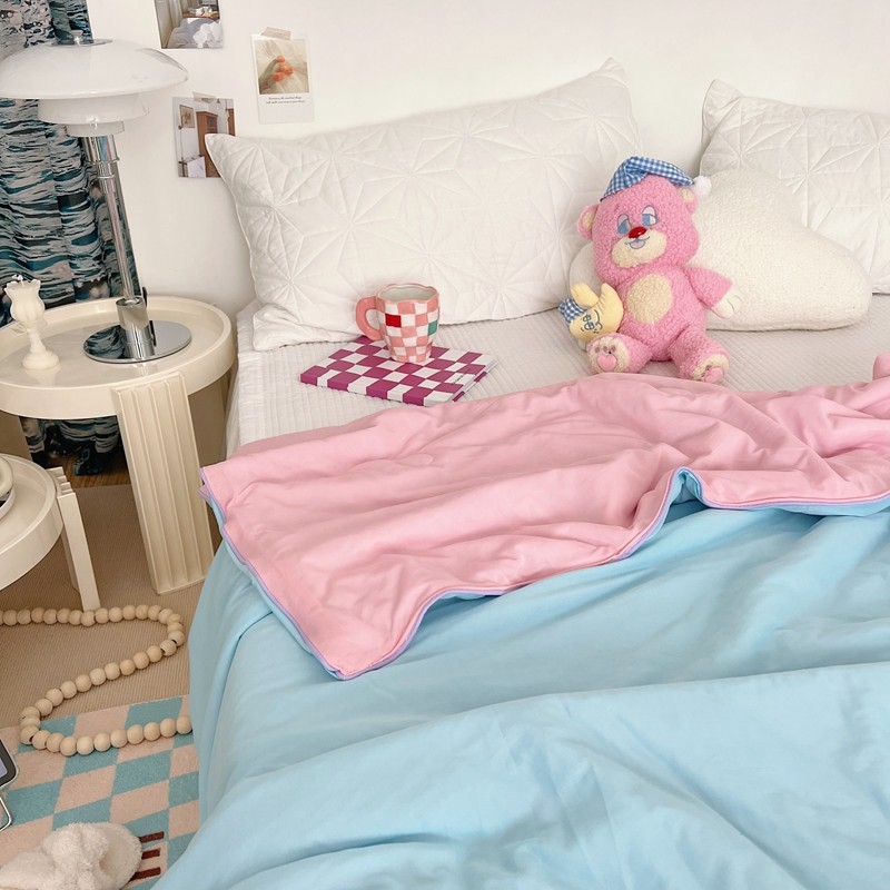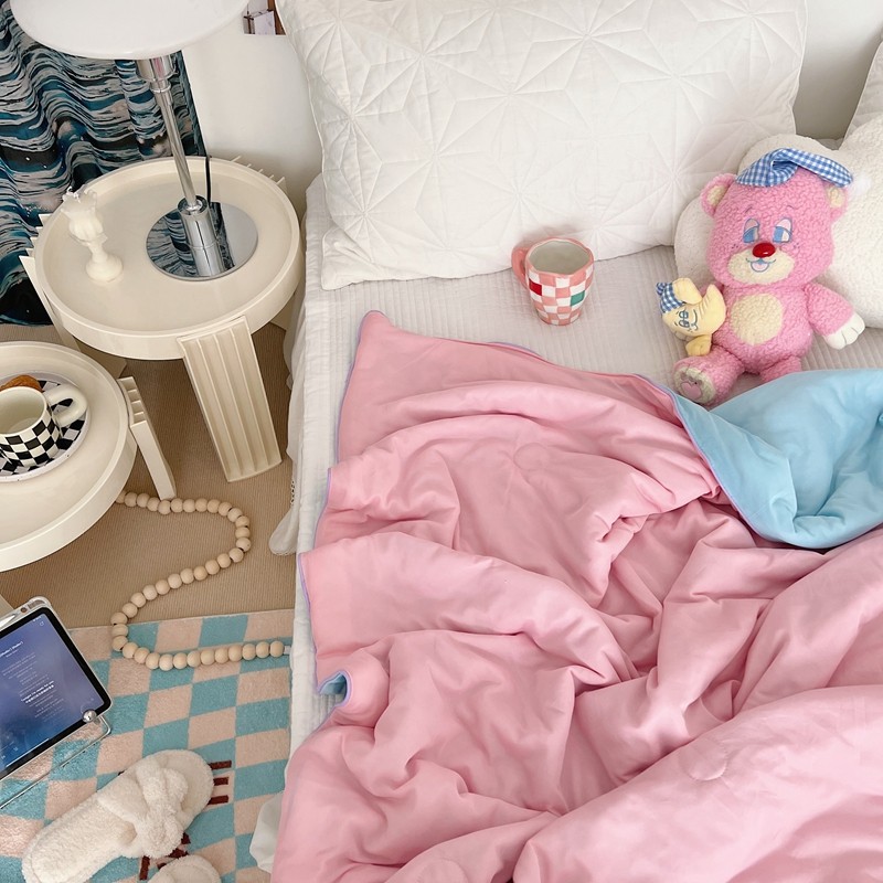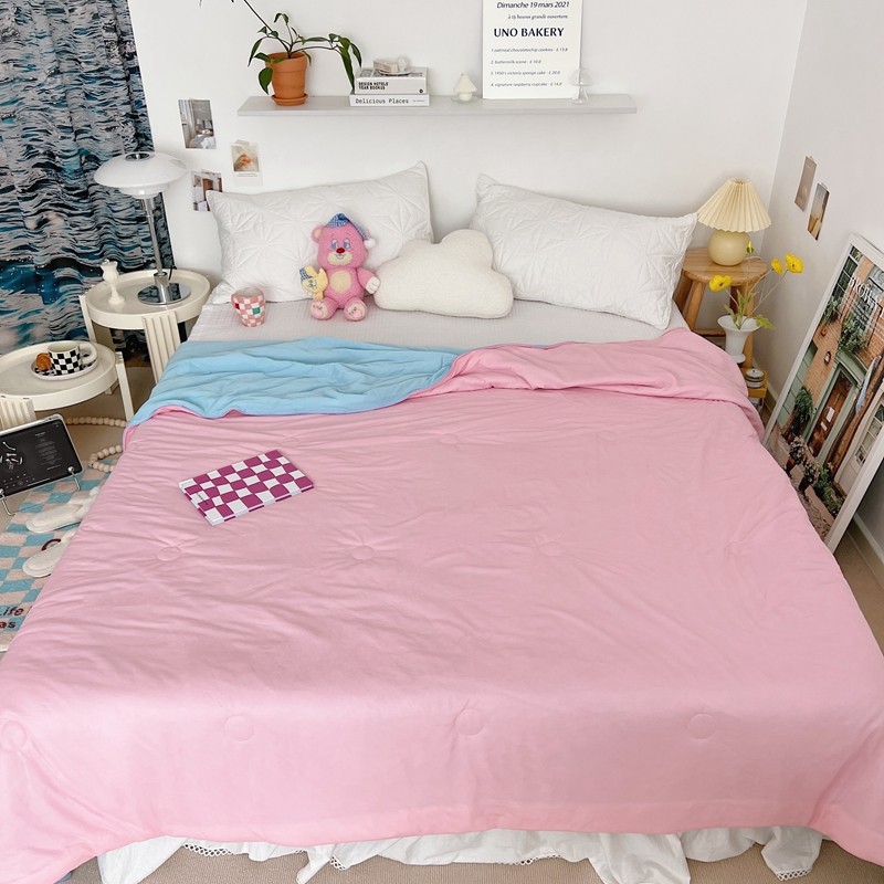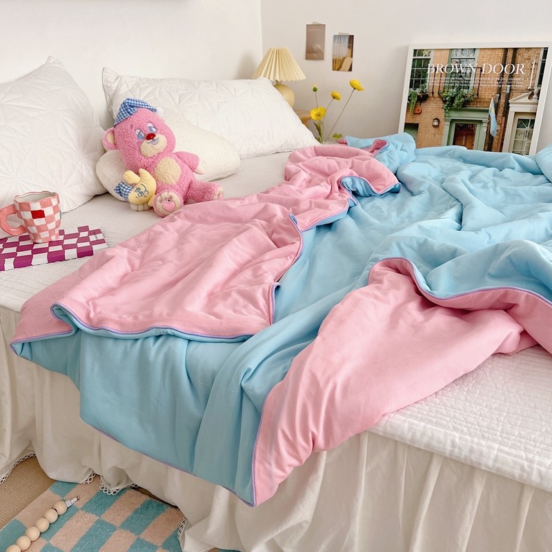 星期八 2022新款马卡龙针织棉大豆夏被 粉蓝