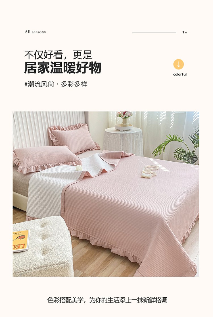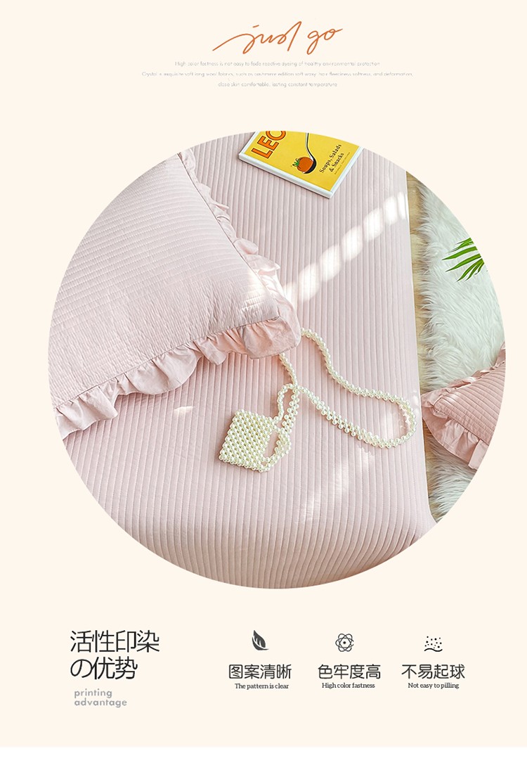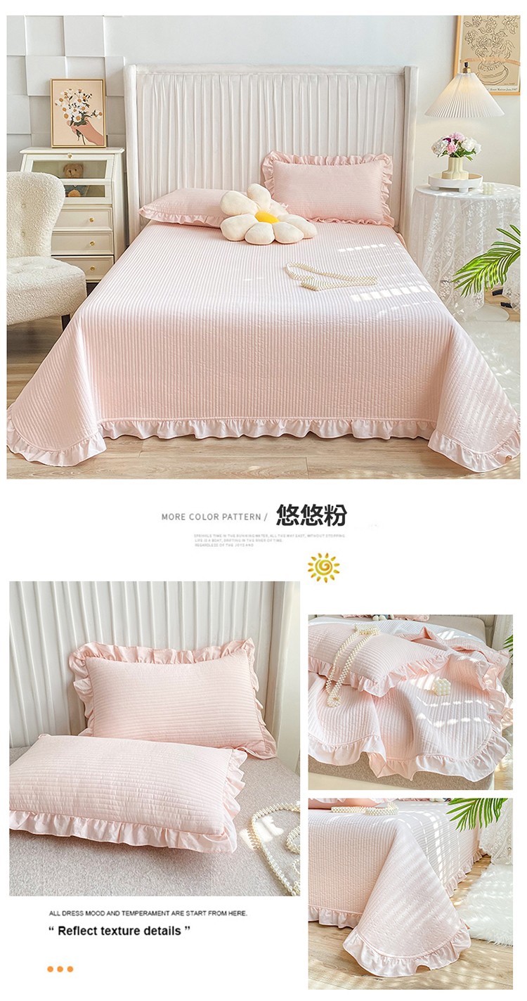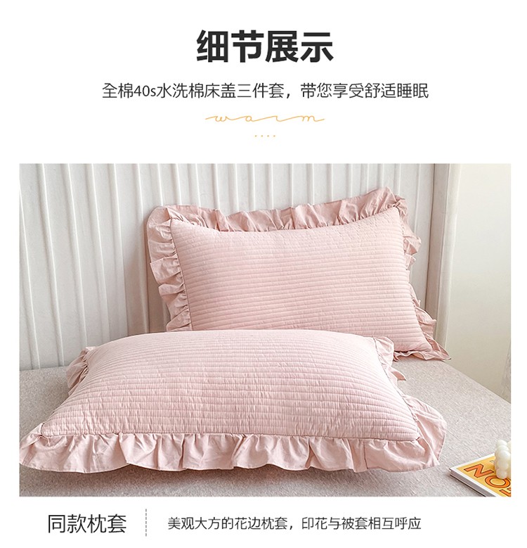 商品名称:总其奥 2025新款40S全棉水洗棉韩版荷叶边夹棉床盖三件套