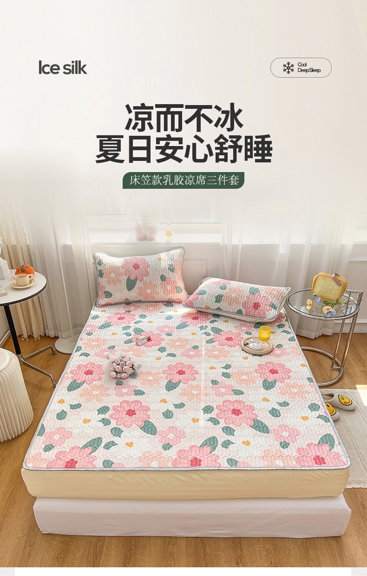 (总)寐居 2022新款0.5凉感丝床笠款乳胶凉席三件套