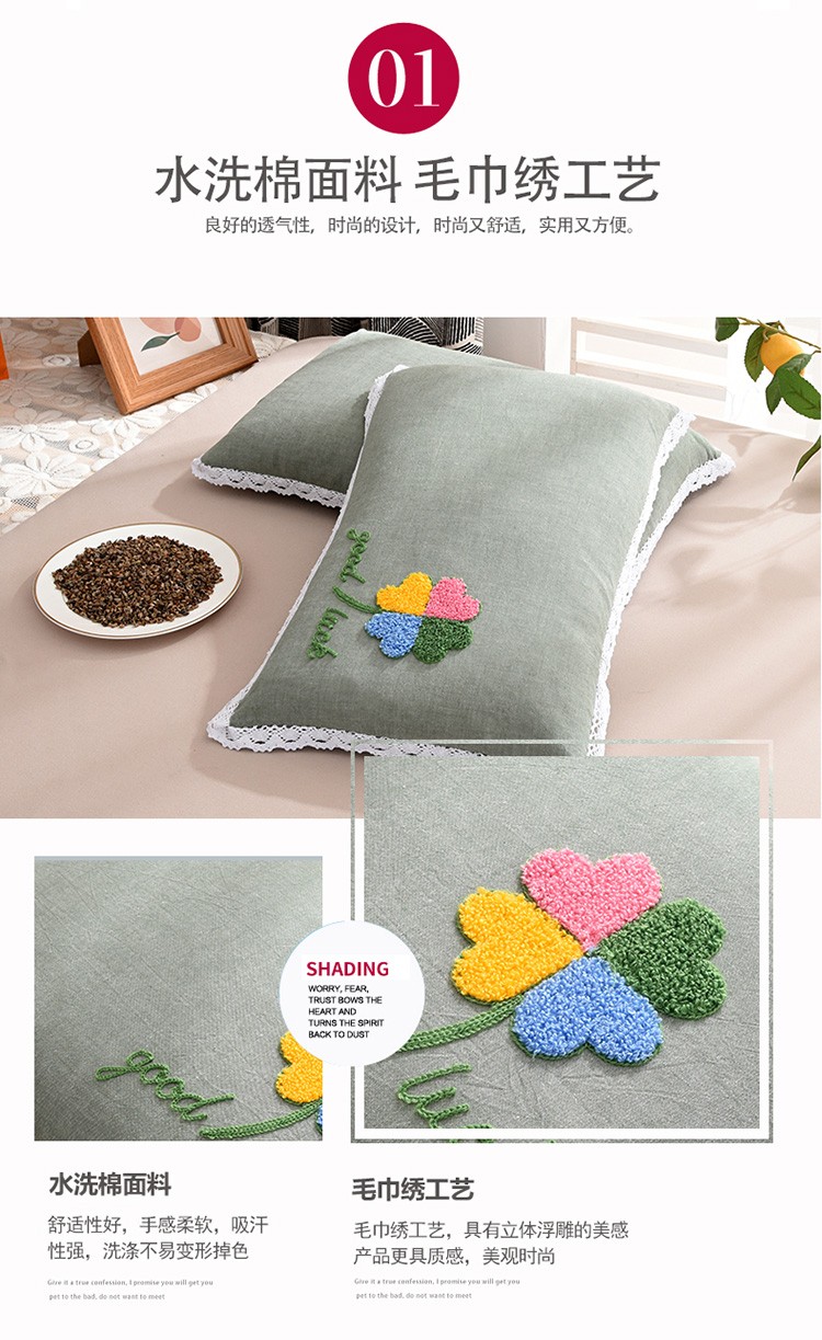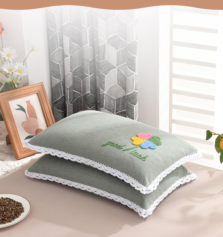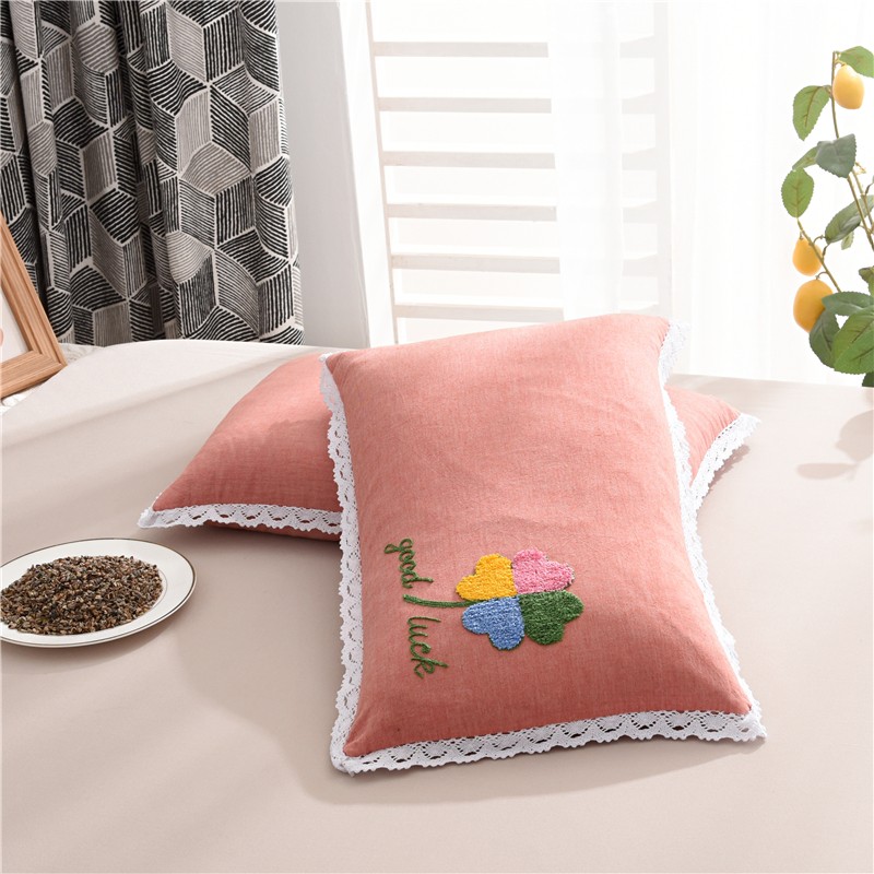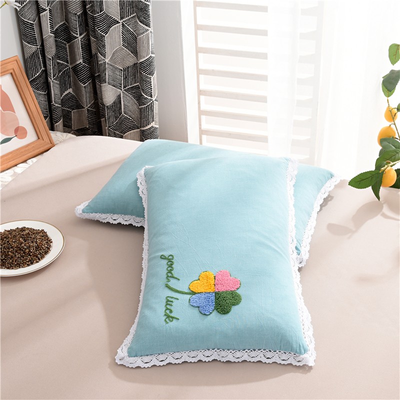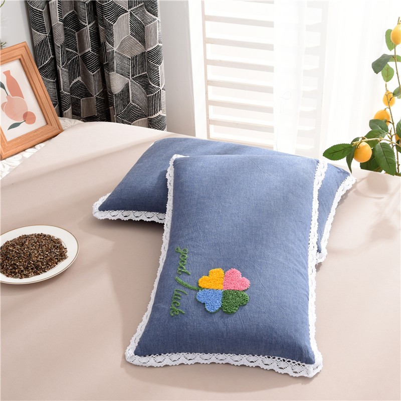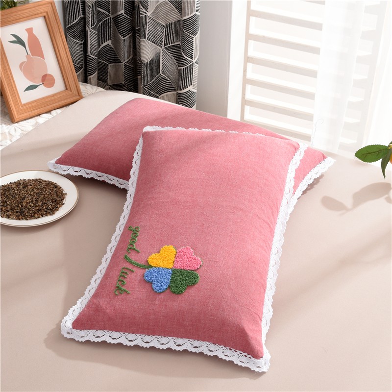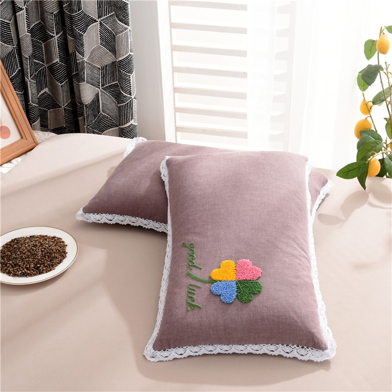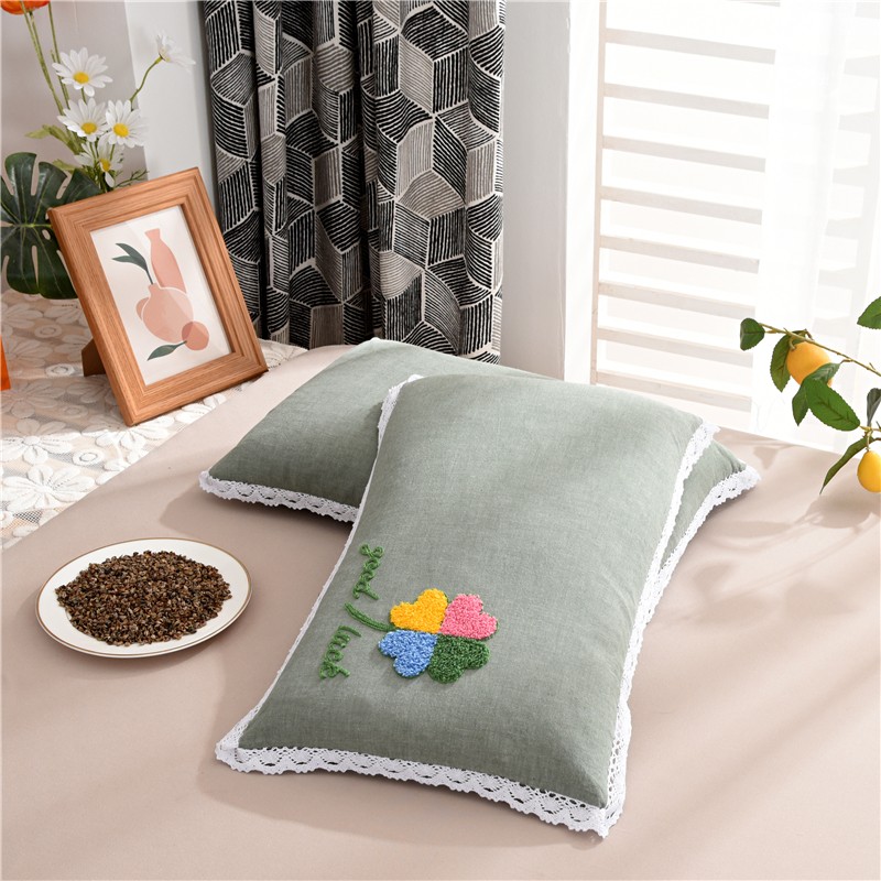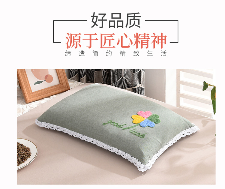 织布人 2022新款全棉水洗棉毛巾绣荞麦枕头枕芯-四叶草系列