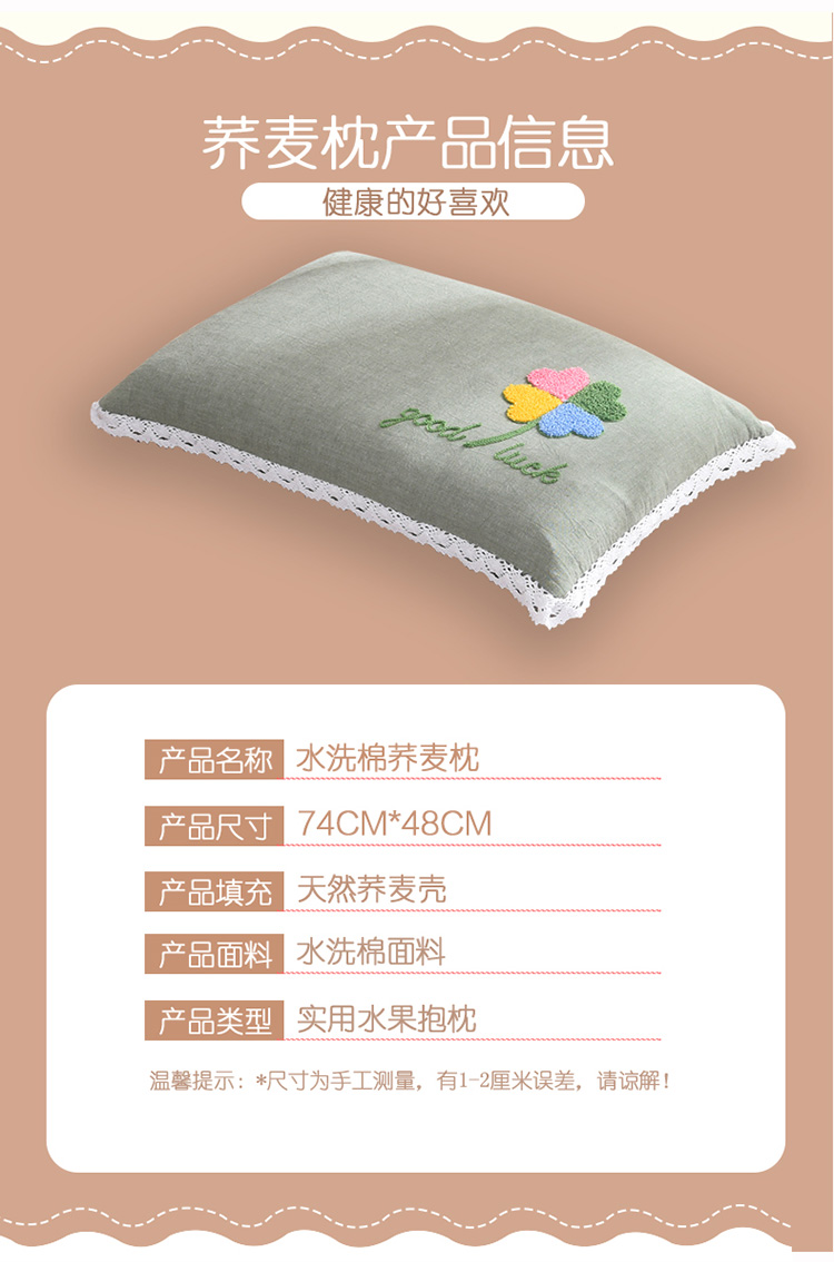 商品名称:织布人 2022新款全棉水洗棉毛巾绣荞麦枕头枕芯-四叶草系列