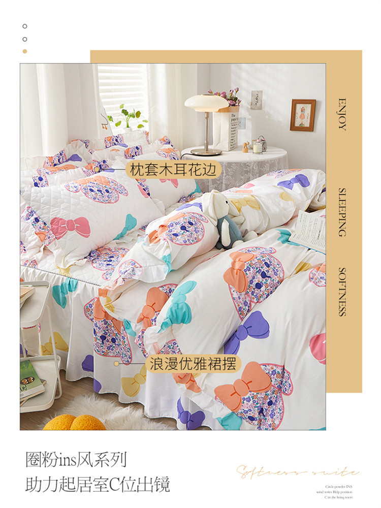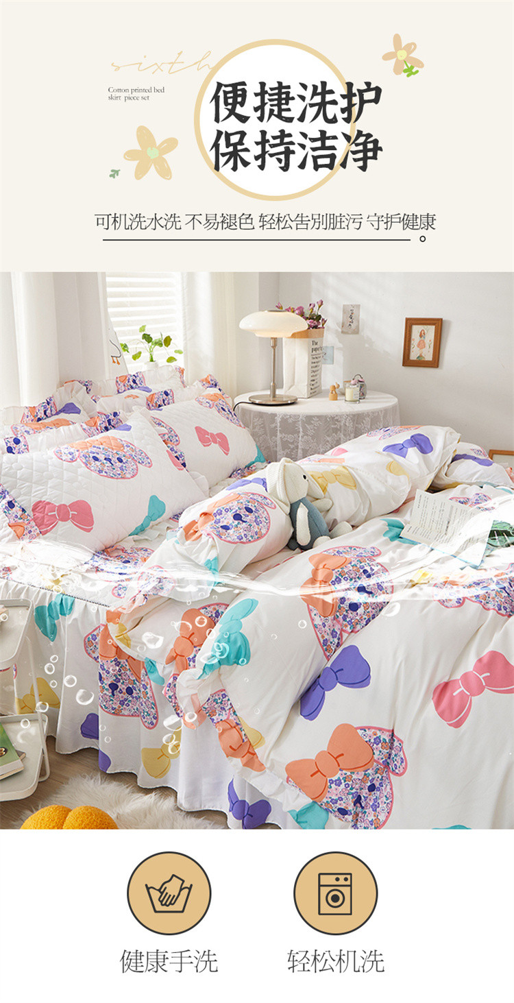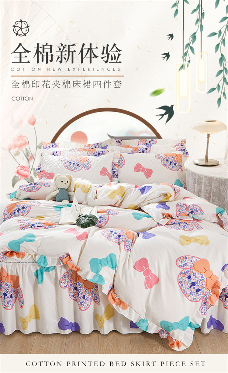 当前位置: 91家纺网 > 商品网购 > 床品套件 > 四件套 > 全棉普通四件套 > 十个点 2022新款全棉夹棉印花床裙四件套 花花狗