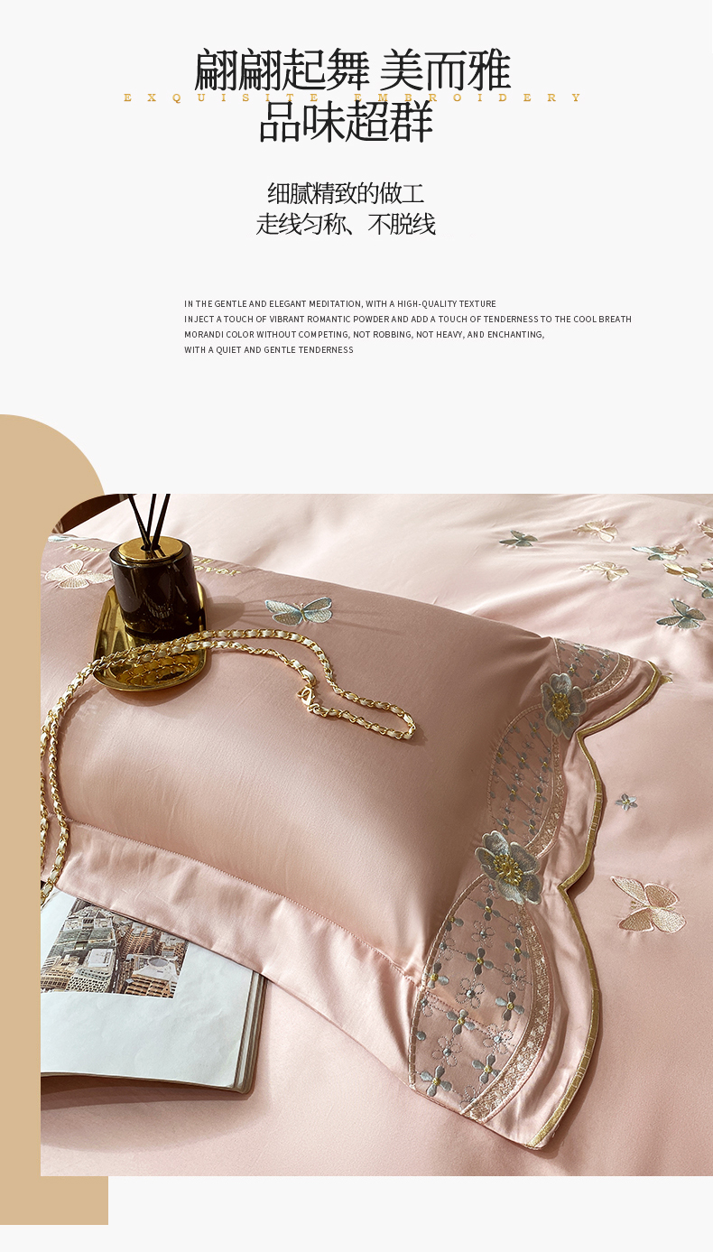 商品名称:(总)凯磊家纺 2022新款高支高密.长绒棉刺绣四件套-翩翩起舞