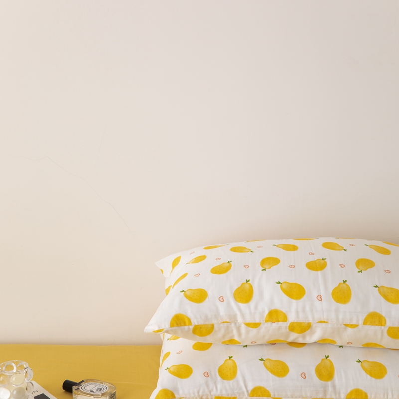 8小时家纺 2022新款全棉双层纱单枕套 小芒果