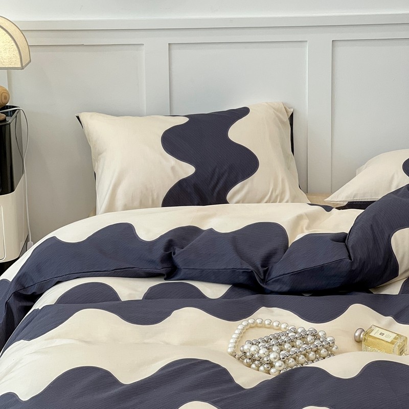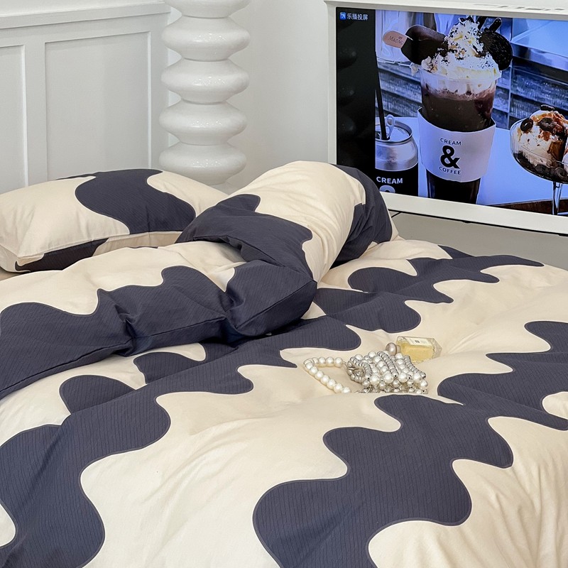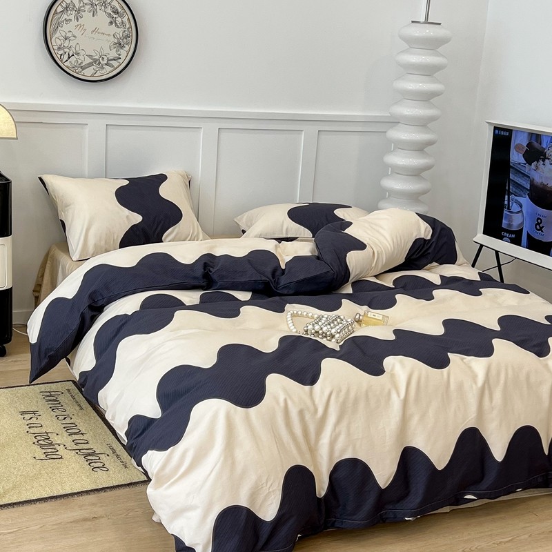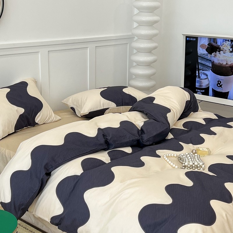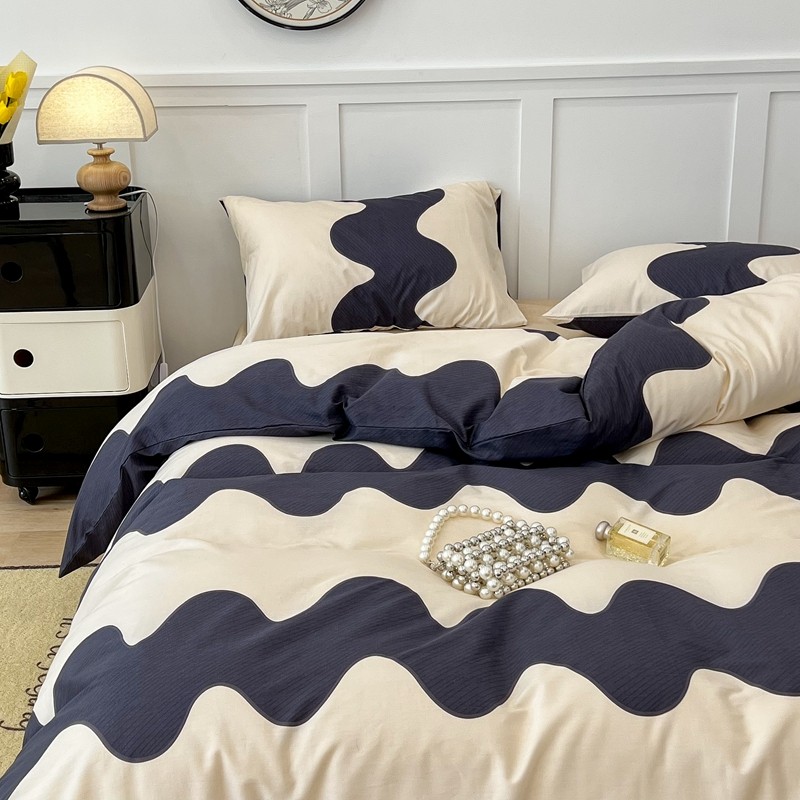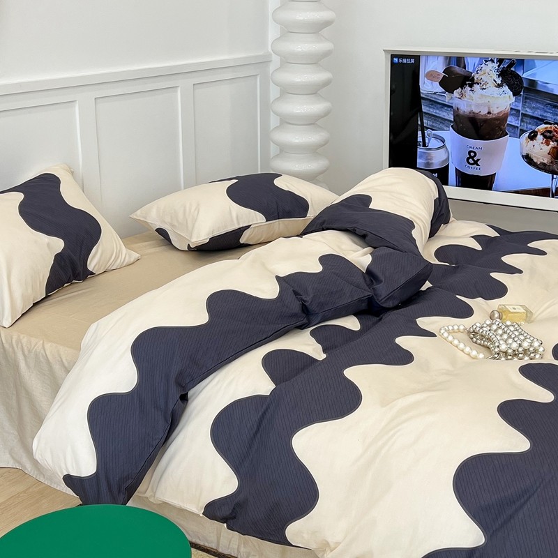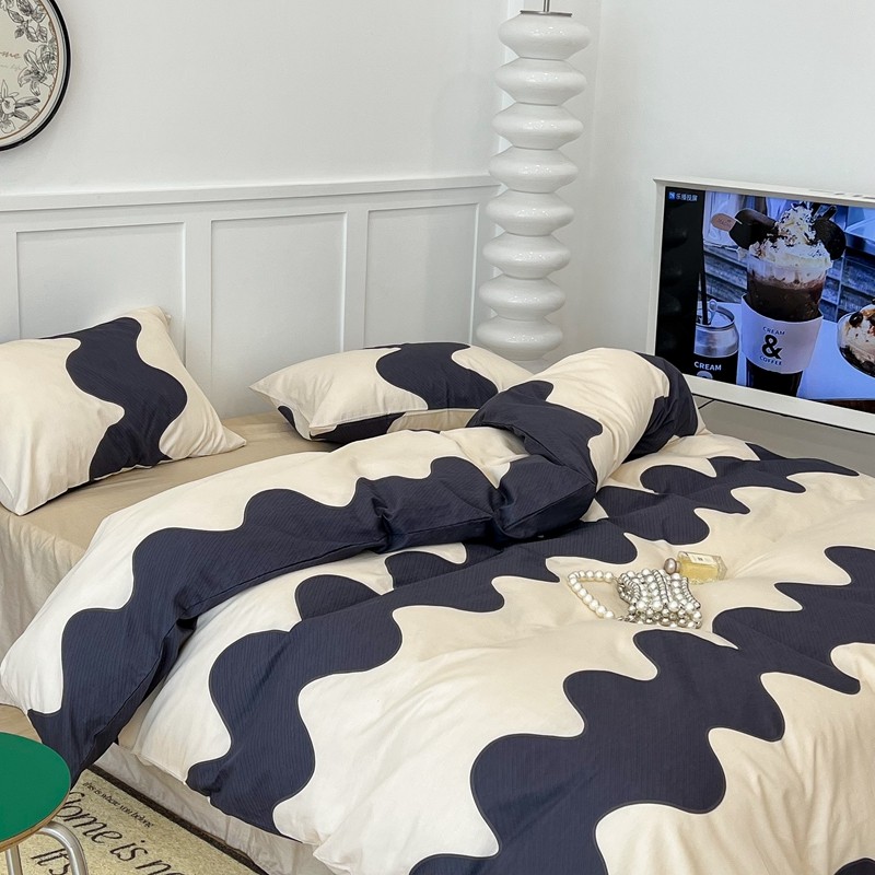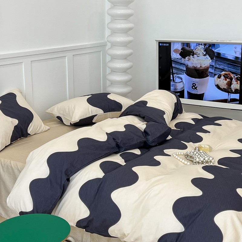 商品名称:昔可 2022新款全棉简约波纹系列四件套 黑波纹