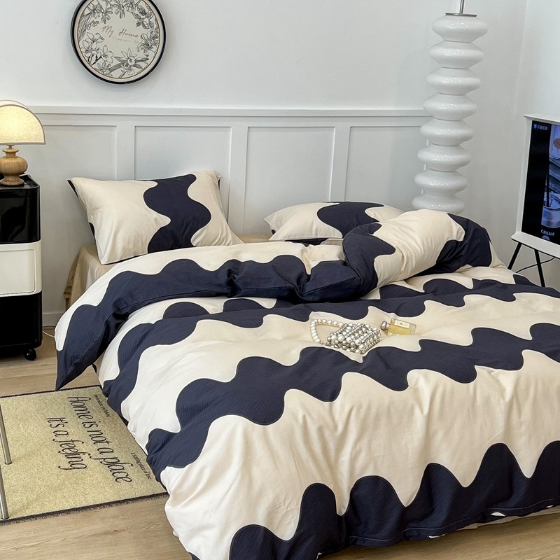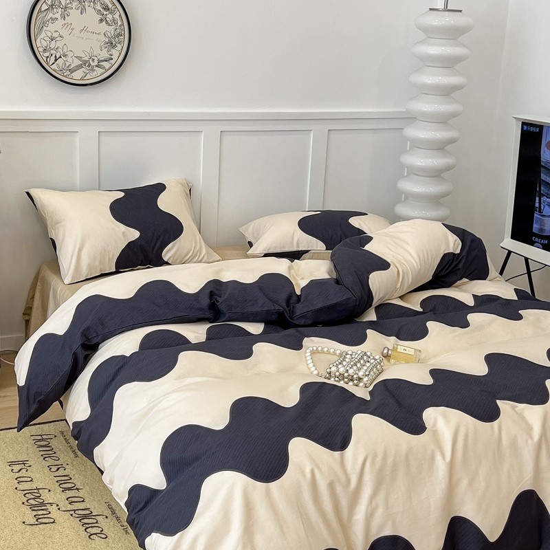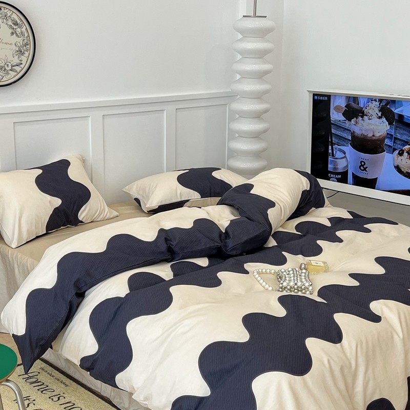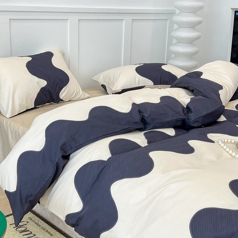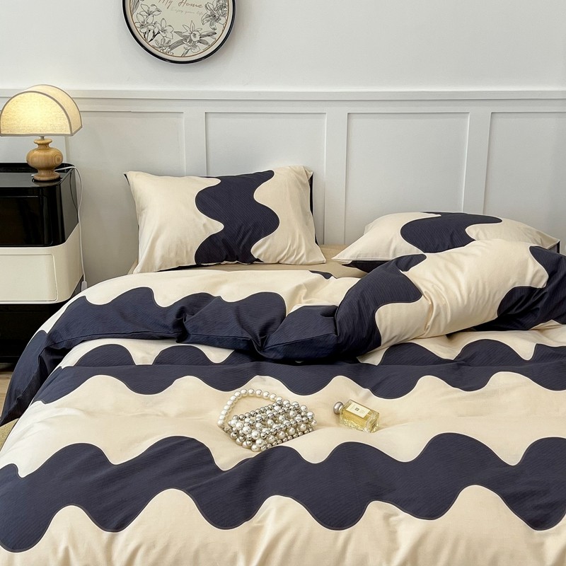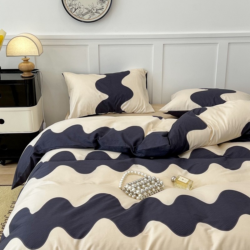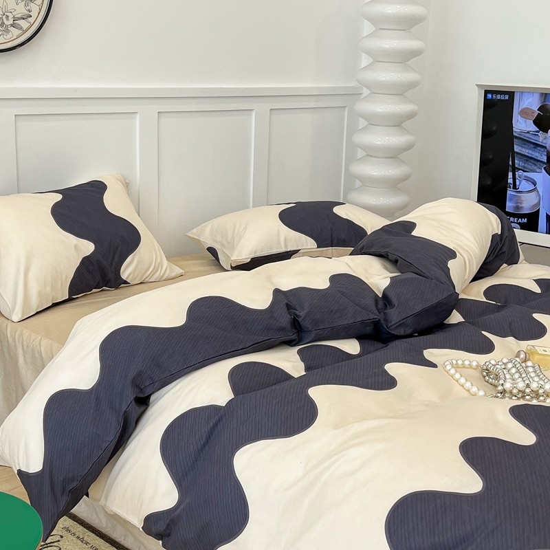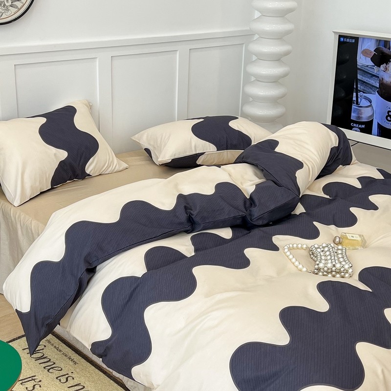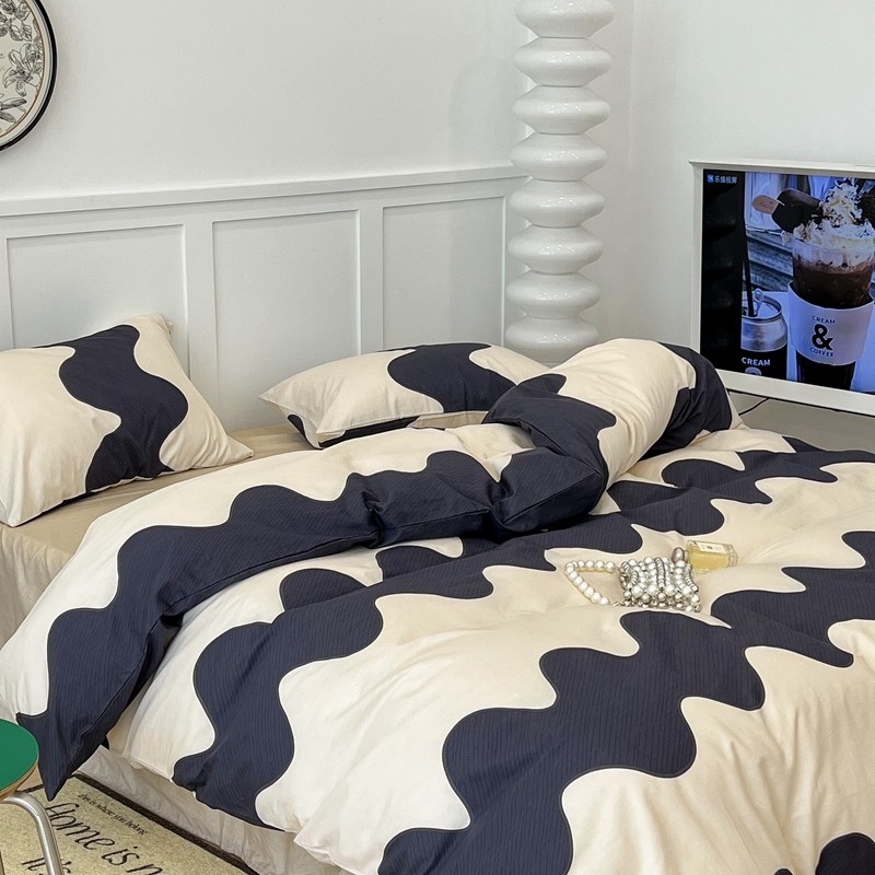 商品名称:昔可 2022新款全棉简约波纹系列四件套 黑波纹