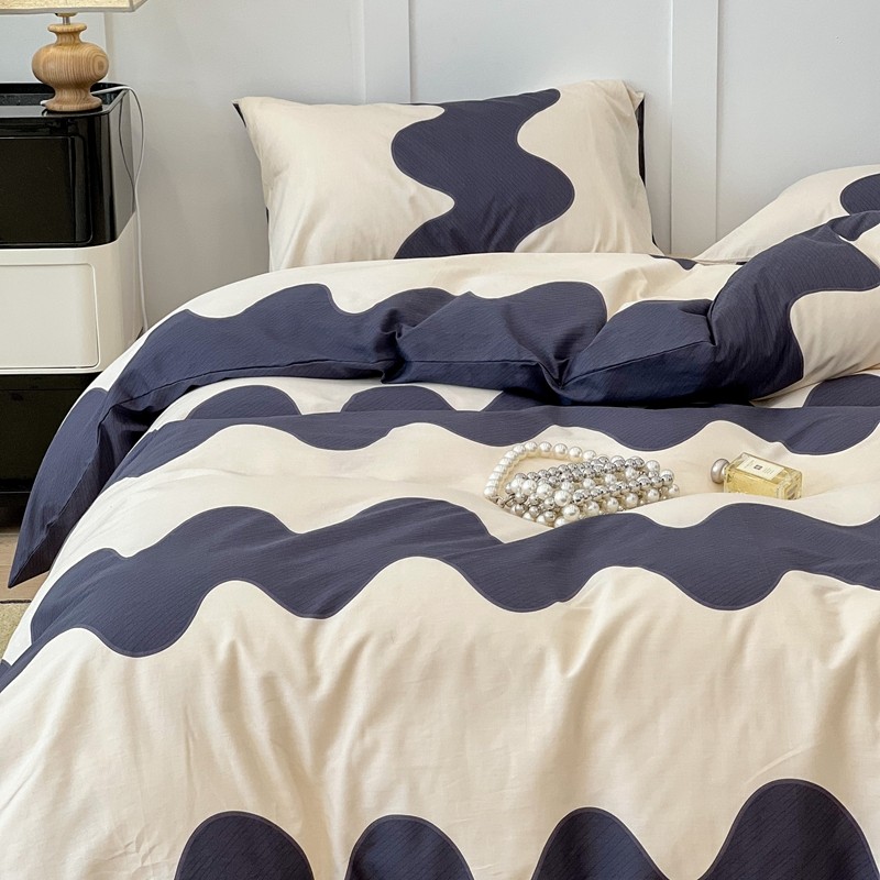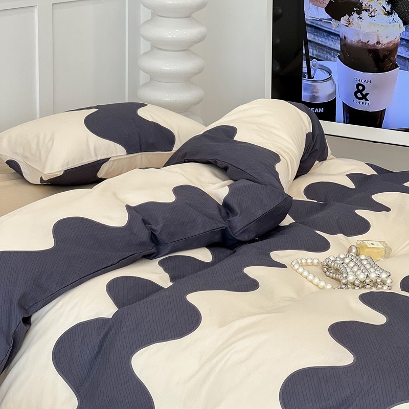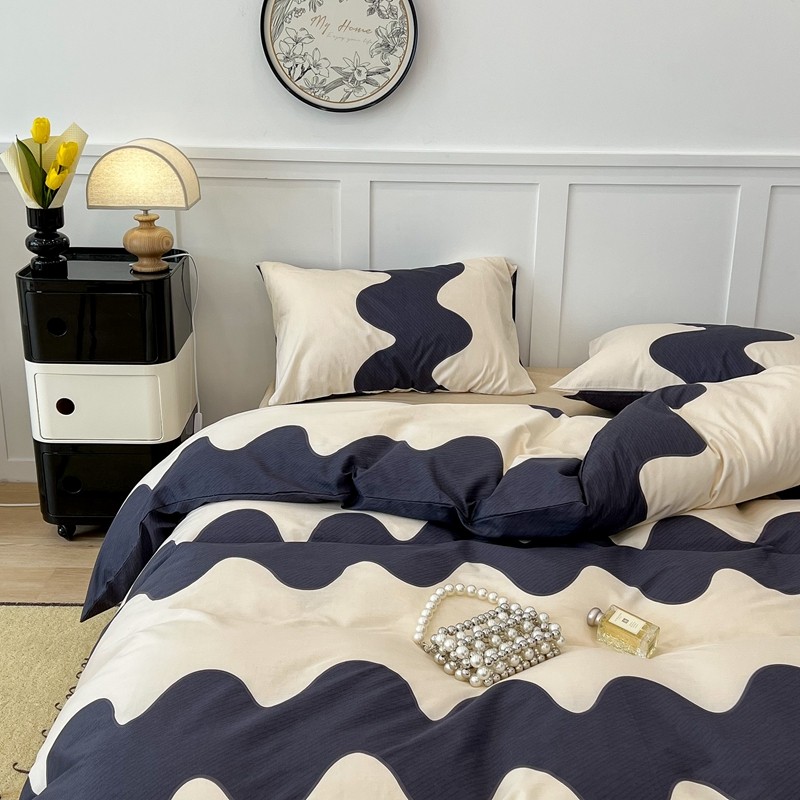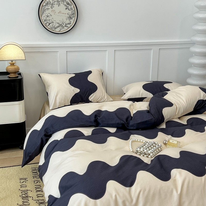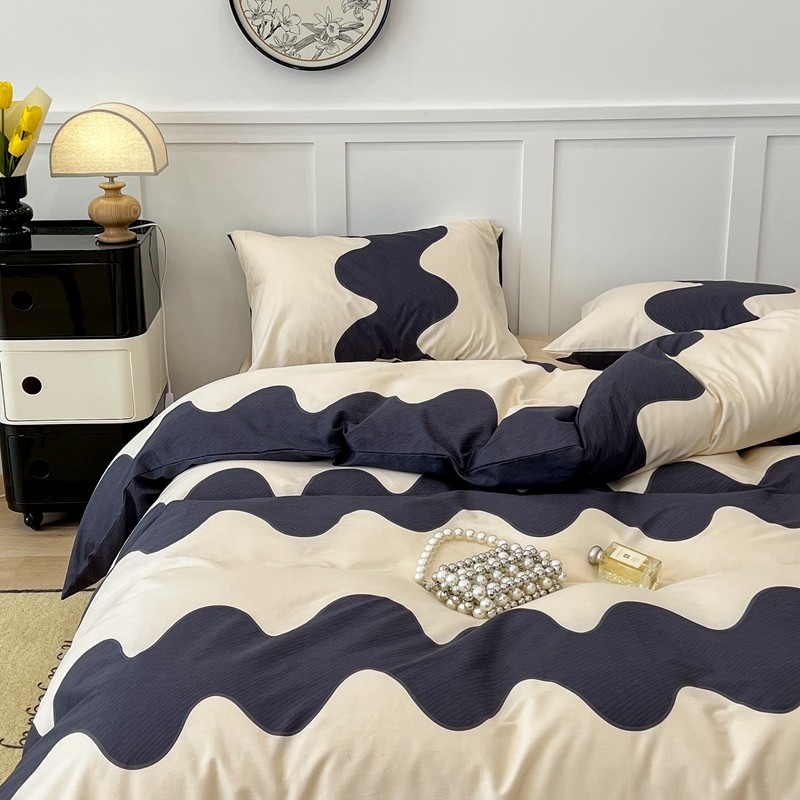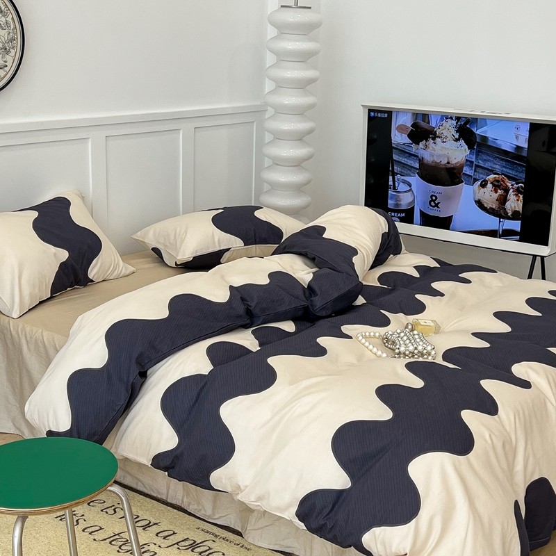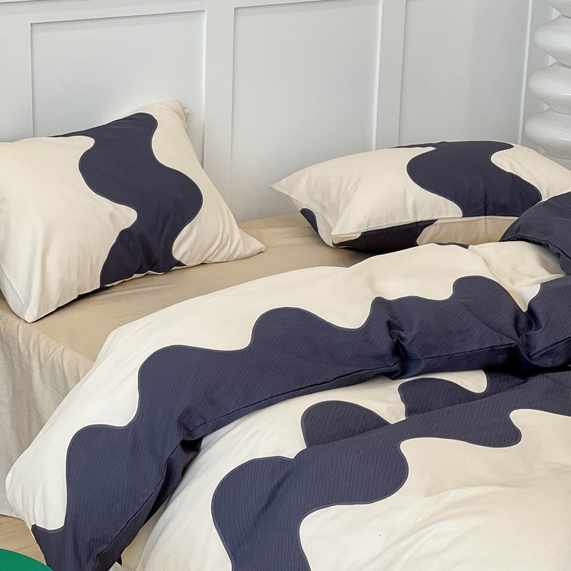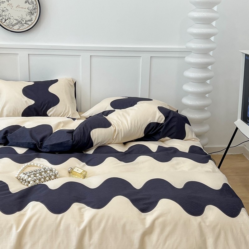 商品名称:昔可 2022新款全棉简约波纹系列四件套 黑波纹
