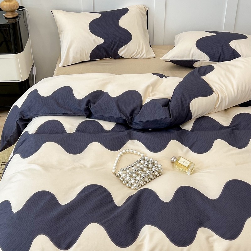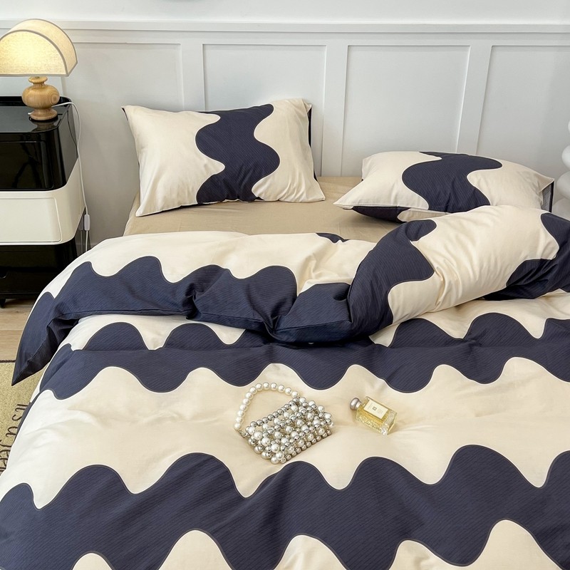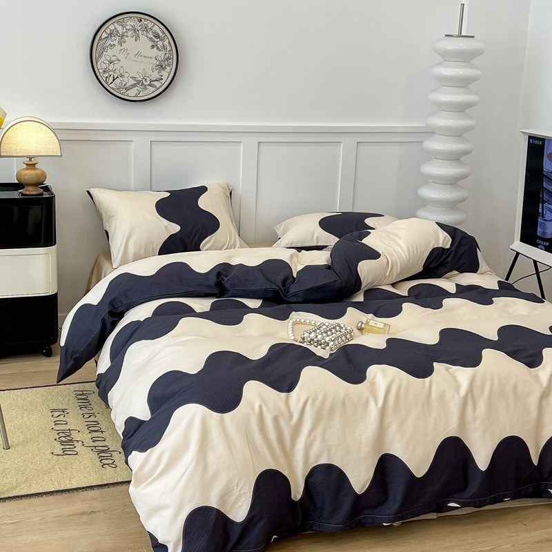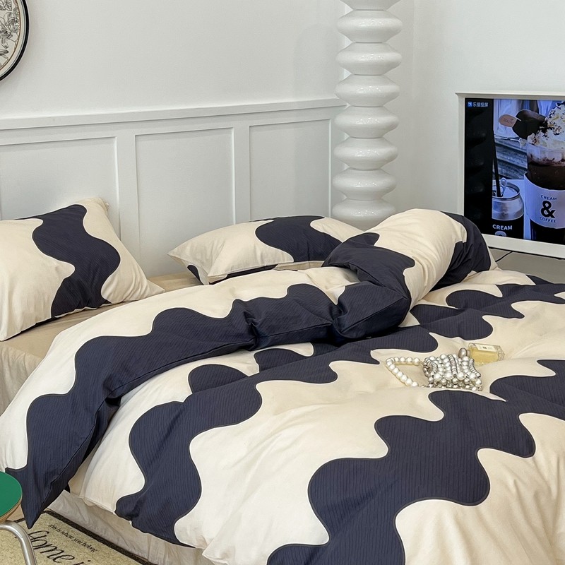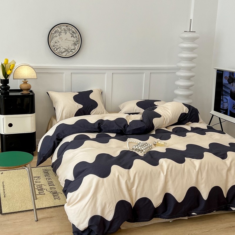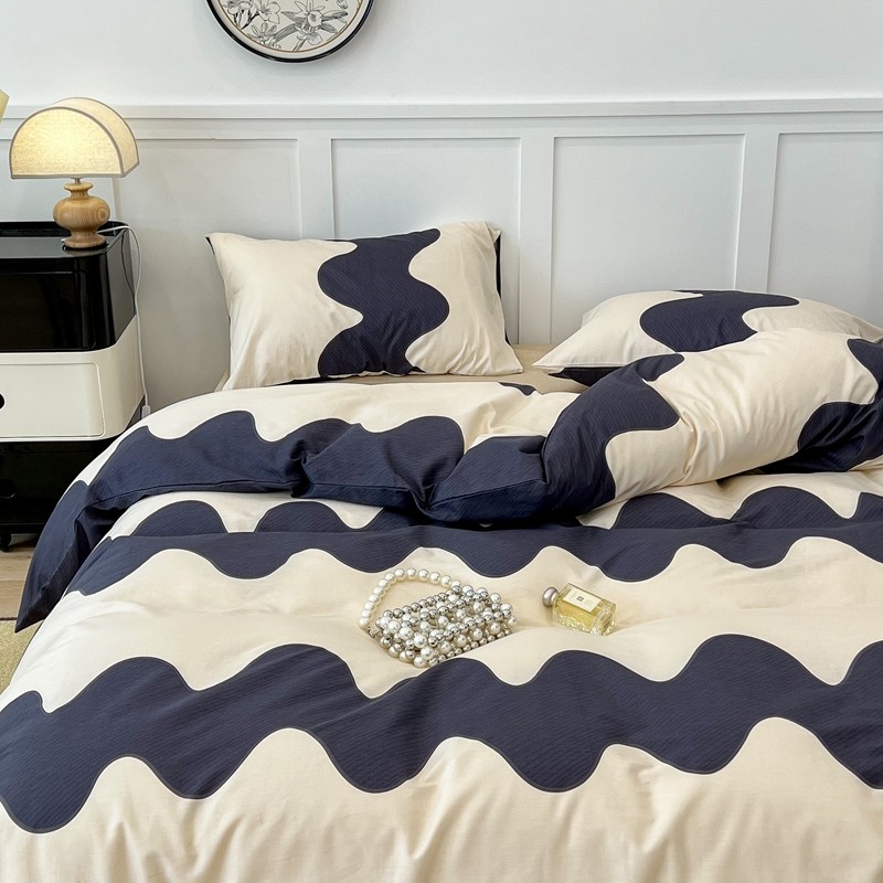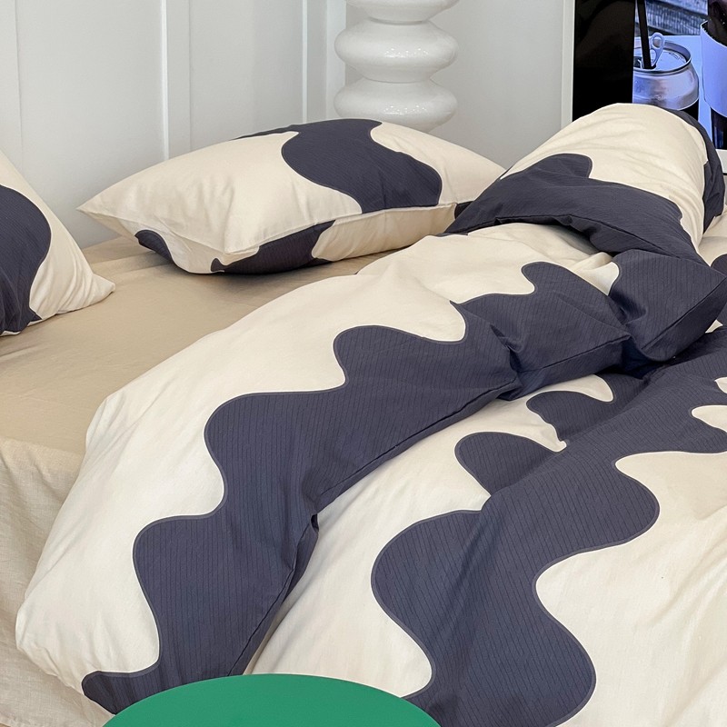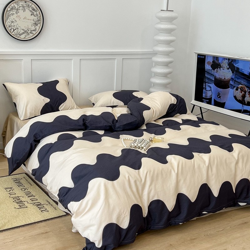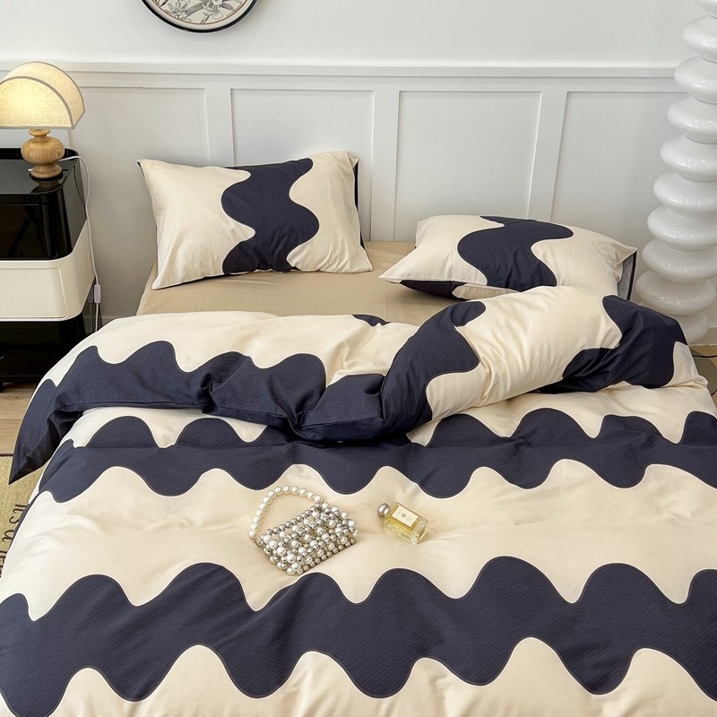 商品名称:昔可 2022新款全棉简约波纹系列四件套 黑波纹