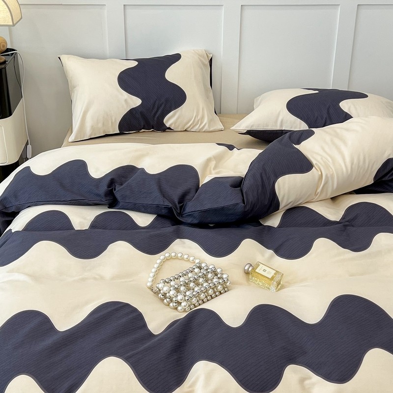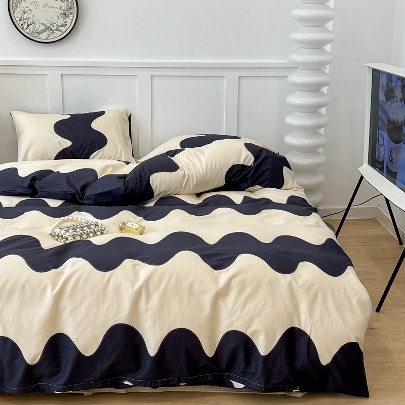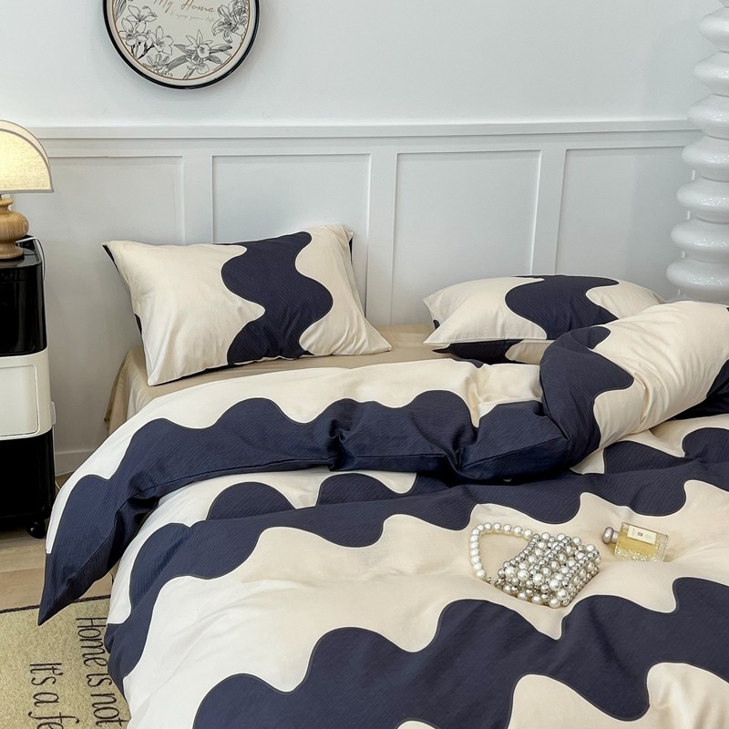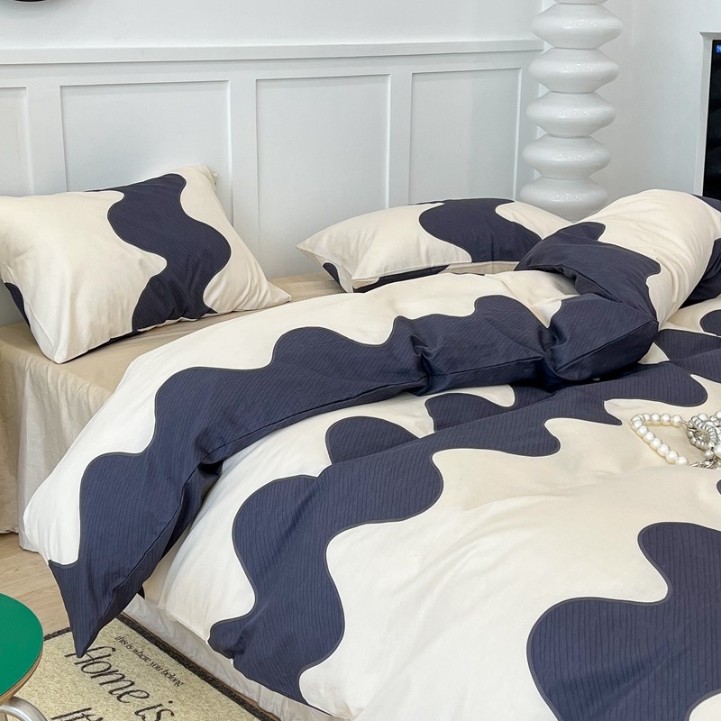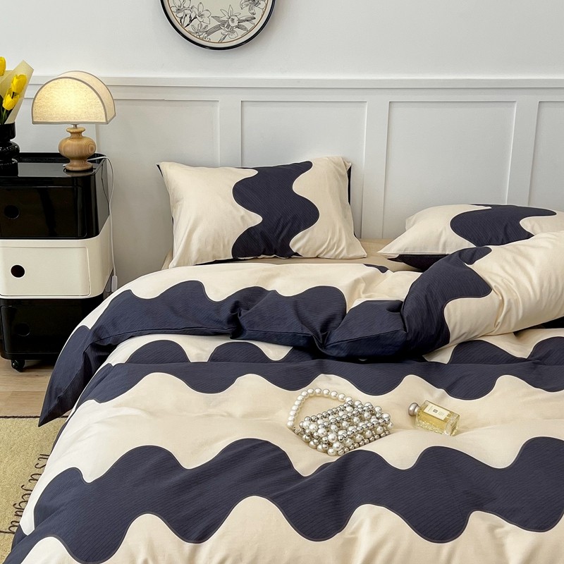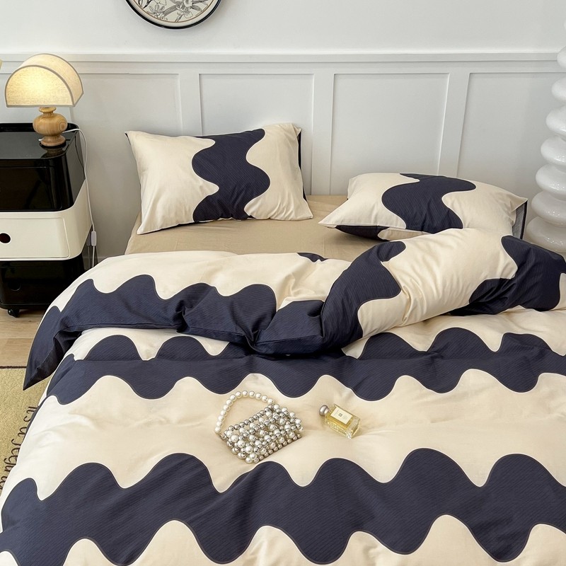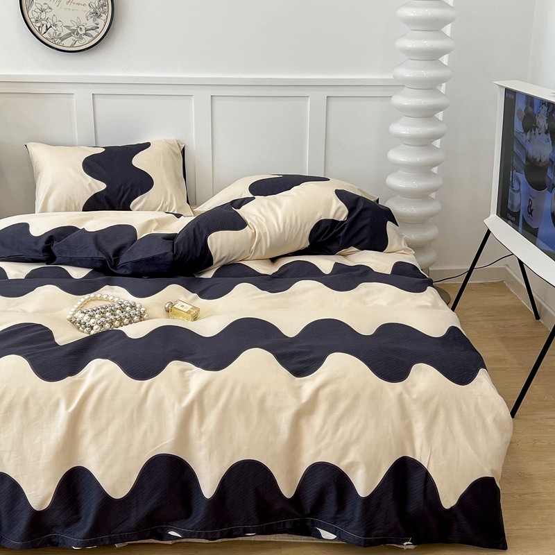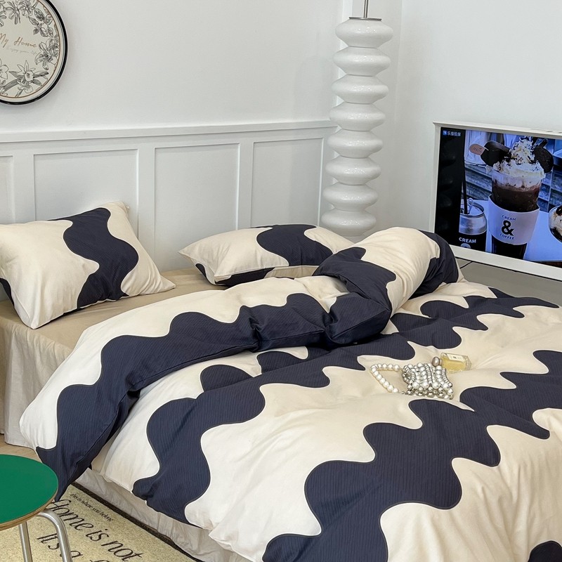 商品名称:昔可 2022新款全棉简约波纹系列四件套 黑波纹
