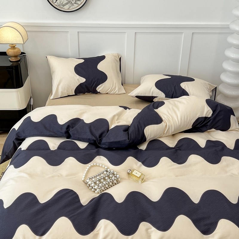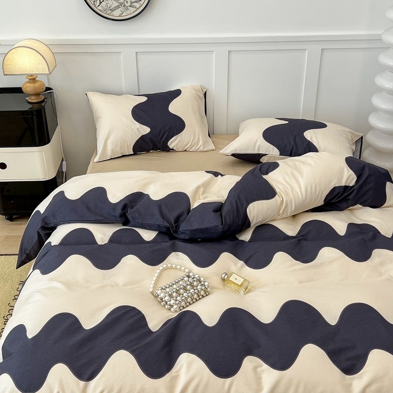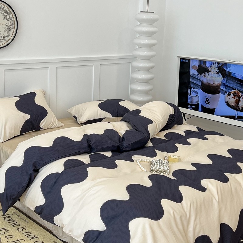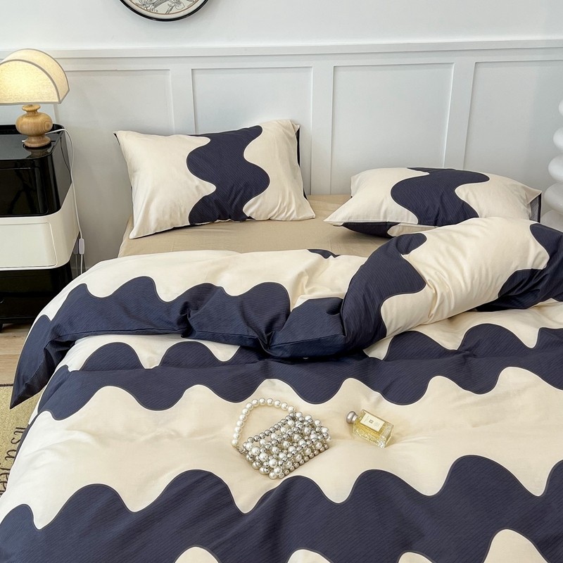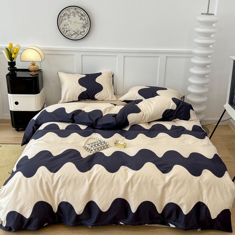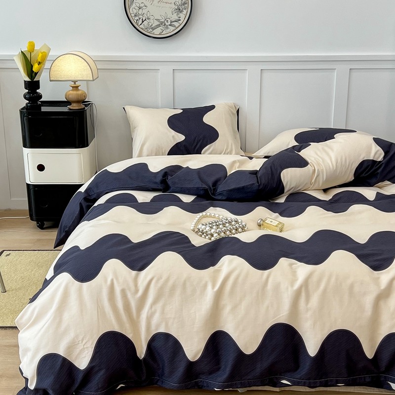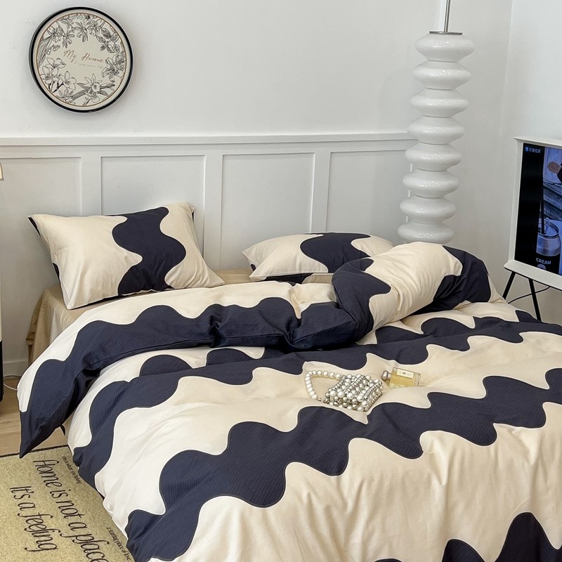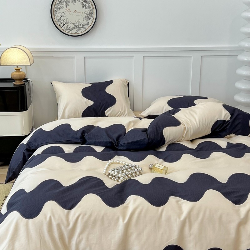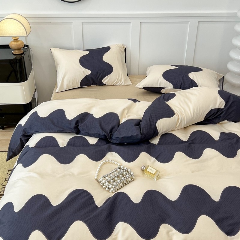 商品名称:昔可 2022新款全棉简约波纹系列四件套 黑波纹