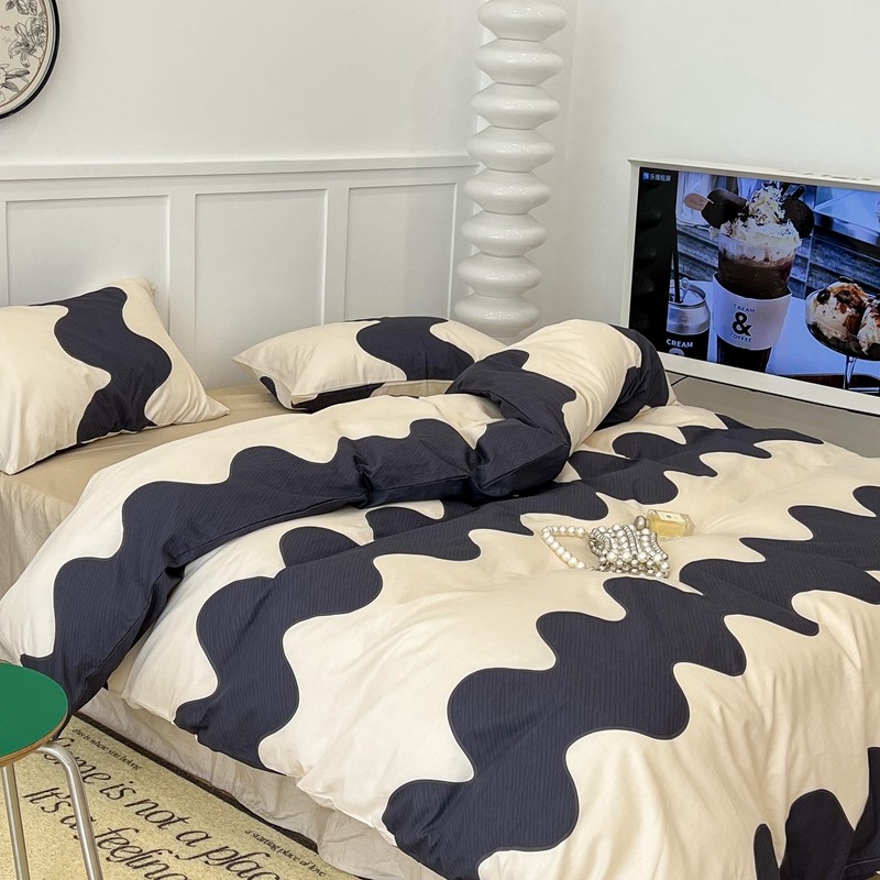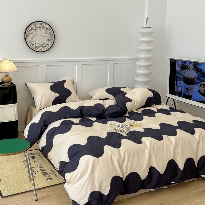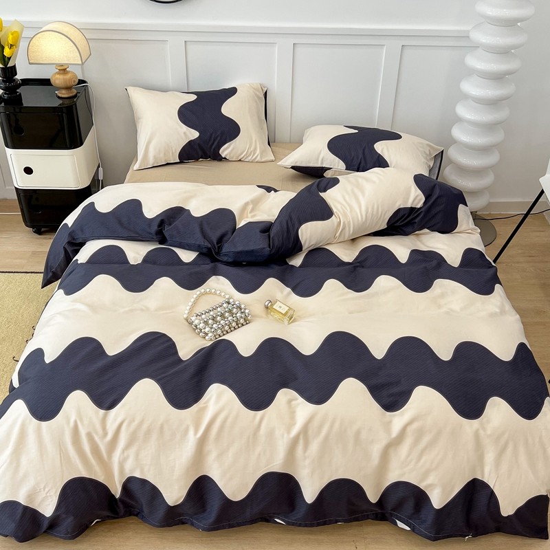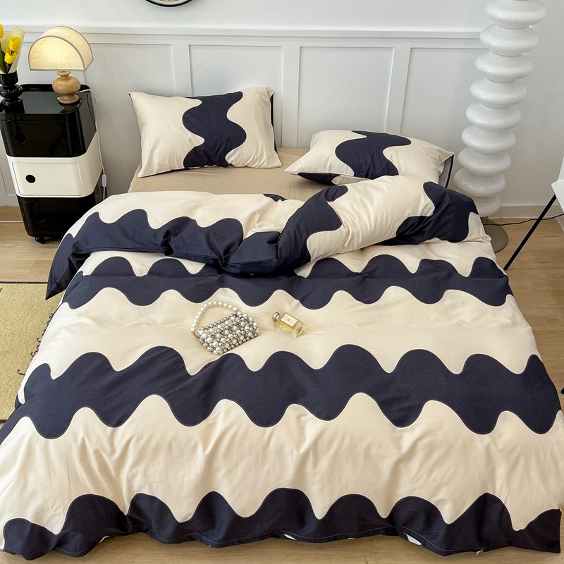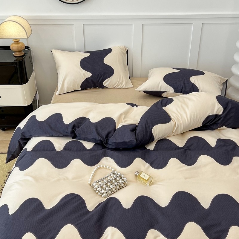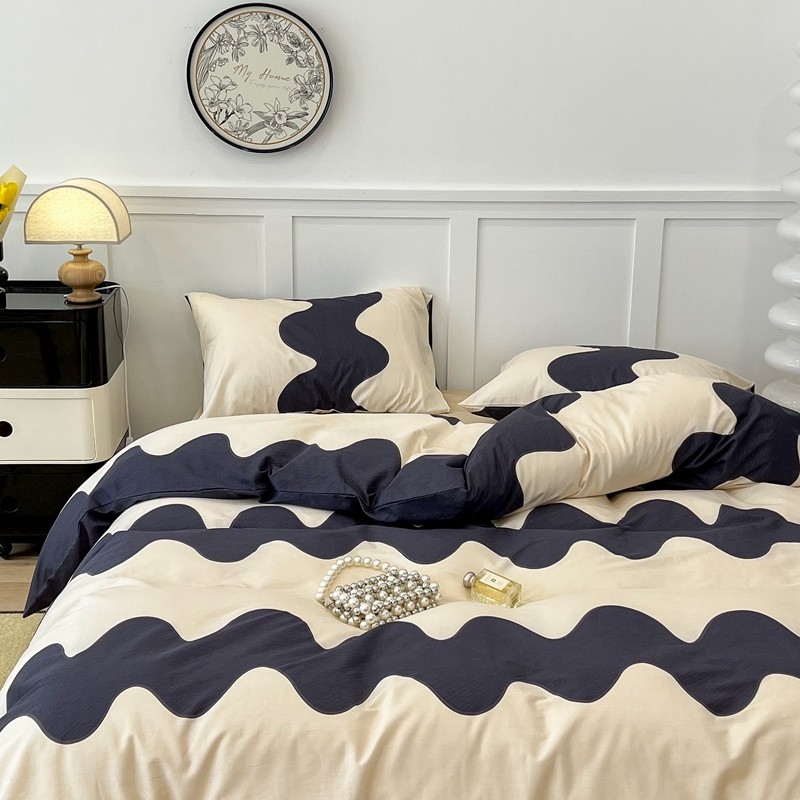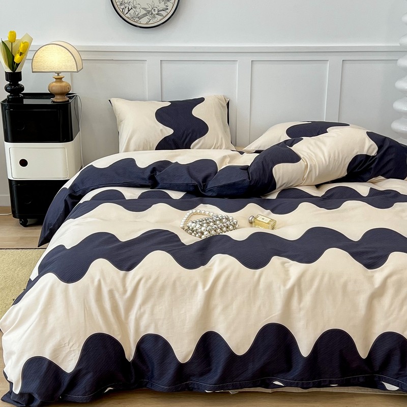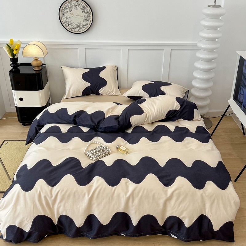 商品名称:昔可 2022新款全棉简约波纹系列四件套 黑波纹