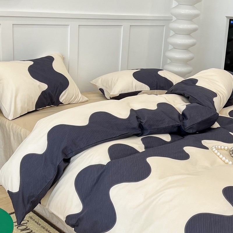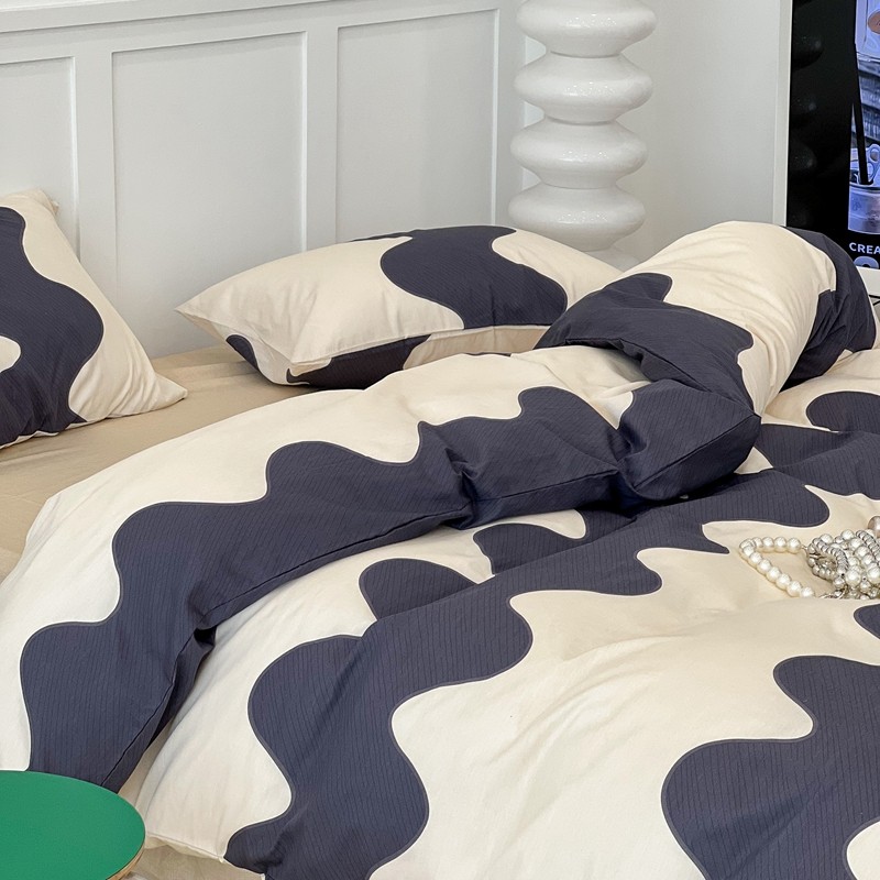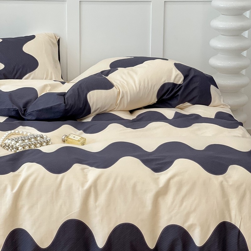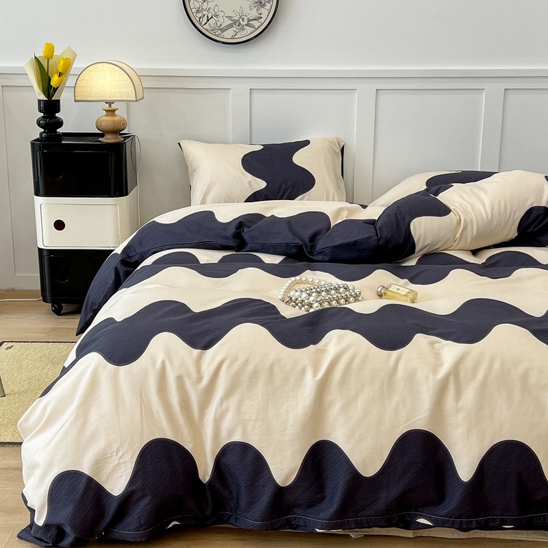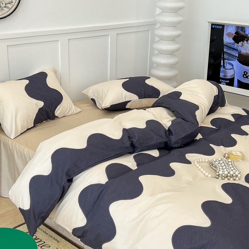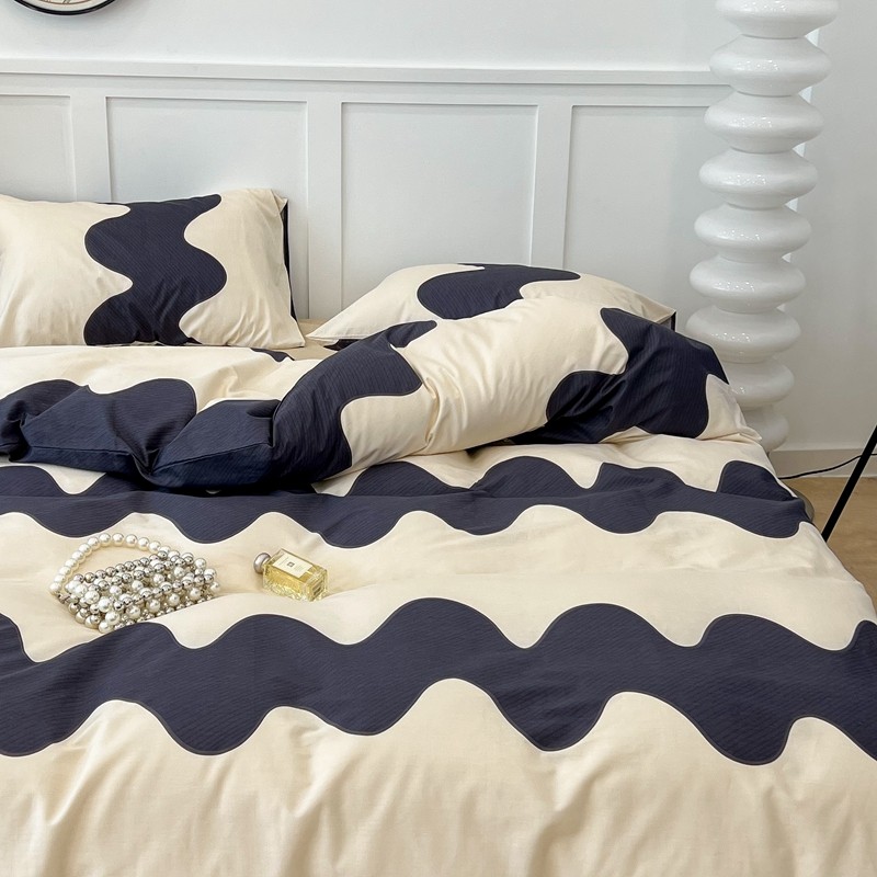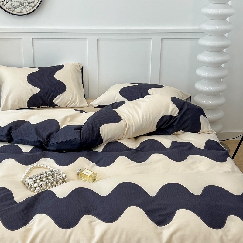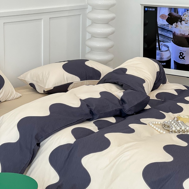 昔可 2022新款全棉简约波纹系列四件套 黑波纹