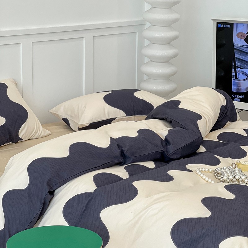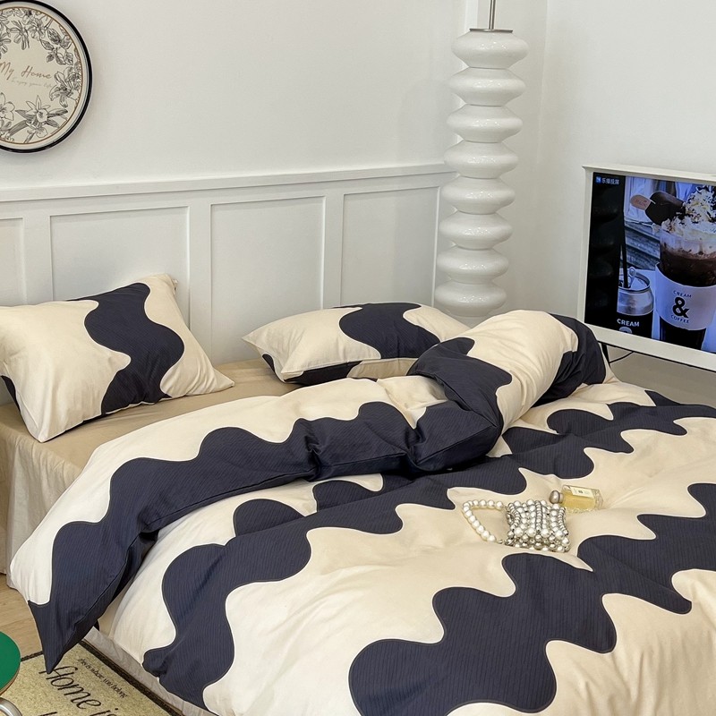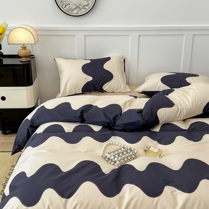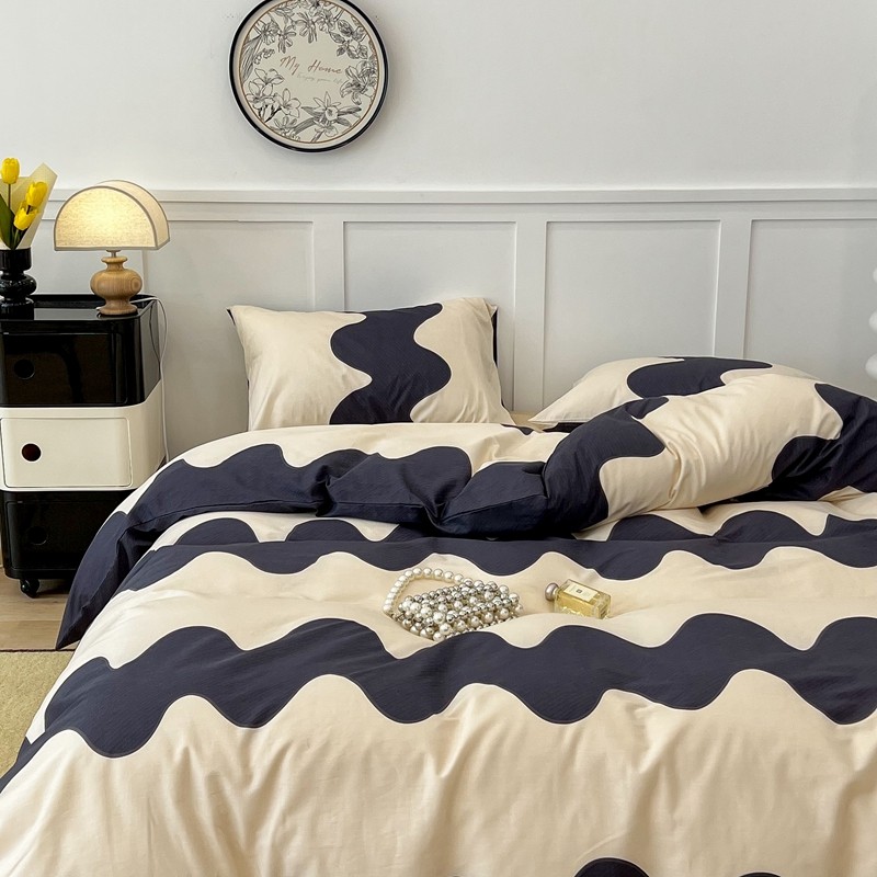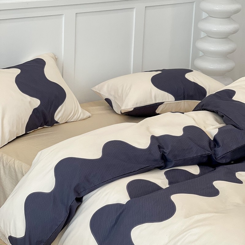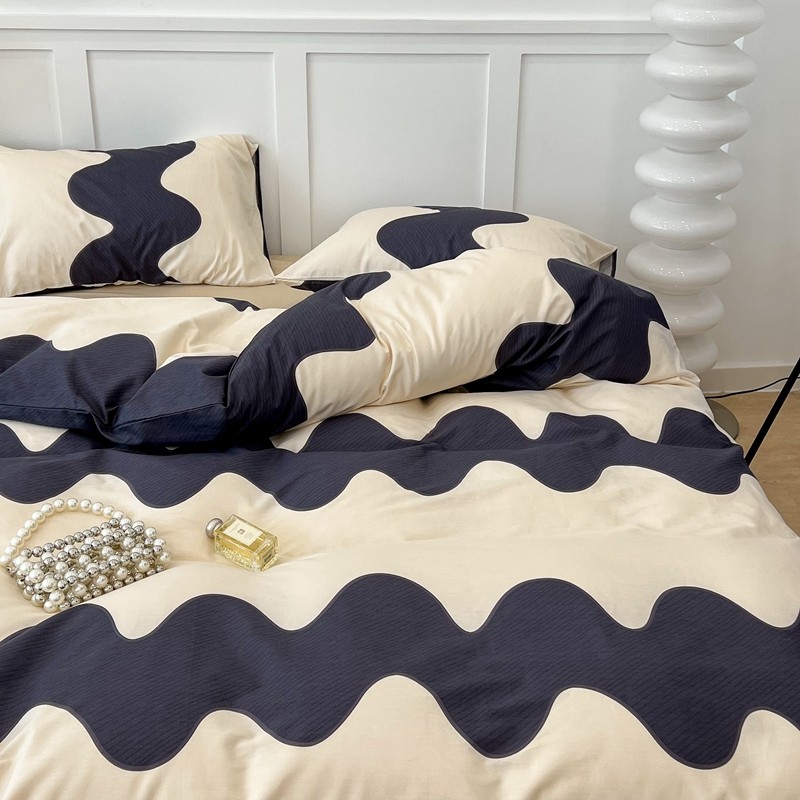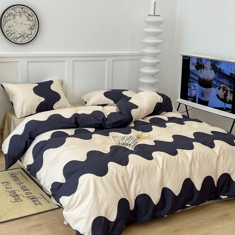 昔可 2022新款全棉简约波纹系列四件套 黑波纹