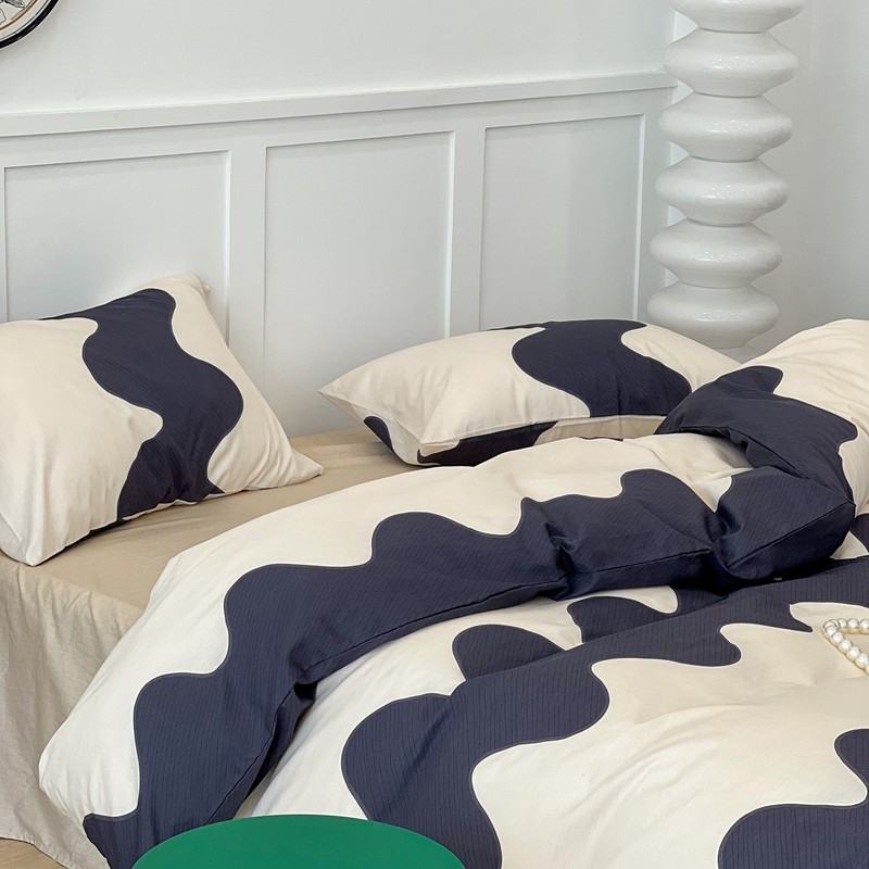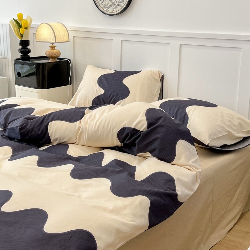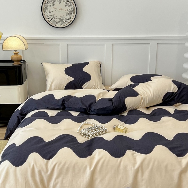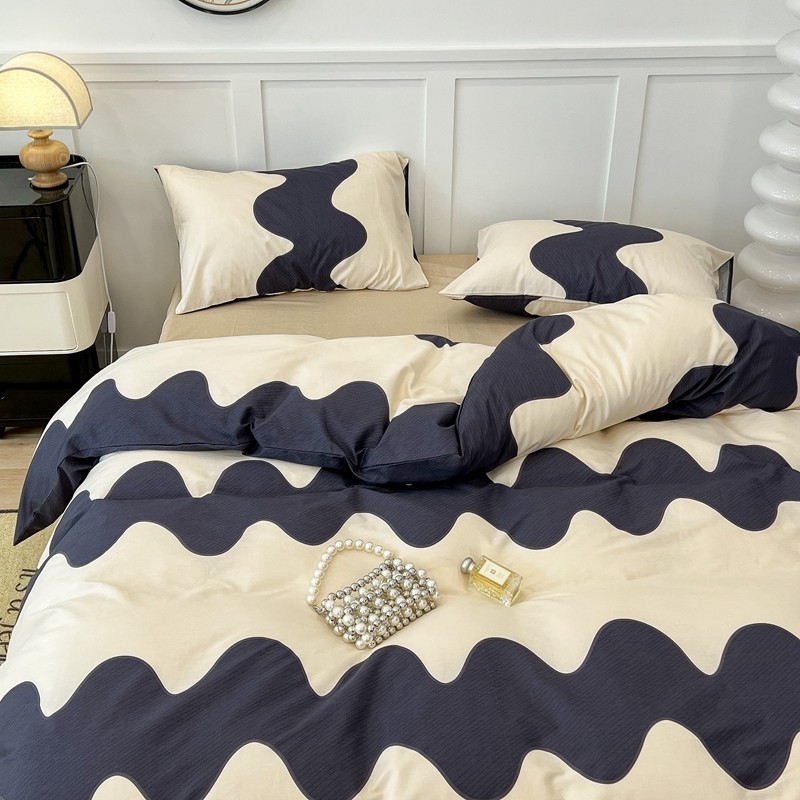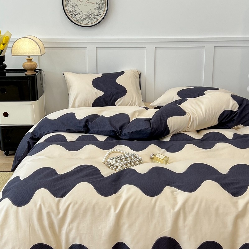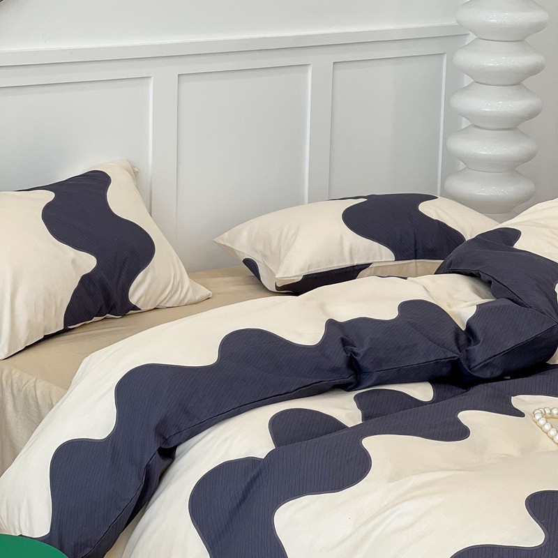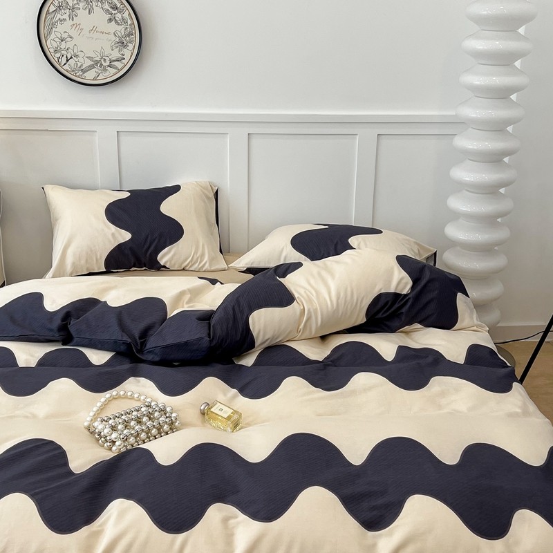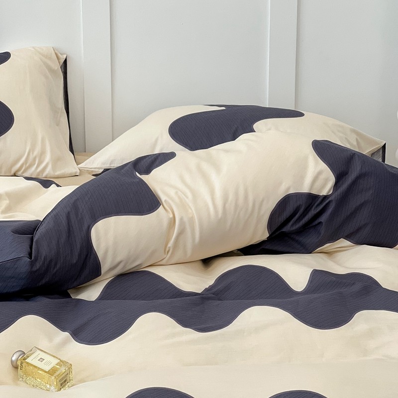 昔可 2022新款全棉简约波纹系列四件套 黑波纹
