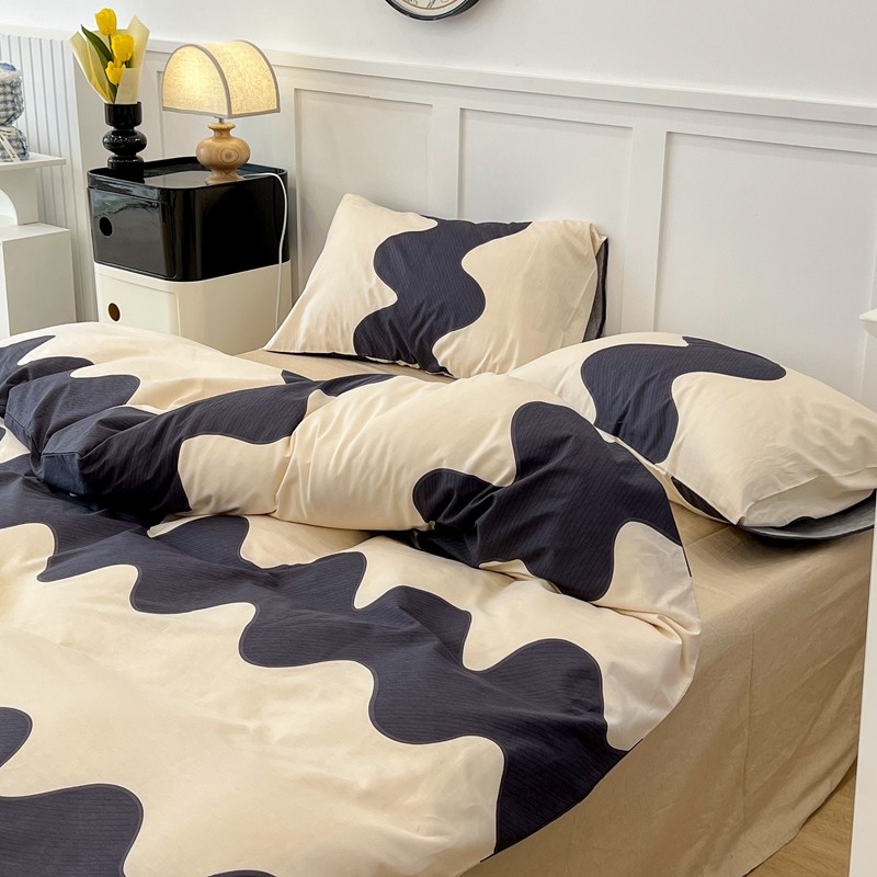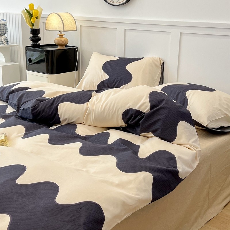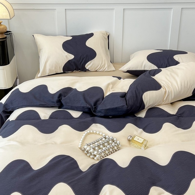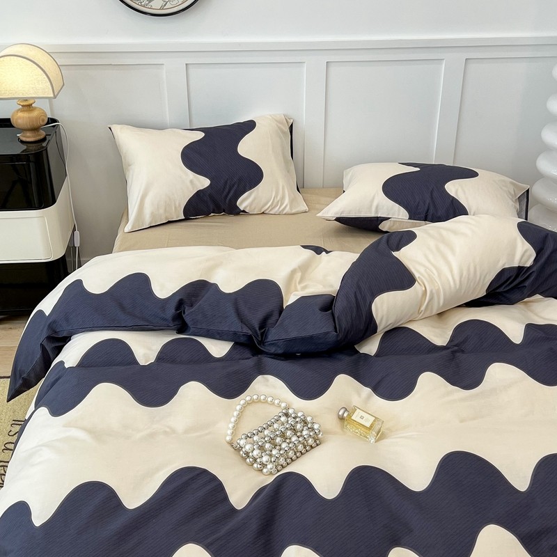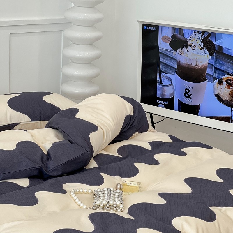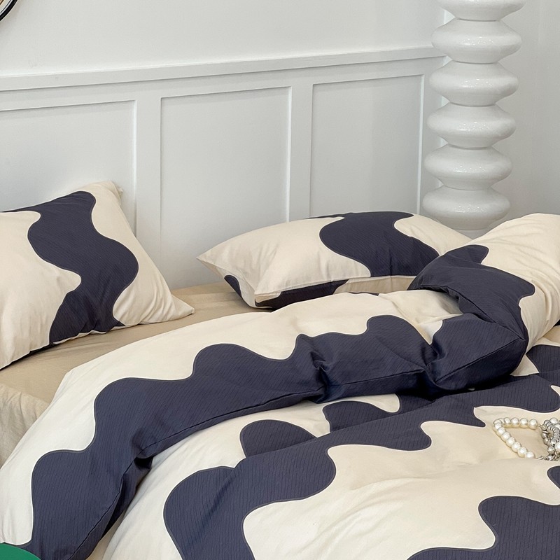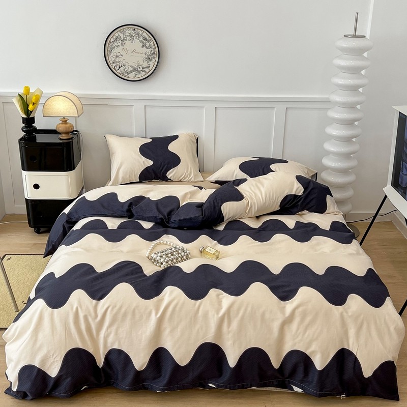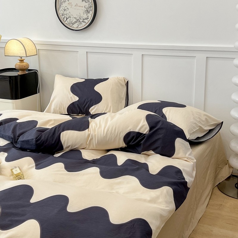 昔可 2022新款全棉简约波纹系列四件套 黑波纹